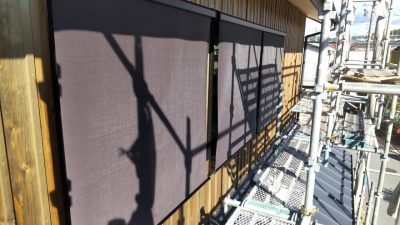 8月25日の写真です💦s浦サッシのs君が、せっかく送ってくれた写真を載せ忘れていました。ごめんなさ~い!k様邸は、敷地に対して南北が45度程ふっています。南東、南西の方角から冬用の日射を取得する計画になり、そうなると夏は日射量が多くなり過ぎてしまい遮蔽する必要がありますので、アウターシェードを取り付けました。s君は、庇もあるし要らないよ~と思っていたそうですが、夕方取付に行って、「やっぱ、いるわ~」と言って写真を送ってくれました👍