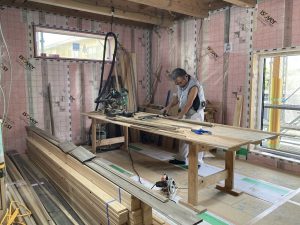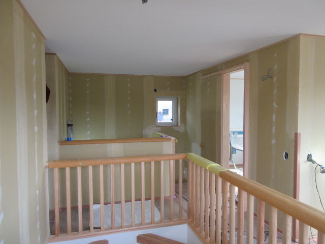 その他、階段の手すりや、棚板なども設置されました。k様のイメージ通りになったでしょうか?大工さんによる造作工事が終わると工事自体も完成間近です。今月28、29日の完成見学会に向けて、仕上げ工事がこれから進んでいきます。