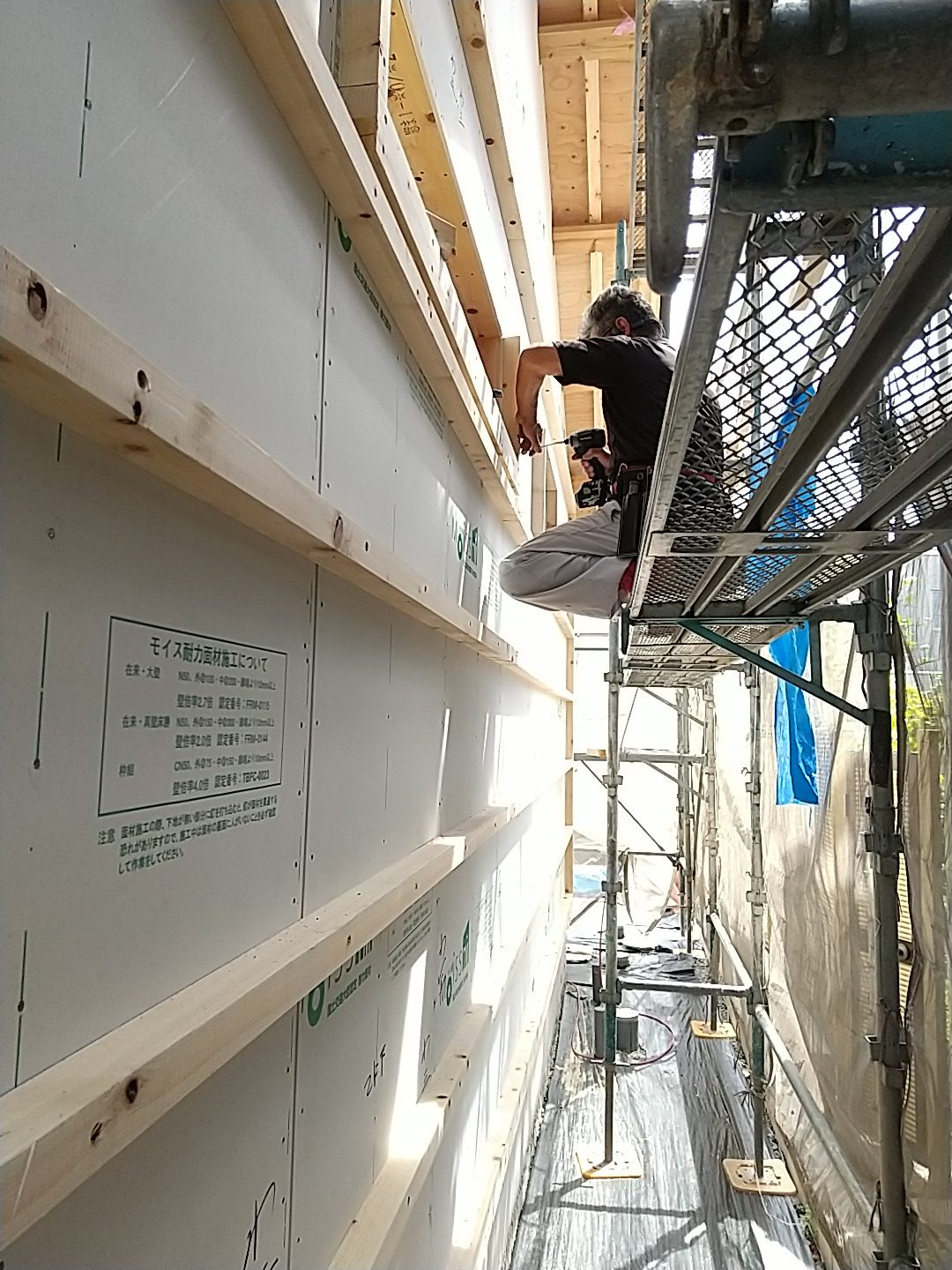 梅雨に入りお天気とにらめっこしながら、外部はトラブルがありましたが、通気胴縁の取付まで進んでいます。s戸棟梁、本当にごめんなさい💦ありがとうございます。