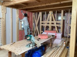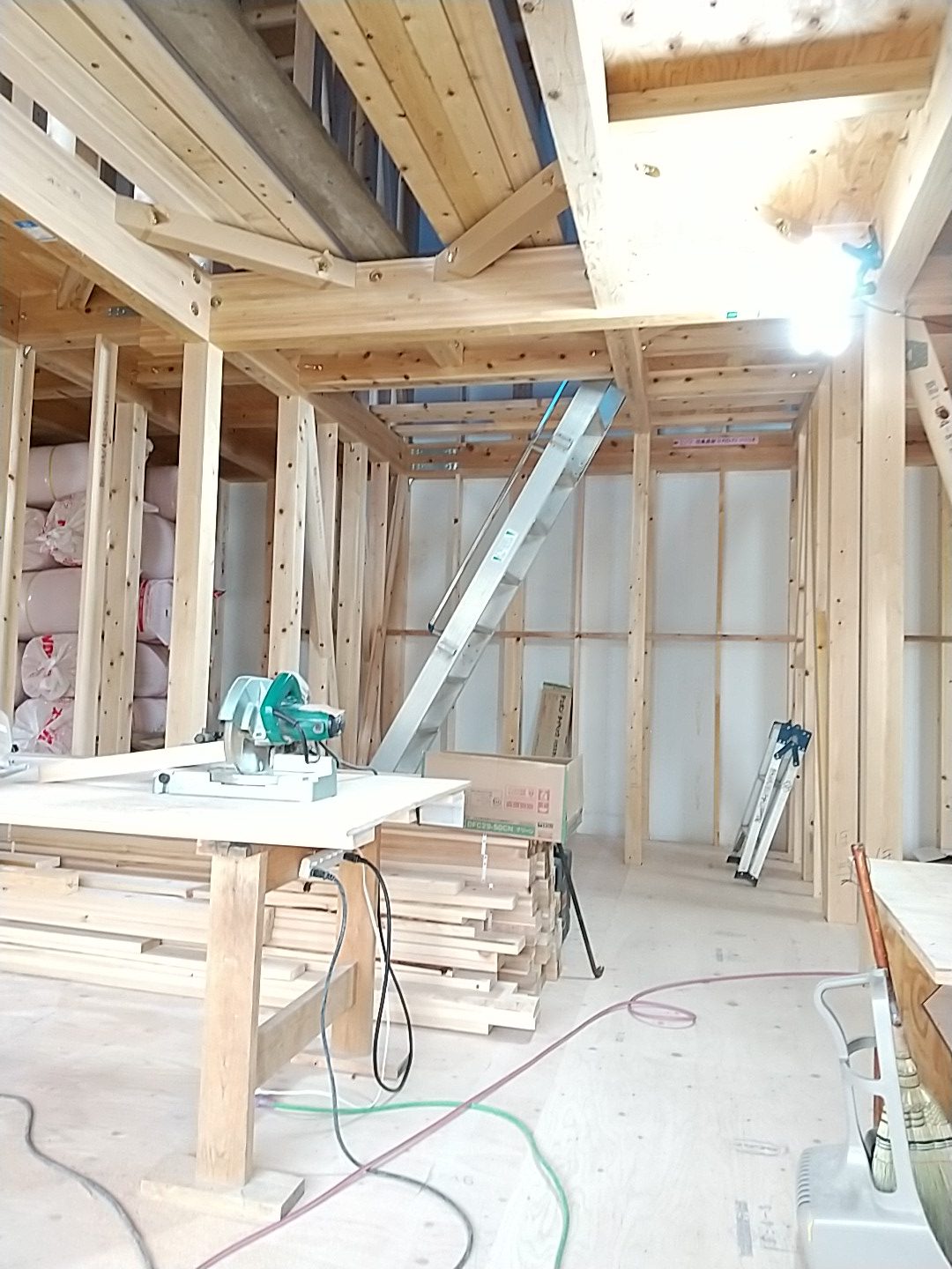 小屋裏には断熱材も搬入されて、後々の作業がしやすくしています。