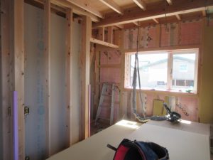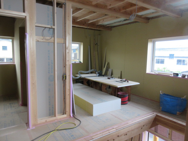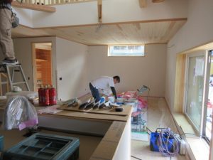 s戸棟梁が現場を引き上げました。s戸棟梁、ありがとうございました。道具や材料が片付けられ、空間の大きさが解り易くなりました。月曜日は左官屋さんが玄関、ポーチの洗い出しの下地を施工しにやってきます。13日はキッチンが取り付けられる予定です。仕上げ工事は、目まぐるしい変化があるので、施主様は一気に仕上がった感覚になられる方が多いようです。