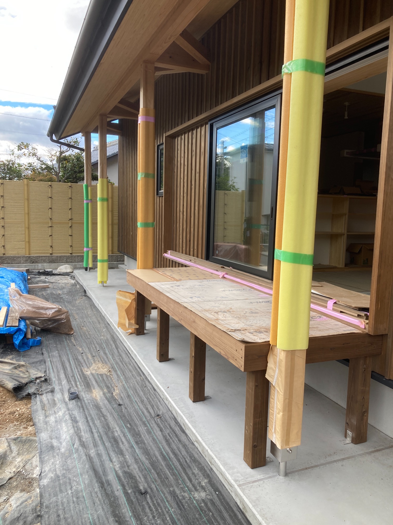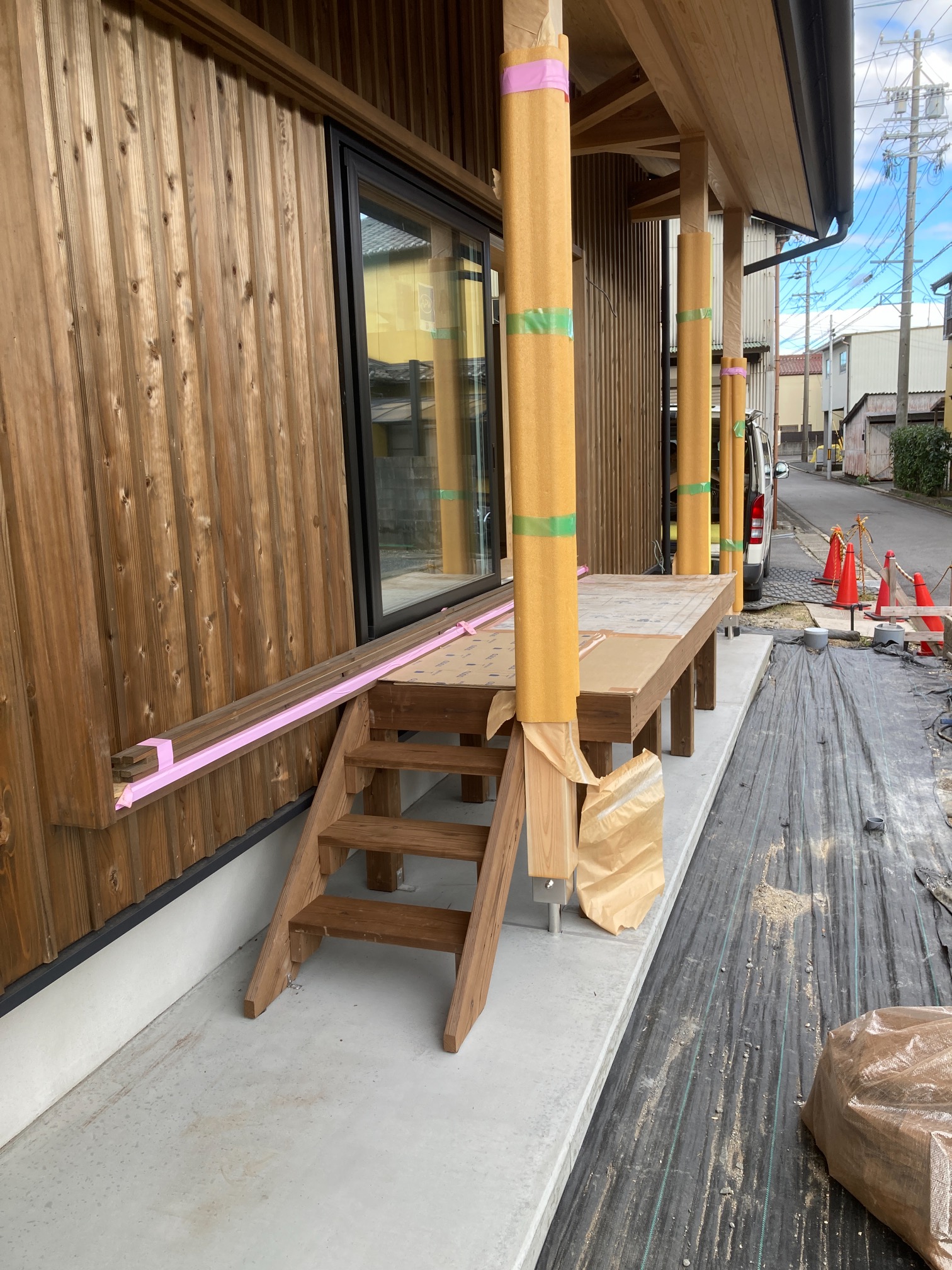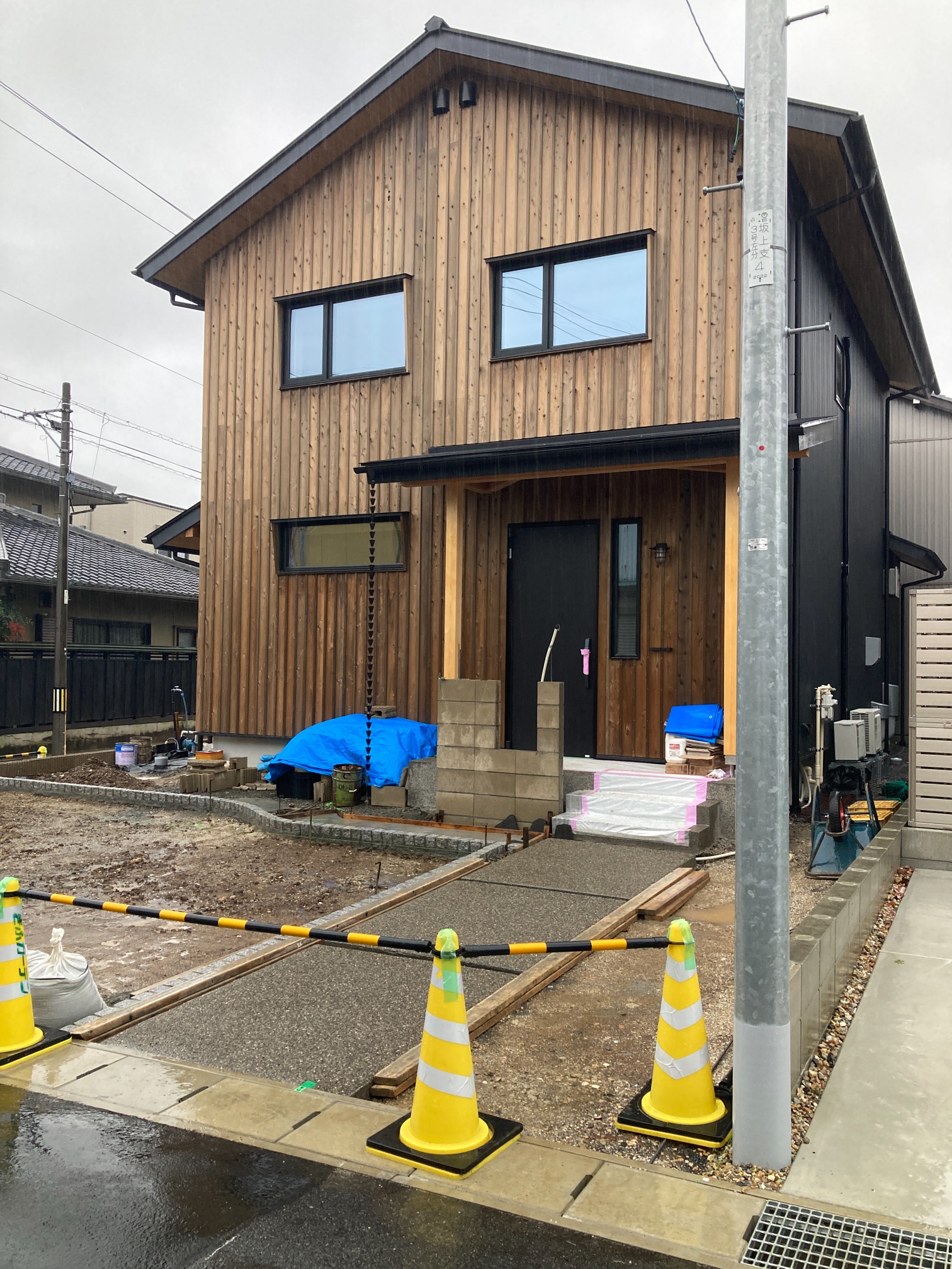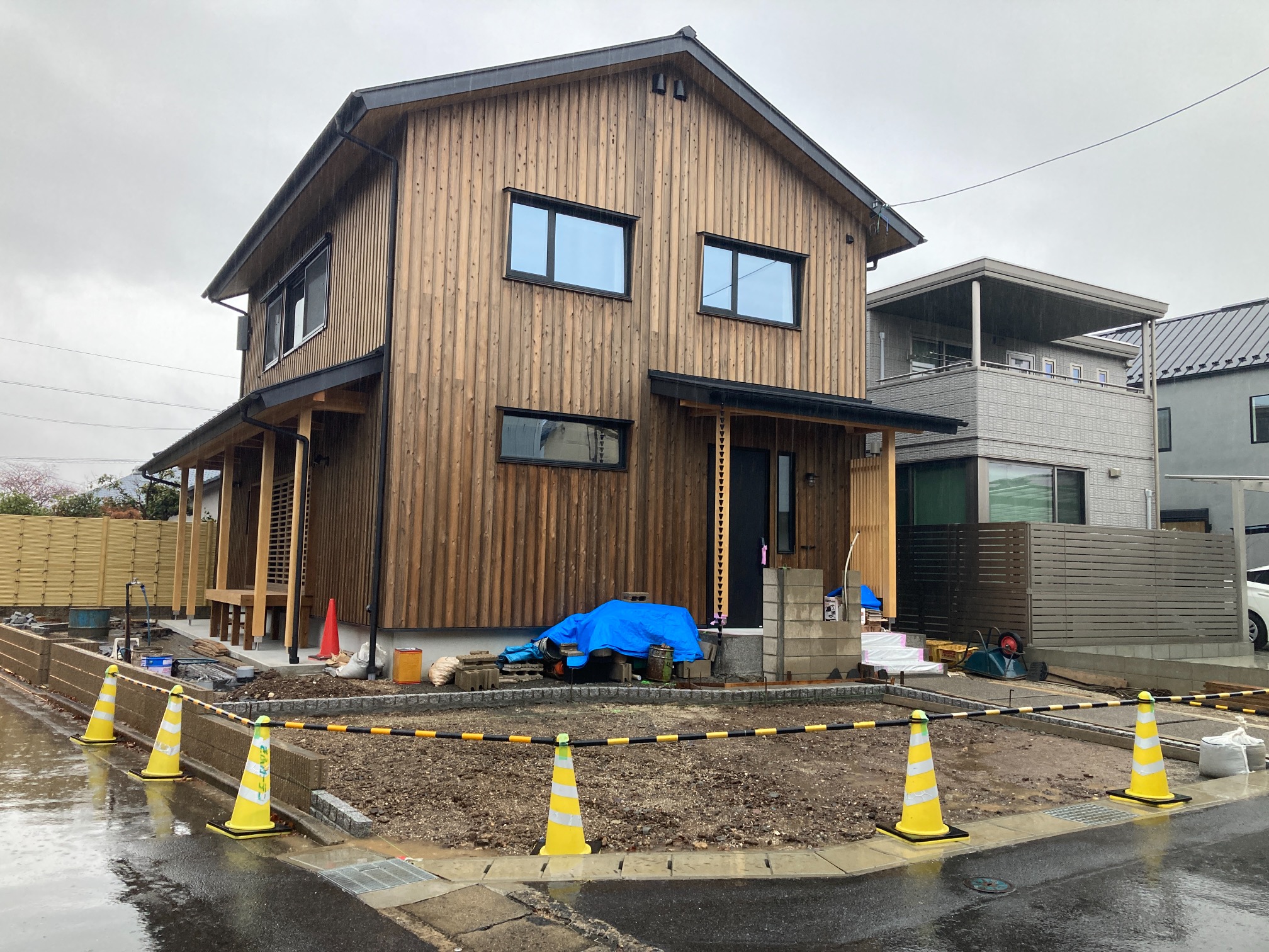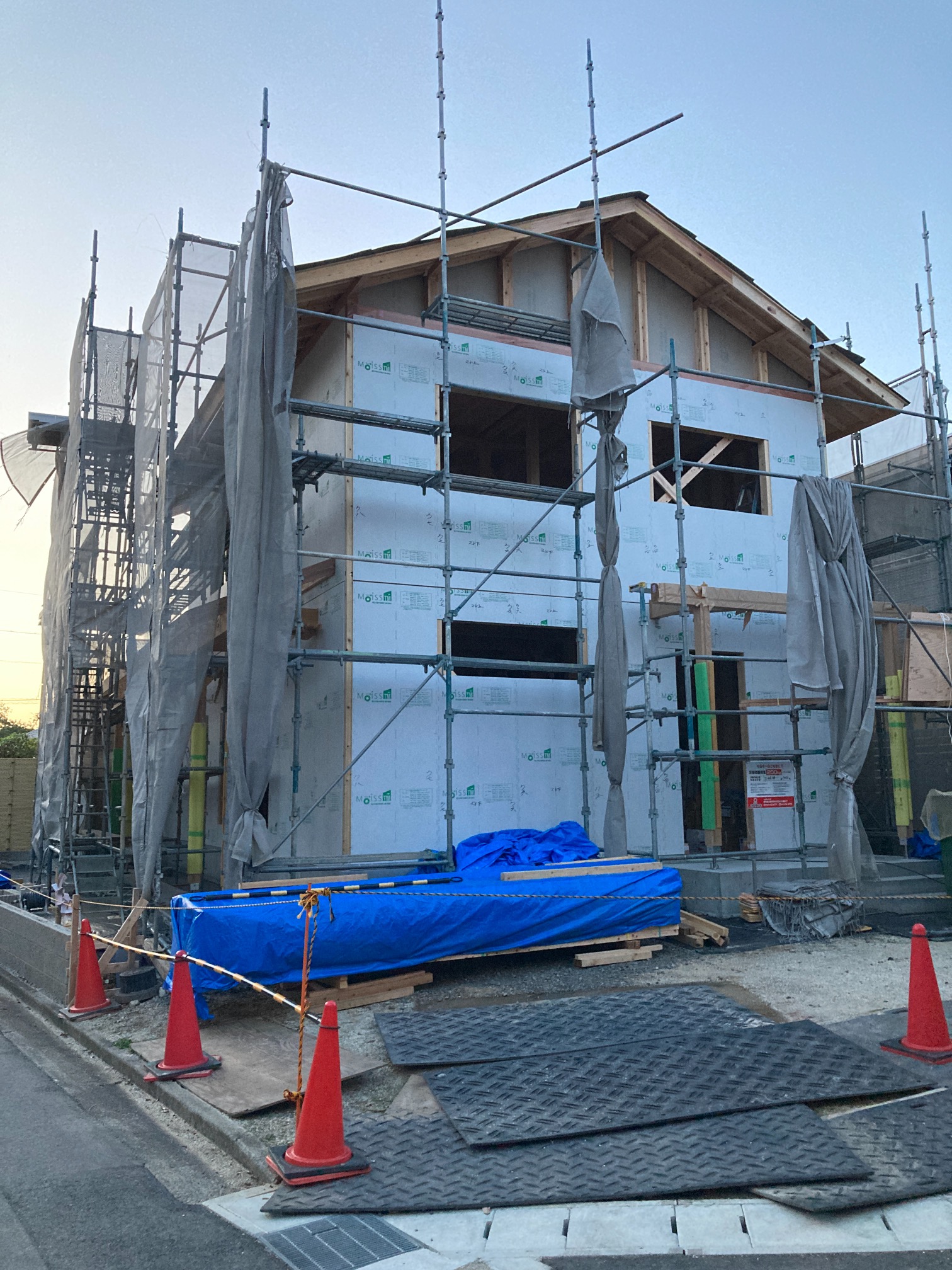今日は外構工事の打ち合わせ第二弾。会議で台風養生をすると話していたので、k様邸の外観が見れるかも~とこちらも楽しみにやってきました。お~!すごくいい感じ👍k様ご夫婦も思わず写真を撮られていました。s戸棟梁、ひとまずお疲れ様でした!