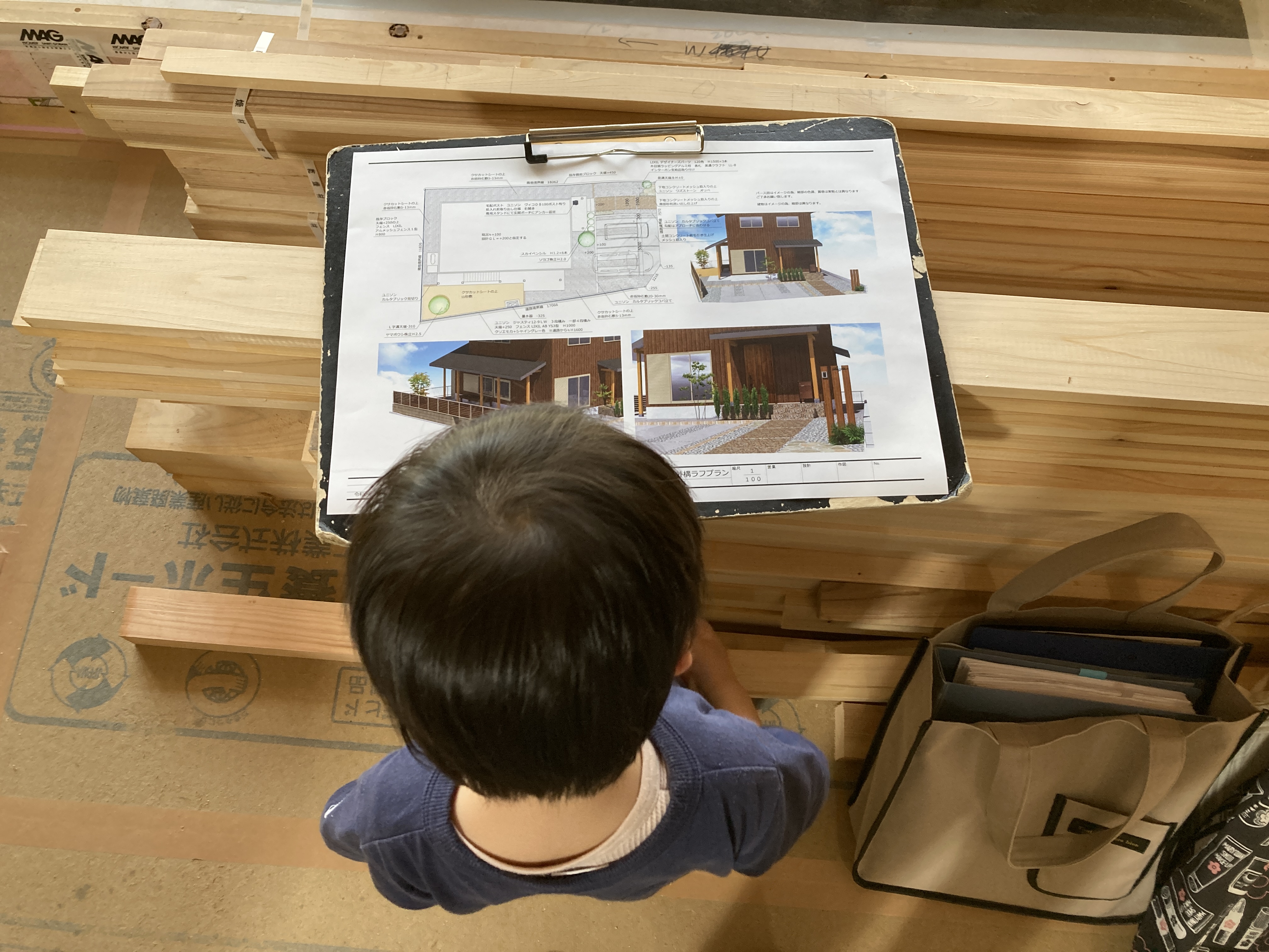 先日の土曜日には、k様にも現地にお越しいただき、照明やコンセント、スイッチの位置の最終確認を行いました。a君は、引き戸と玄関ドアの開け閉めがマイブーム。今回サッシをトリプルにされたので、引き戸は重たくて動かせず😢玄関ドアを何度も開け閉めして遊びました。最後に、スマホでお気に入りの玄関ドアと自撮り📸です。