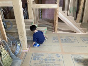 s戸棟梁の丁寧な仕事ぶりもa君と発見!巾木の端まで細かい細工をされていました。ミノワの大工さん達は、皆さん細かな気遣いを感じる仕事をされるので、ミノワの家は何とも言えない温かい雰囲気なのかも知れないですね~