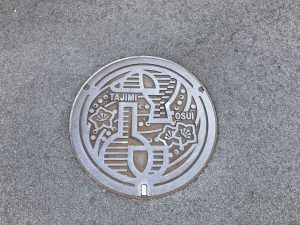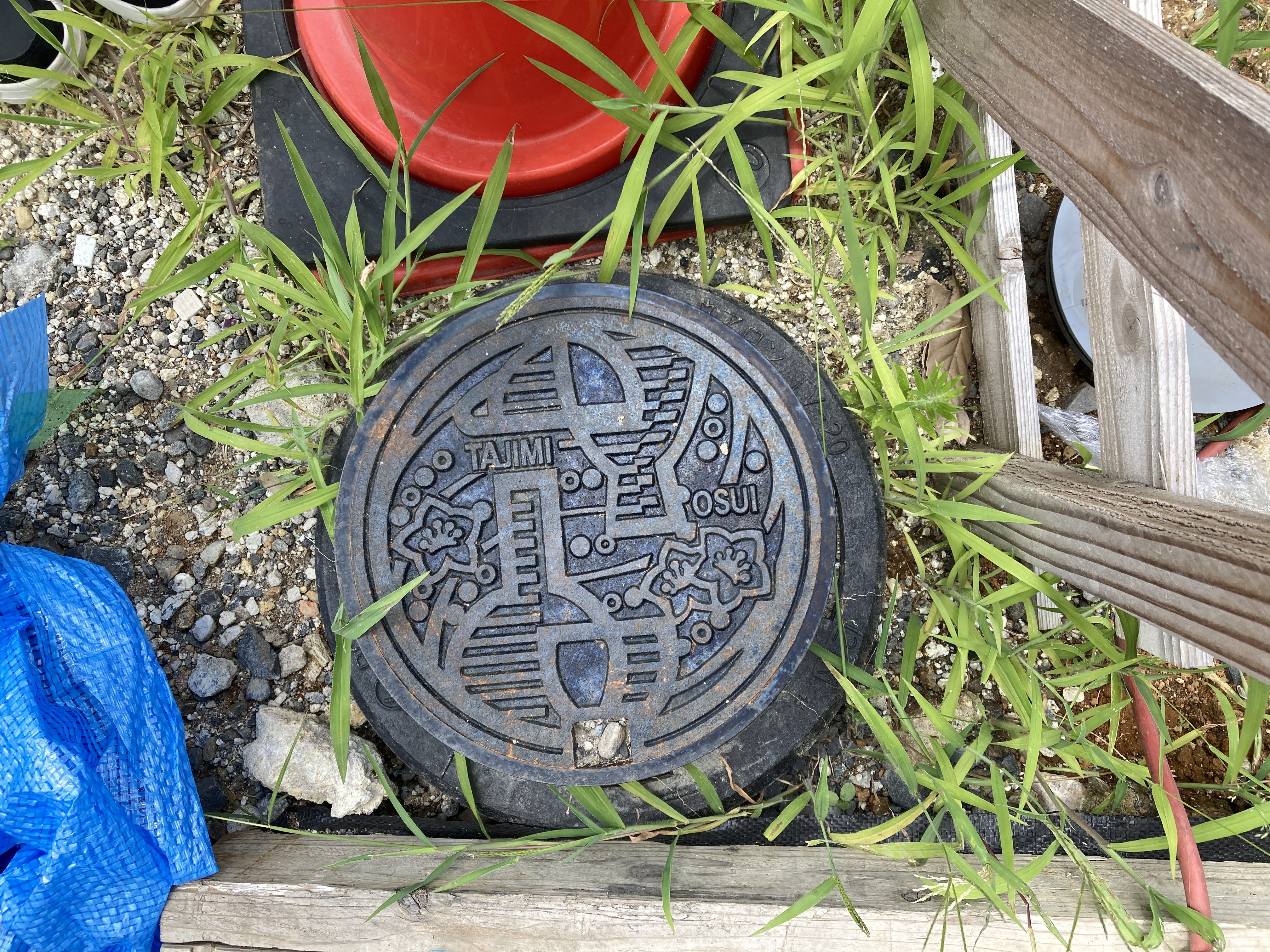 現場に下水の最終桝も設置されていました。道路の本管用のマンホールと一緒。とっくりとお猪口の陶器の柄です。最終桝までこんな柄の桝を支給されるのは初めて見ました。かわいい👍
