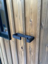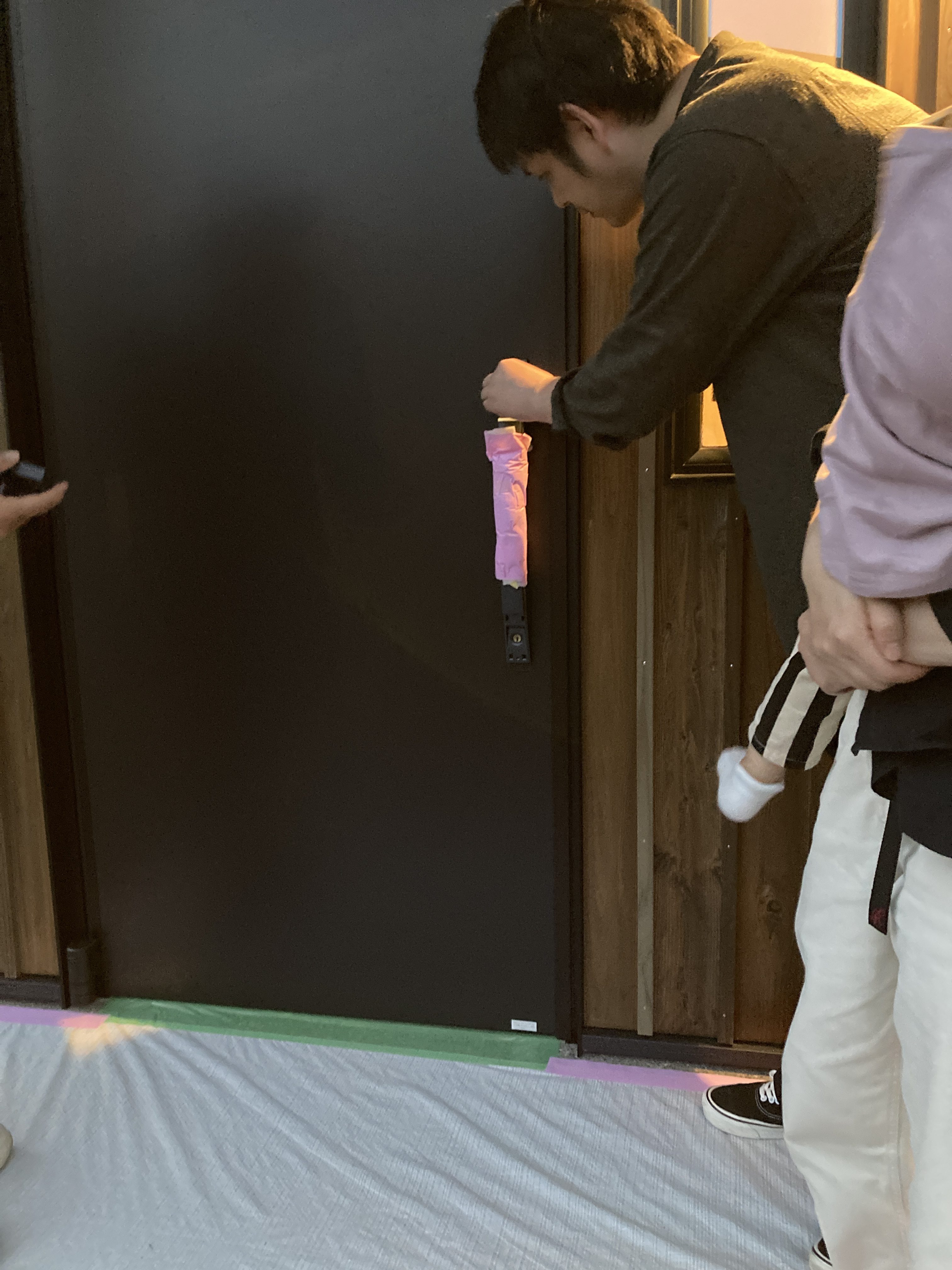 お引き渡し前に、k様からご支給いただいた小物類を取り付けている様子です。最近は傘立てを外に置く代わりに、この様な傘掛けを取り付けたいというご要望が多いです。傘立ては傘の生地同士が重なって乾きずらく、傘立ての下に雨水が溜まるので手入れも面倒💦傘掛けは、乾きやすくスペースも取らない上にお手入れ不要なので、人気なわけです。乾いた傘はシューズクローゼットに収納するので、見た目もすっきり👍それにしても、s水監督は器用でなんでもできる~一家に一人欲しいですね。