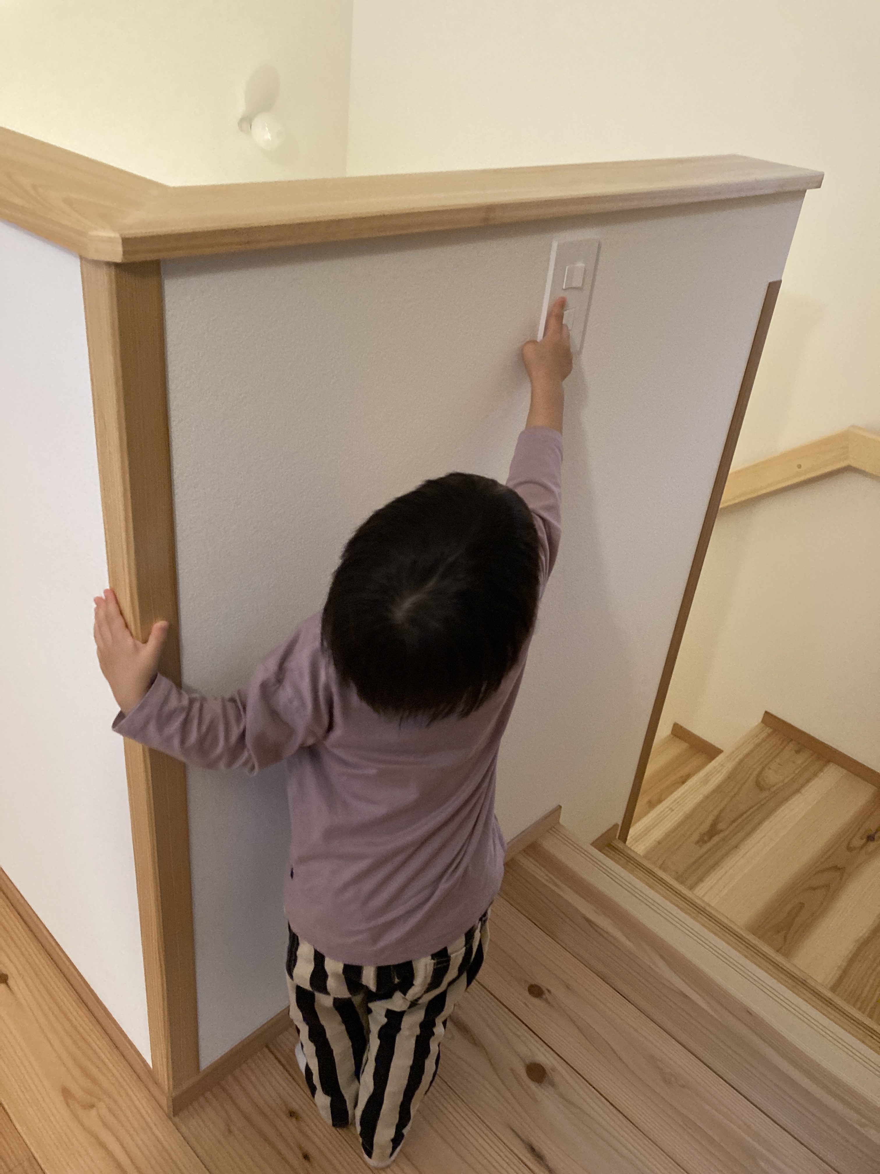 あら、やっぱりいい高さにスイッチが👍a君は自分の部屋の照明も自分で入り切り。スイッチも気に入った様子。これは、子供の手も借りたい時にいいですね。