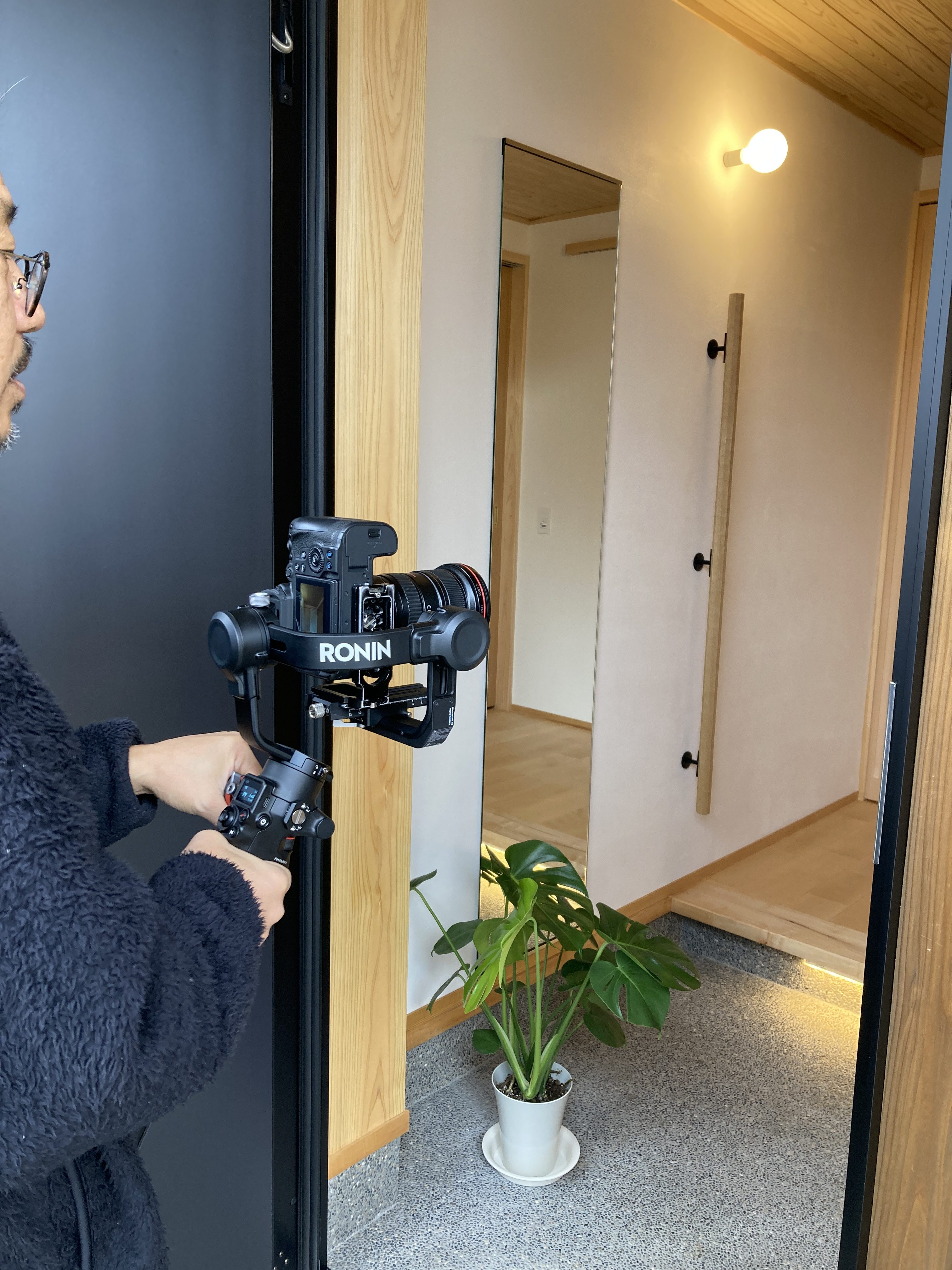 撮影前に、カメラマンのf川さんが「カメラに水平を暗記させるんだよ」と動画撮影用の器具を説明してくれました。a君も奥様も興味芯々。ホームビデオが出てきて、手振れだのなんだの言って、脇を締めて息を凝らしてビデオを撮っていた時から比べると、いろんな物が進化しているなぁって思いました。肩こりもしないし、息継ぎしなくて済む時代になりました👍出来上がりはいつになるのかなぁ~来年の楽しみが一つ増えました。k様、貴重なお休みにお時間をいただき、お掃除や整理整頓もしていただき、ありがとうございました。