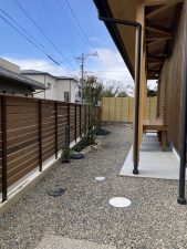 外構工事は、建物同様にフェンスの種類や土間の仕上げ、見切り材、植栽、ポスト、表札、照明など、選ばれるものによって雰囲気が変わります。この外観を引き立たせてくれる外構になるようにしなくては~と思います。