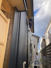 小庇の屋根部分の板金も張っています。今回の小庇は、江南事務所と一緒の袖壁付の小庇にされました。アクセントになってお洒落です👍