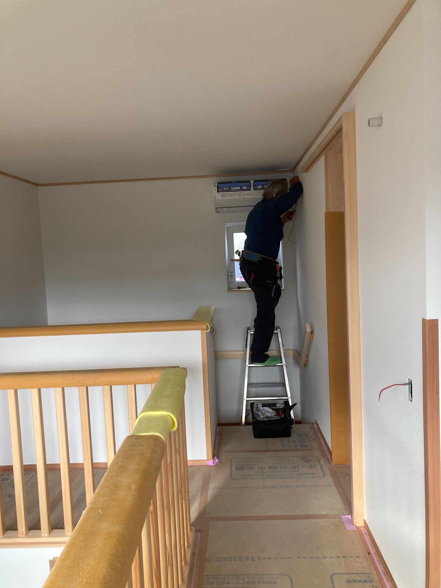 外部も、エコキュートやエアコンが取り付けられました。エアコンは奥様のお父様と弟さんが施工。ご主人がしっかりと梯子を支えています👍いい光景。良い思い出になりますね。