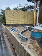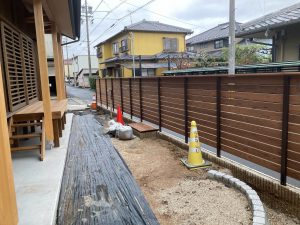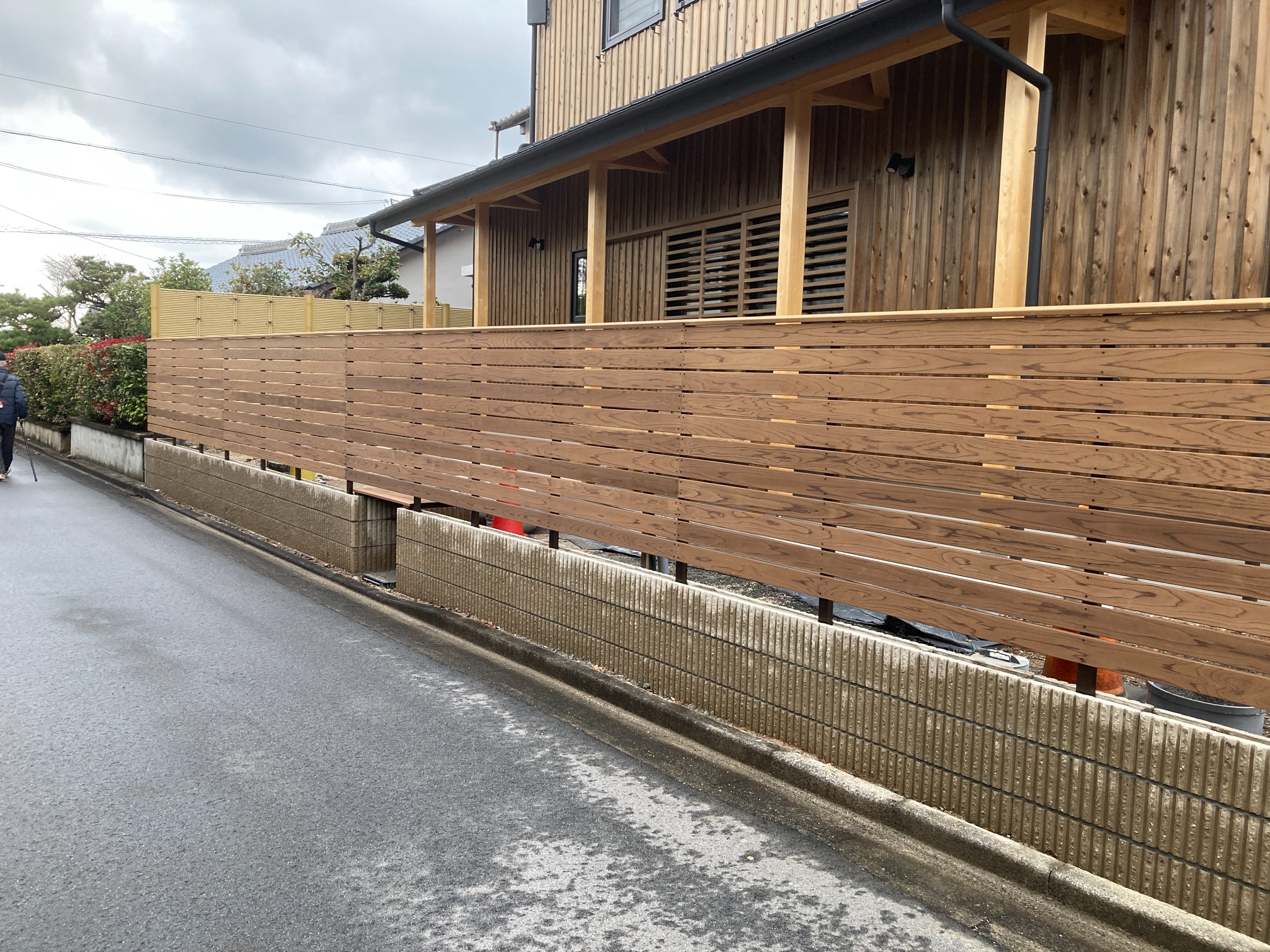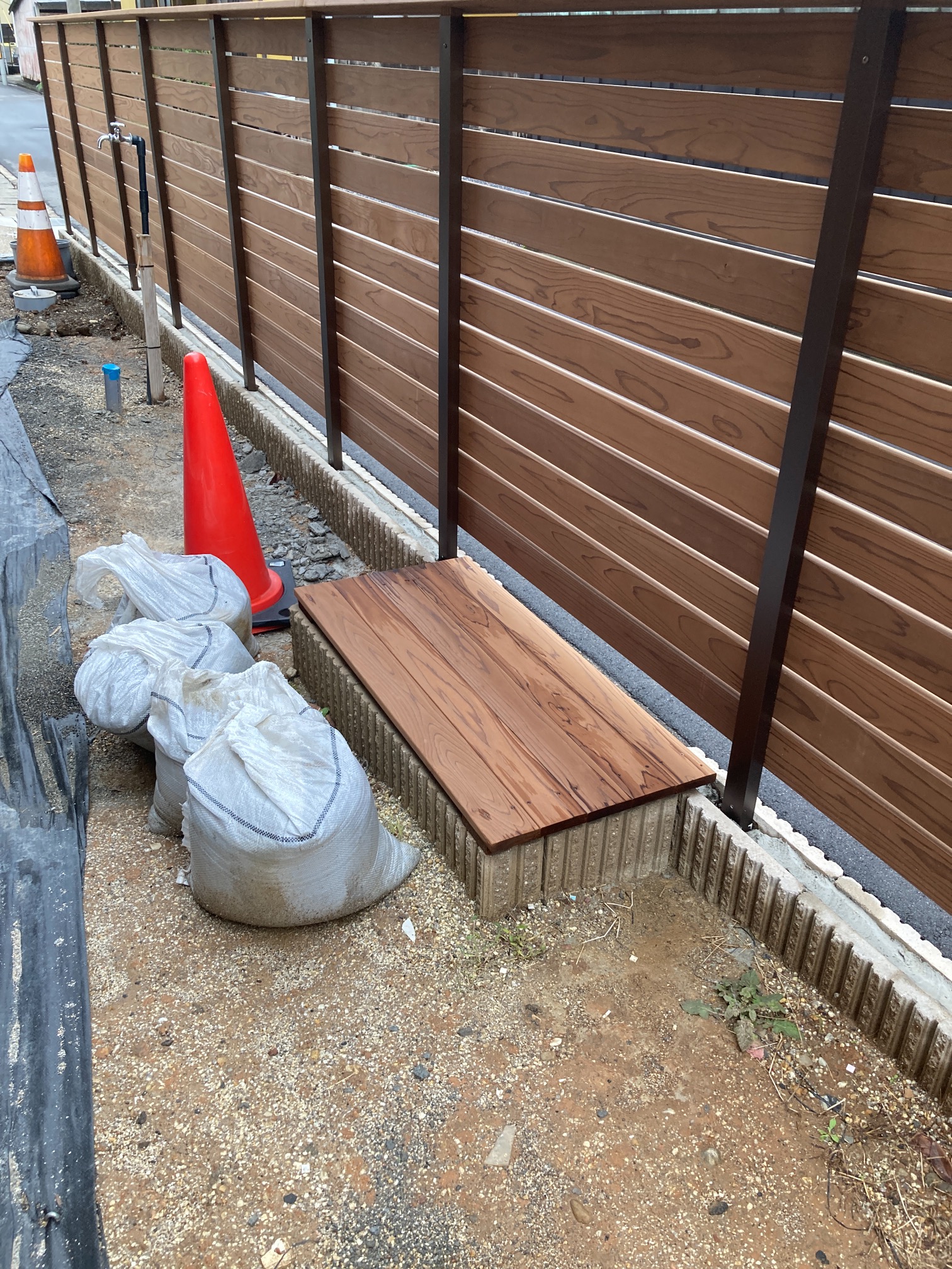 s戸棟梁によって木製フェンスが設置されました。残るは植栽工事。今週中に終わるかなぁ💦