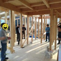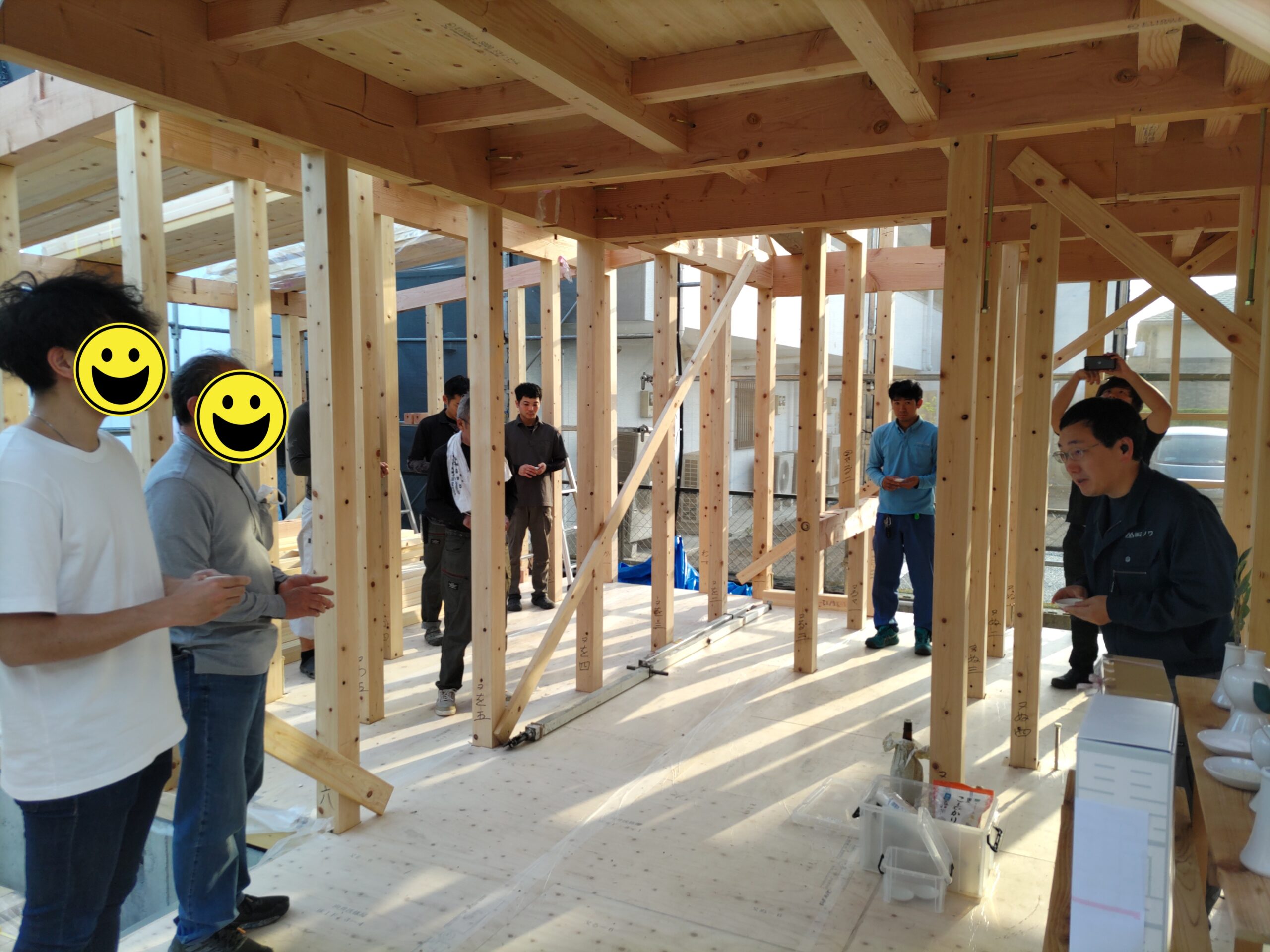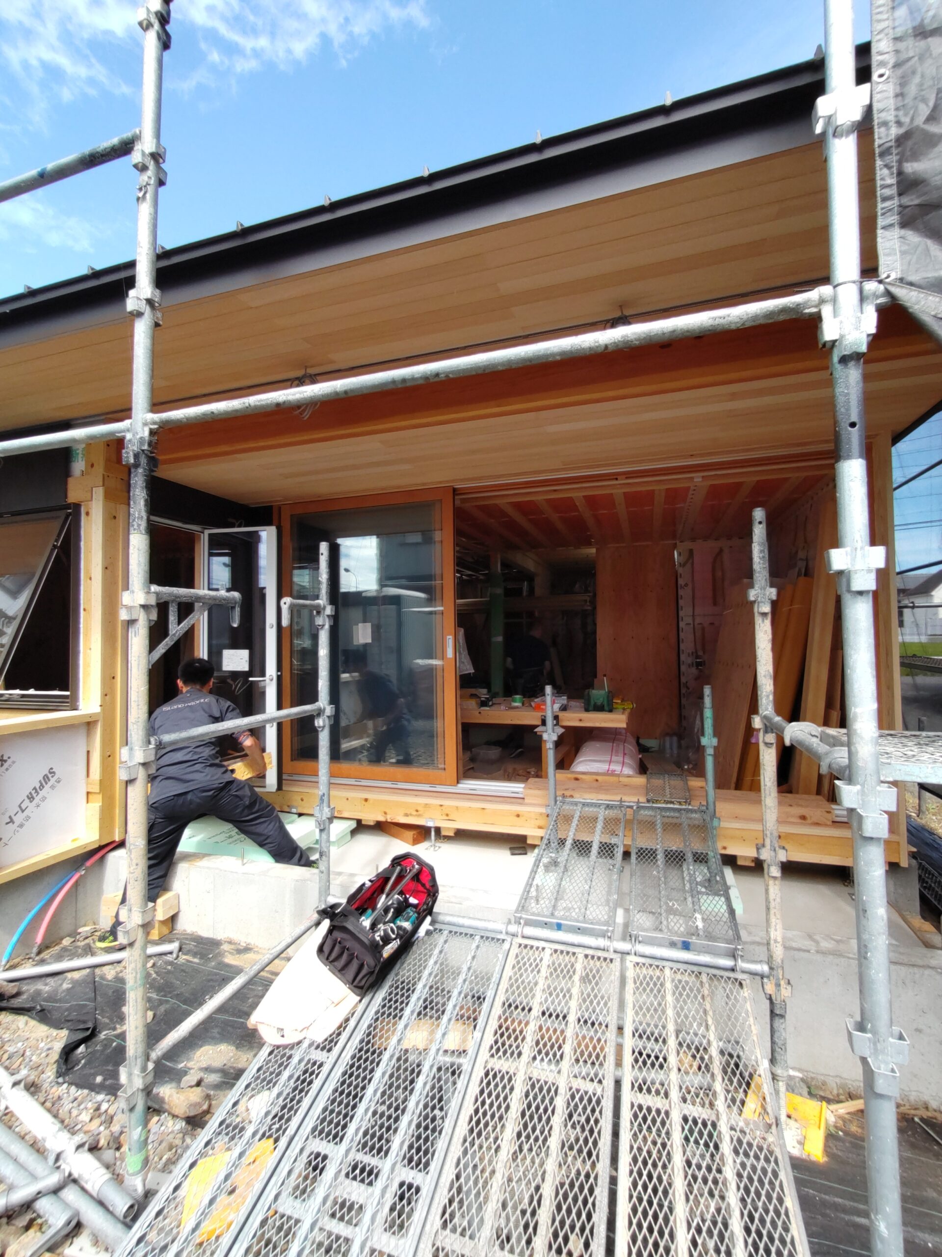 しばらく現場はa監督に任せっぱなしで筆者自身は来れていませんでしたが、久しぶりに現場を訪れました。一部外壁羽目板塗装はm様とm井先生ご夫妻とオ○モの担当者y田さんの力作。少々の塗りムラはいわゆる『味』と見て良いでしょう。それらも含めて自分の家を造るのを自分で作業しているという思い出になります。