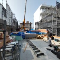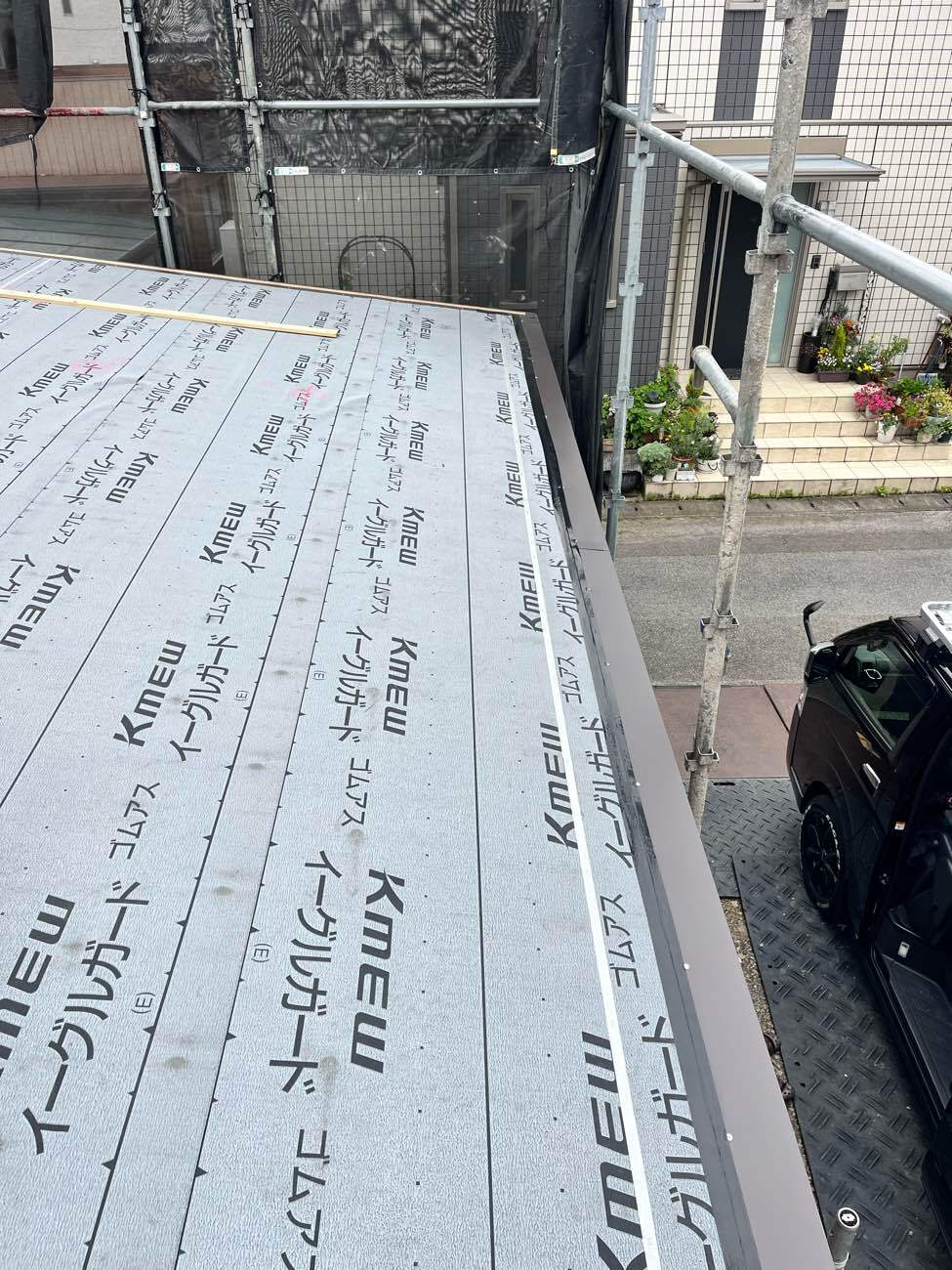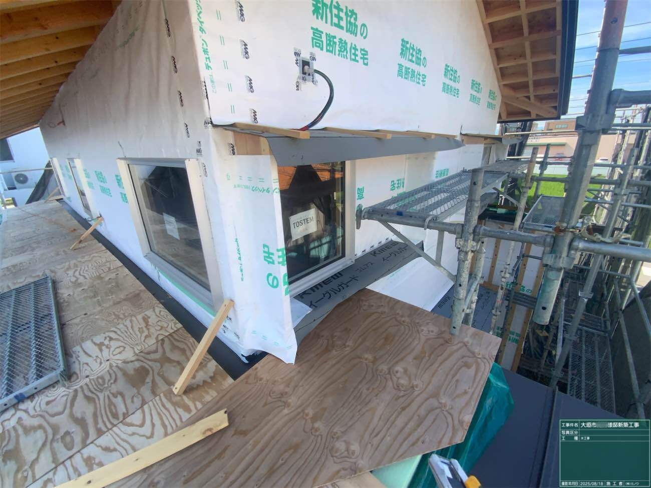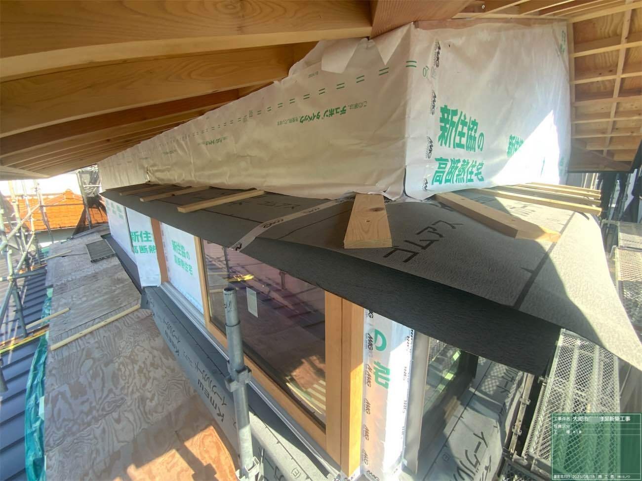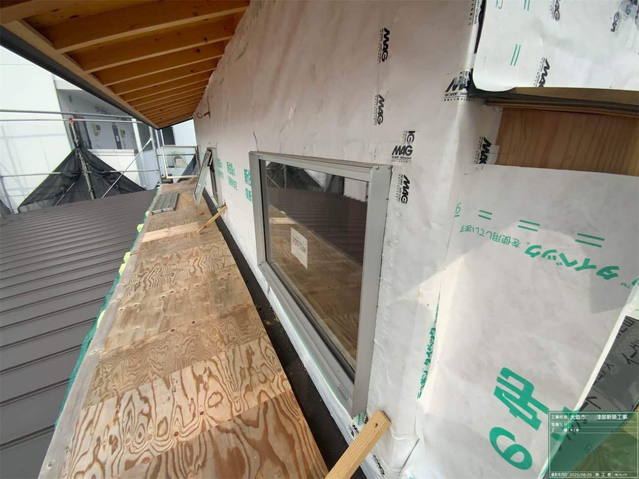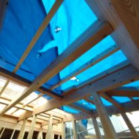 屋根の防水シート敷設工事が進んでいます。これから梅雨時に入り雨天が心配されますが、これでひとまずは安心です。あとはオーダーメイドのサッシが早く納品されるのを待つばかりです。
