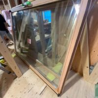 リビングの南面の掃き出し窓は2本引き込みの木製サッシです。アイランドプロファイル社のヘーベシーベ窓を取り付けられました。と、文面ではさもヨカッタヨカッタという風体で書いていますが、設置されるまでが苦労の連続でした。 ㎜単位までオーダーできるため、逆に精密な設計採寸打合せが必要となり、実際に納品され取り付けられるまでは非常に戦々恐々でした。いざ現場に搬入されたらこの窓一枚が重いのなんの。3~4人がかりで持ち上げ、北側道路からは反対の南面まで息も絶え絶えに運ぶことと相成りました。