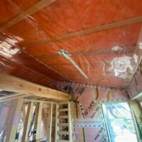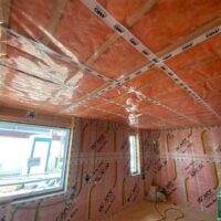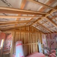 今回はほとんど小屋裏の無い設計ですので屋根断熱工事を行います。梁成が大きいのでほぼ同じ厚みのグラスウールを充填することになります。