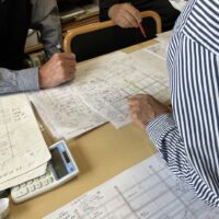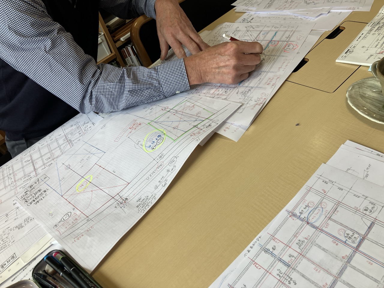 第3回プレカット打ち合わせ。屋根下地の組み方が複雑なため、垂木だけに集中した議論を重ねます。構造計算、プレカット加工、現場大工各々の問題点をすり合わせて良い方法を見つけ出していきます。途中コーヒーブレイクを挟みつつ、垂木だけで3時間くらいかけて打合せを行いました。