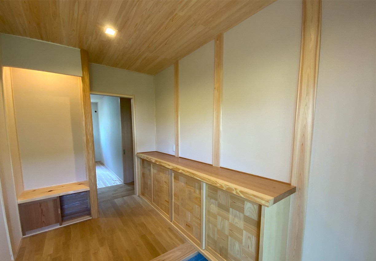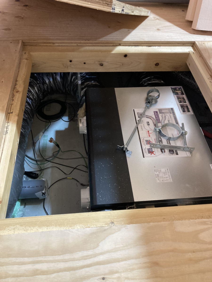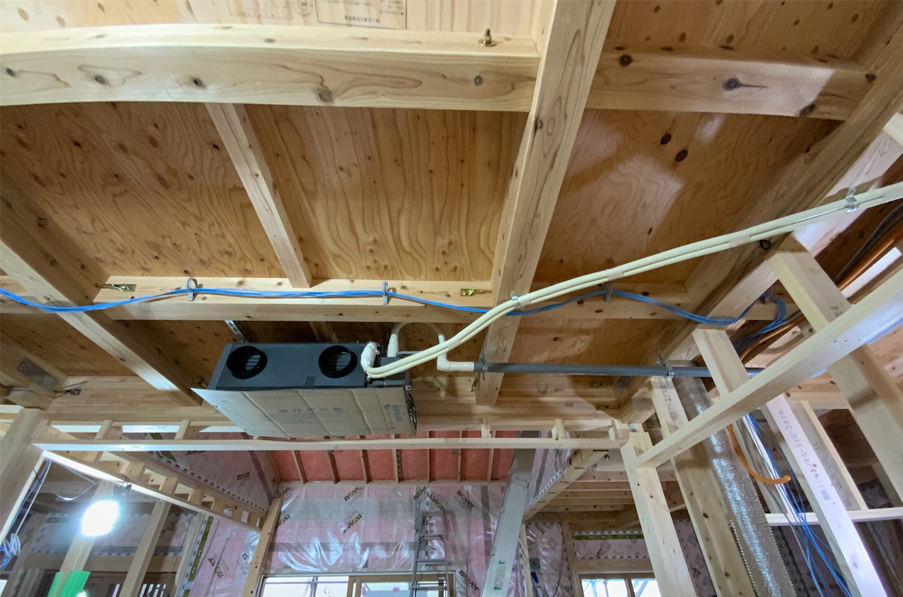 断熱された基礎内部に熱交換システム「澄家」・天井にはビルトインエアコンが設置されました。