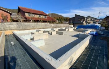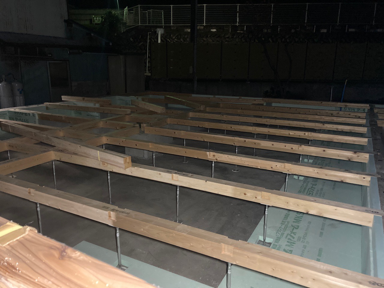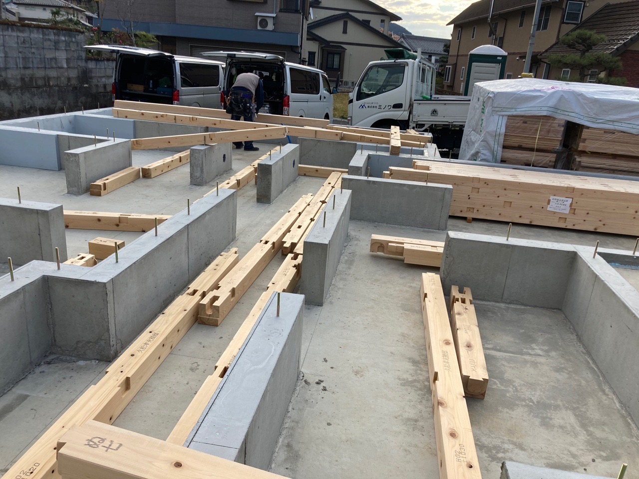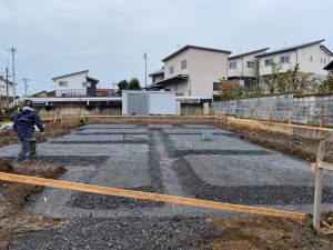 解体工事が終わり、基礎土台伏せ施工が行われました。
