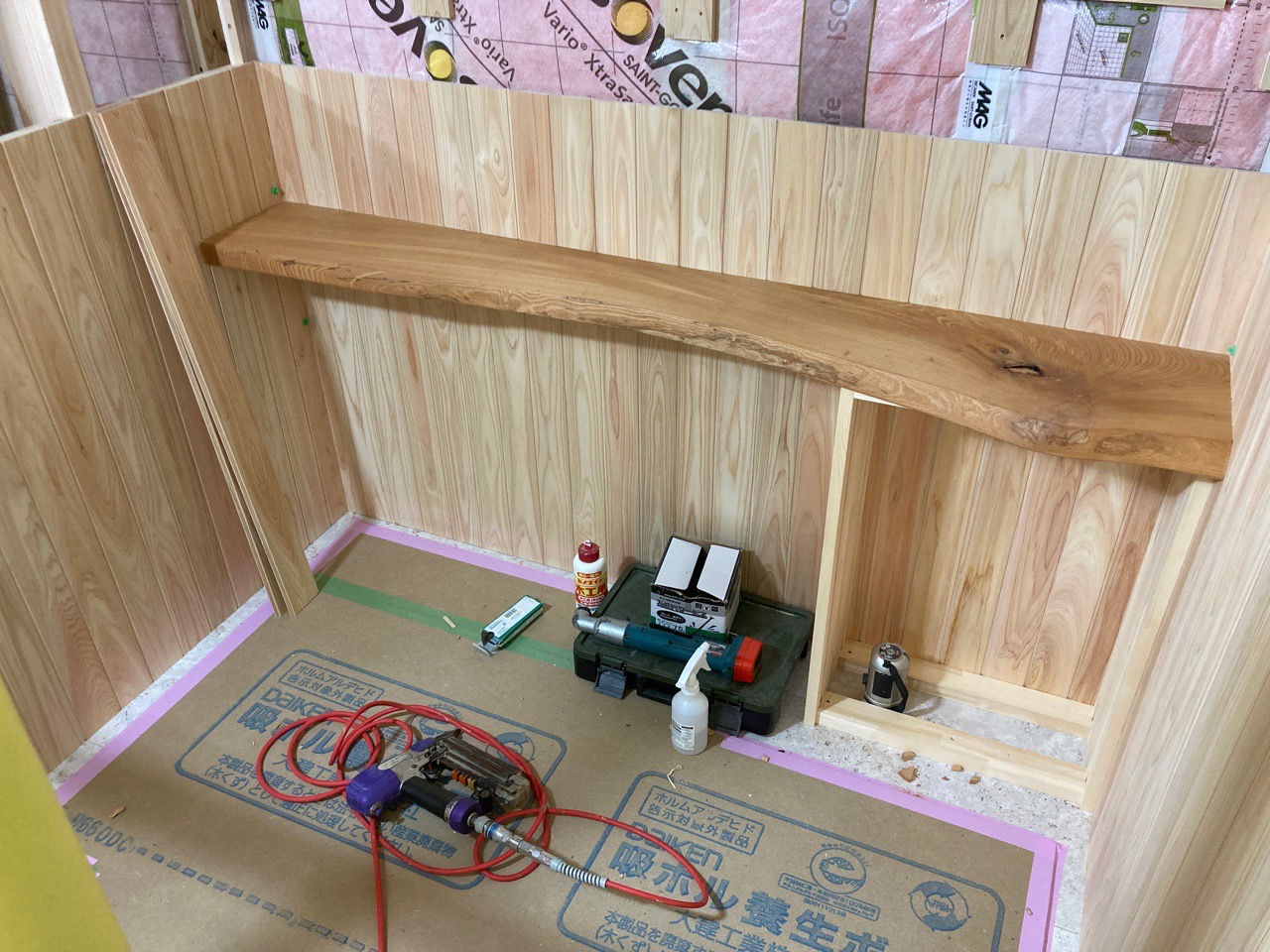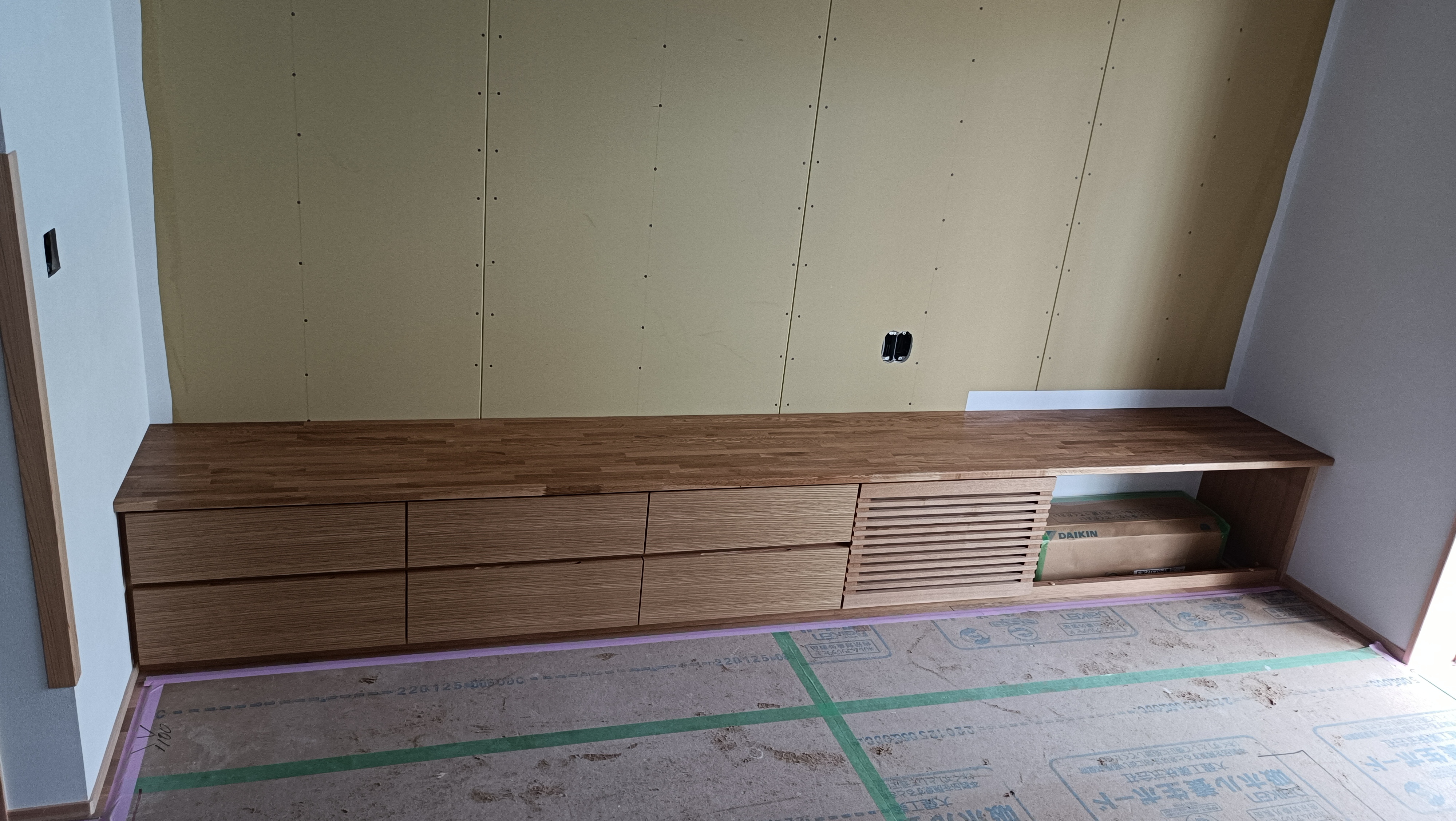 制作家具も据え付けられ、完了に向けて着々と工事が進んでいます。