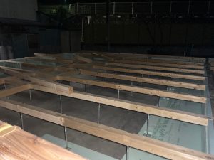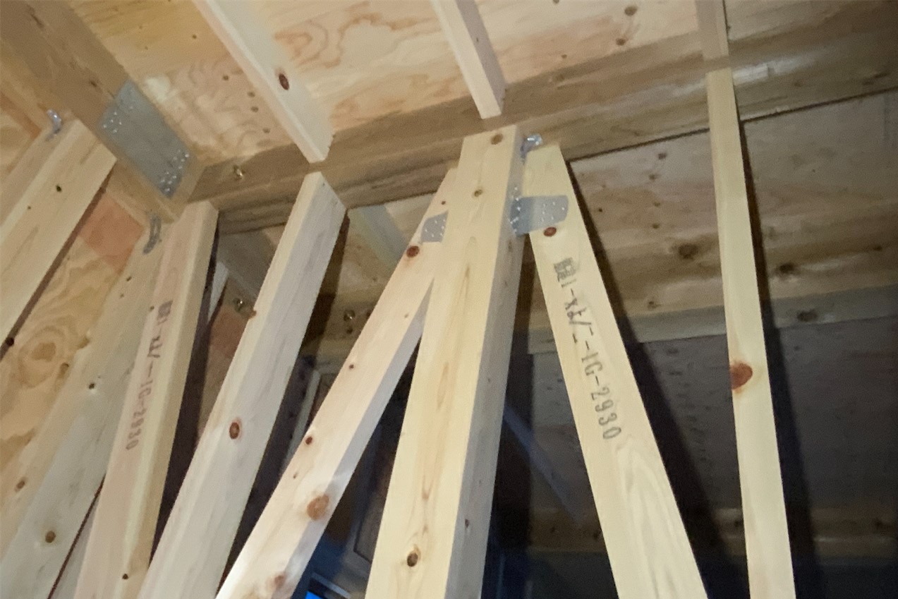 小屋裏に天井下地が取り付けられました。この後プラスターボードが貼られていきます。