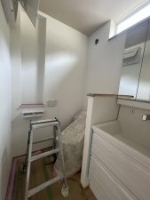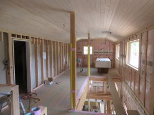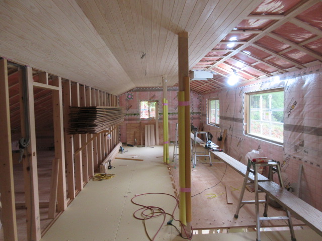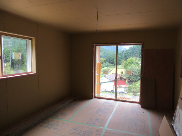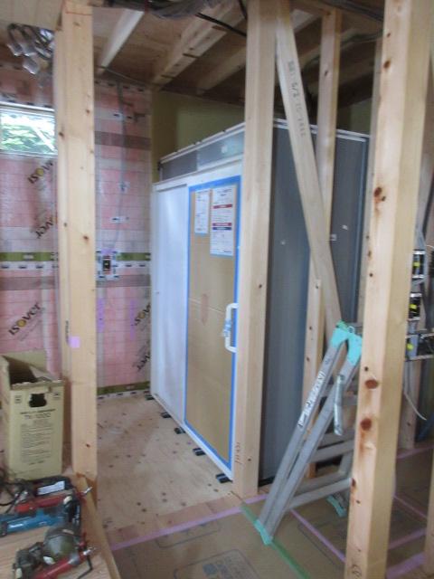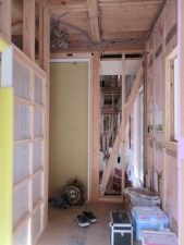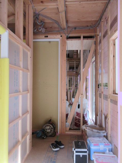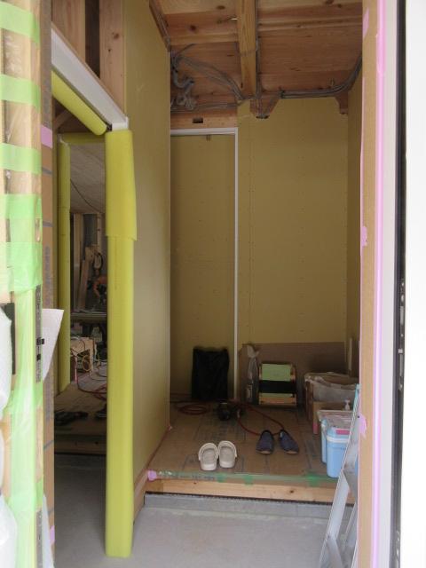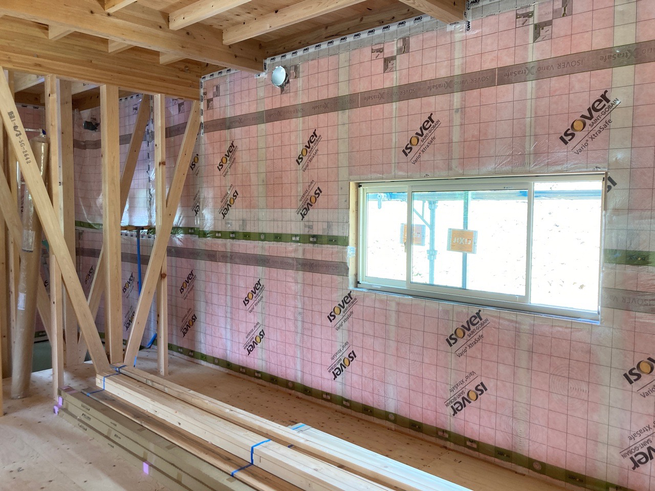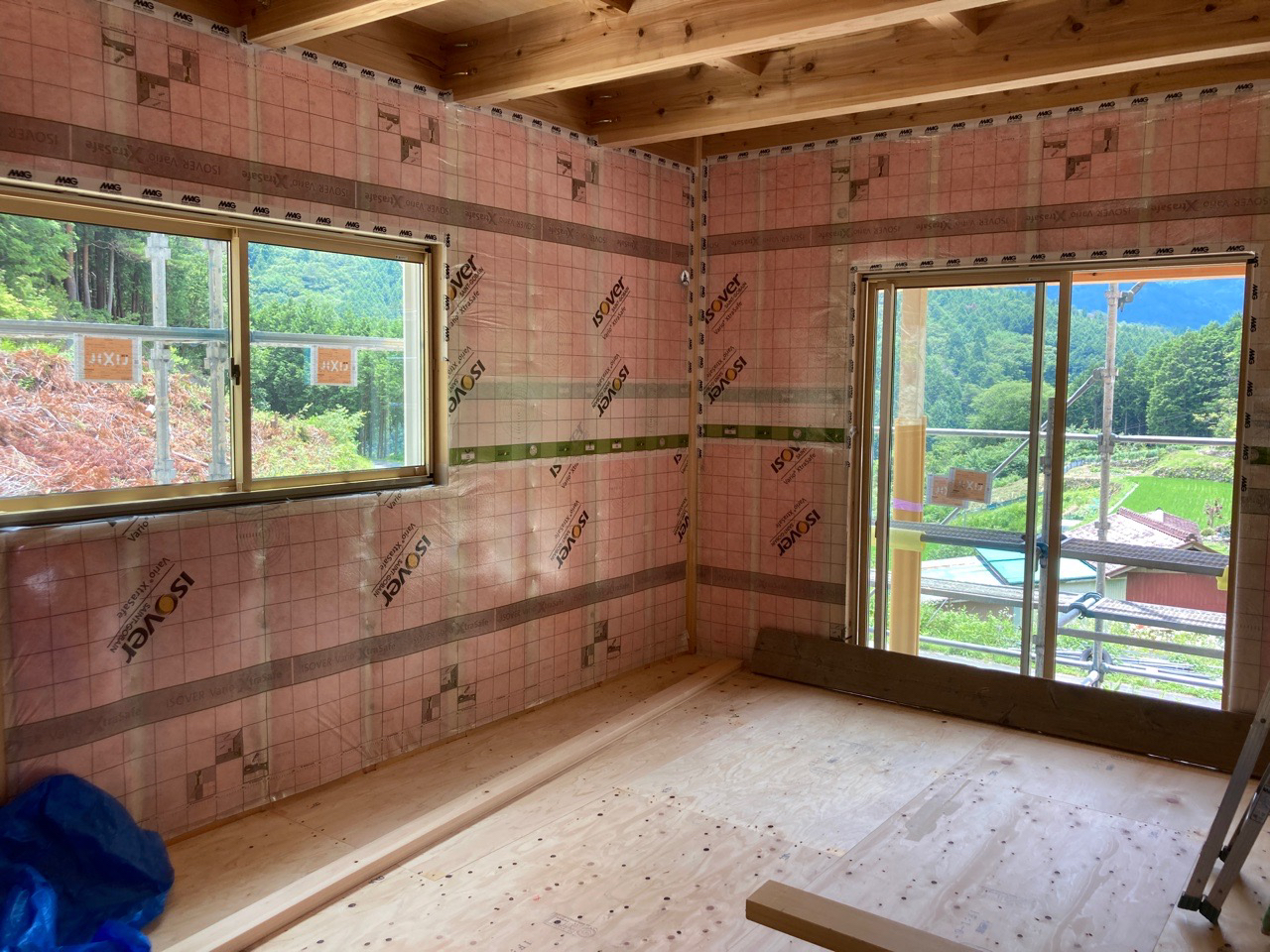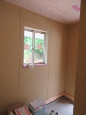 室内は壁に断熱材(高性能グラスウール)が充填され、気密シートが貼られました。
