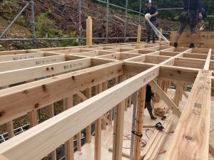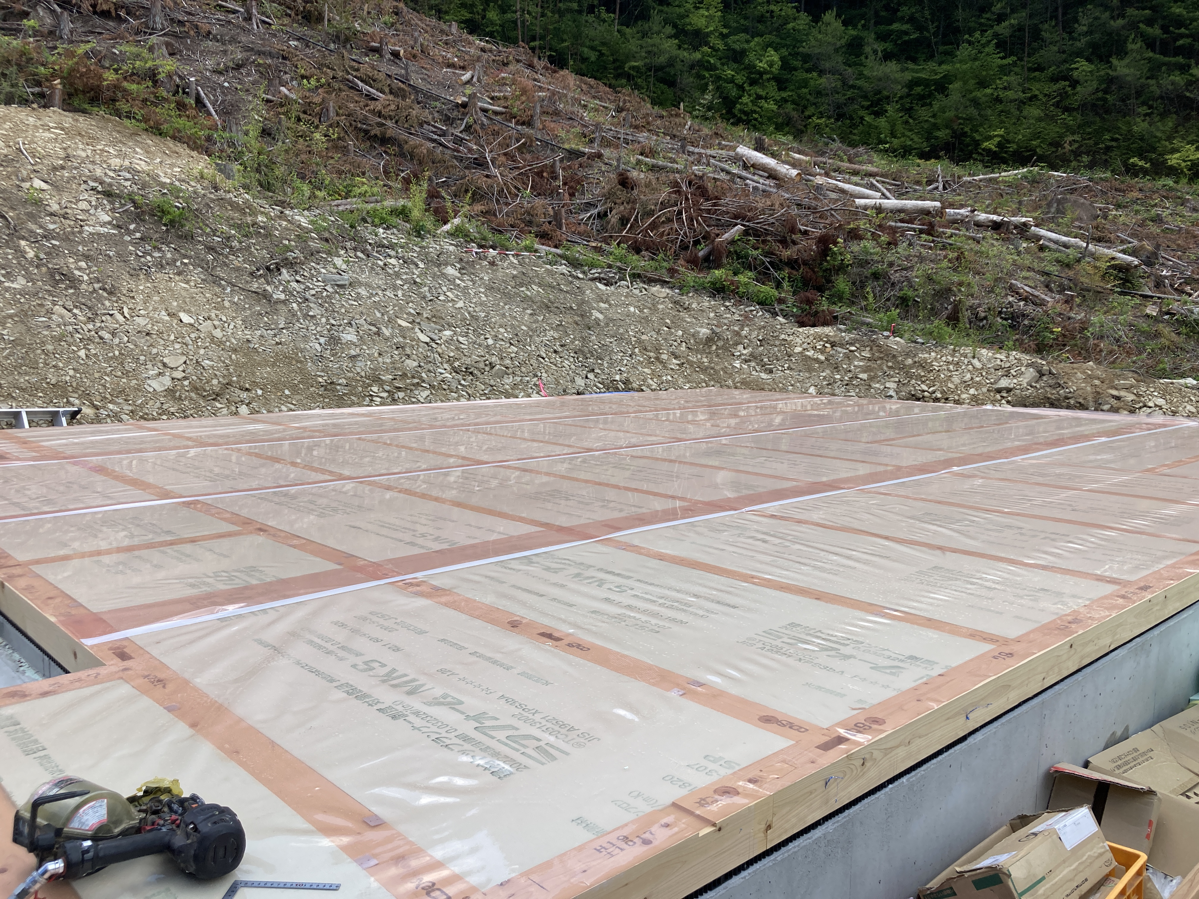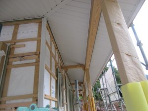 いつも通り息の合った作業で順調に進み、予定通り屋根のルーフィングまで終えることができました。