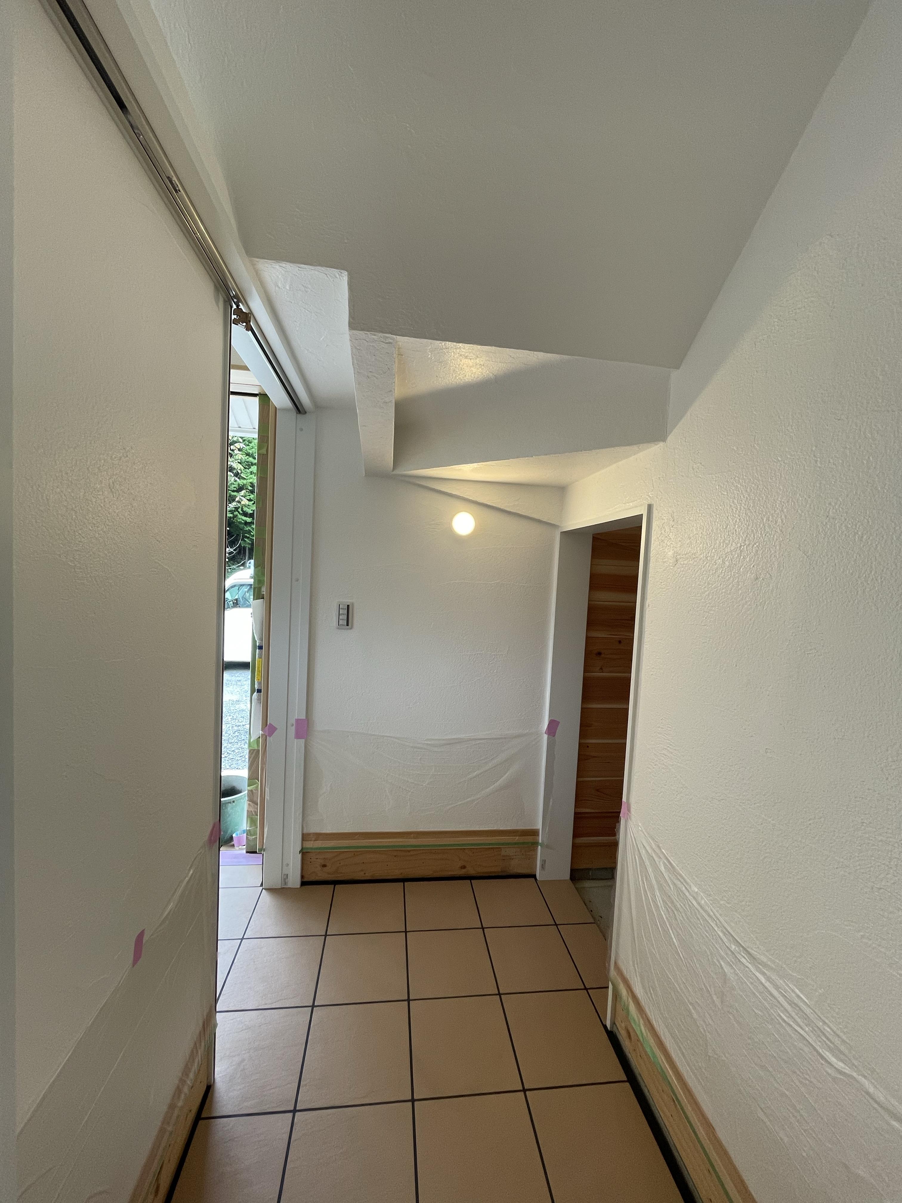 外壁に使われることも多いですが、こちらの現場には室内壁に漆喰が施されました。調湿・消臭効果が期待されます。