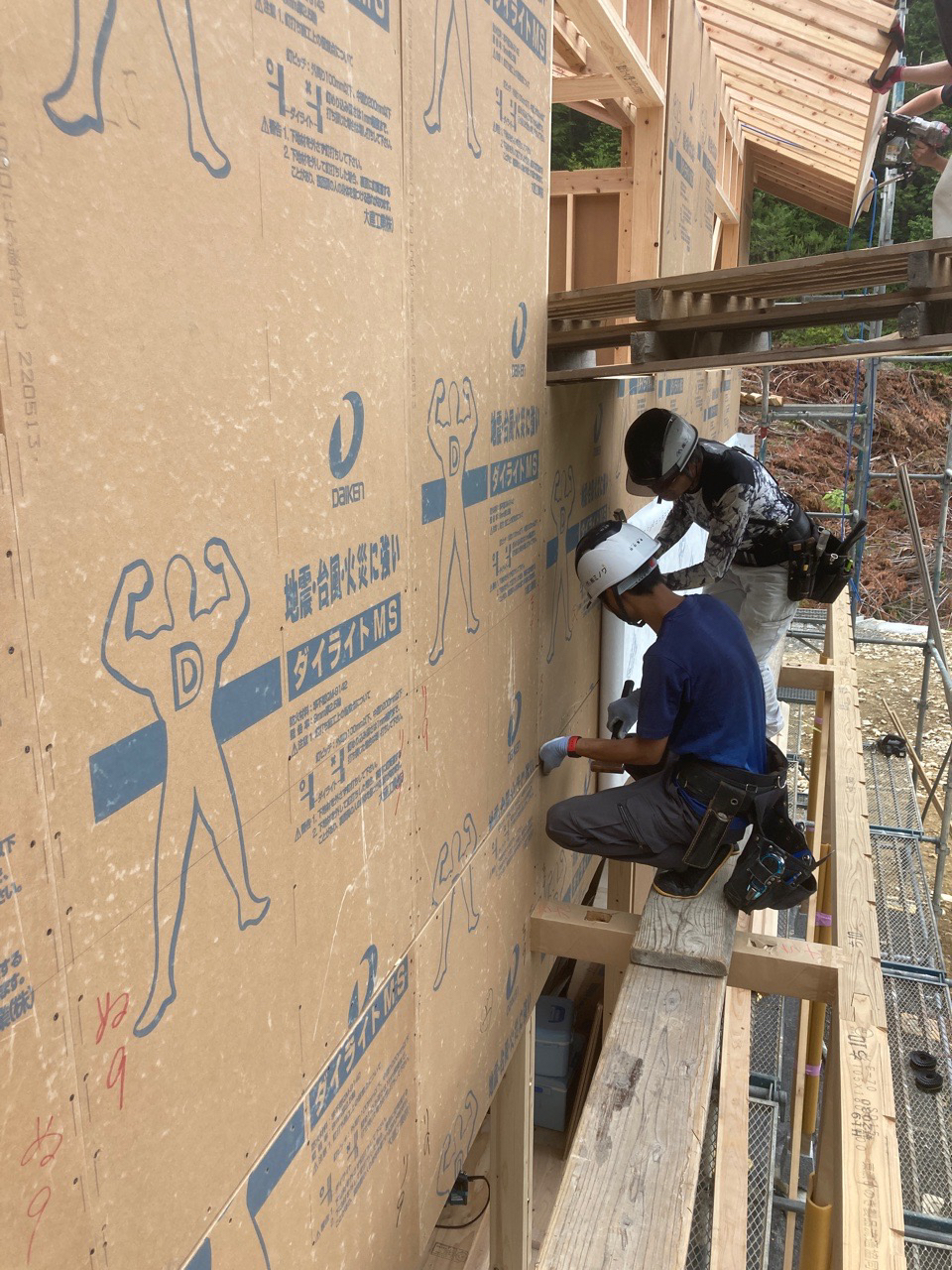 前日降っていた雨も上がり、過ごしやすい気候の中で上棟が行われました。