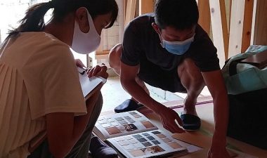 今回は「家具の打ち合わせ」で現場に行かさせていただきました。家具屋さんとお施主様とで打ち合わせです。インテリアのイメージや、収納したいモノに合わせてキャビネットの仕様を考えたり、お部屋にあった寸法で作る事ができます。ですので、家具のデザインや大きさ・扉の面材の種類・お色の選択でお部屋のイメージが変わってくるので、真剣にお選びいただいております。こういった打ち合わせも、置家具にはない楽しみの一つですね。