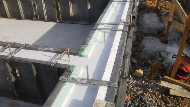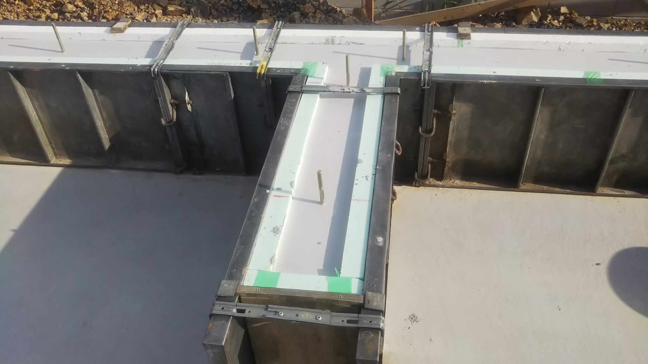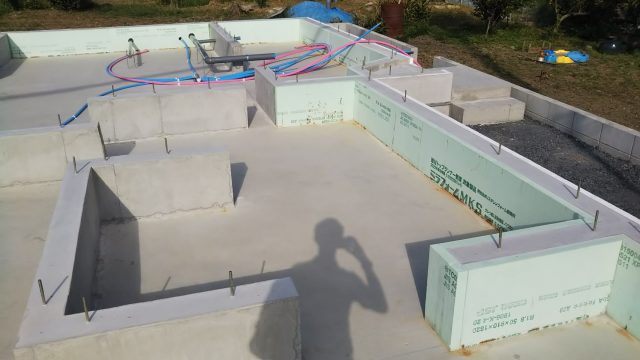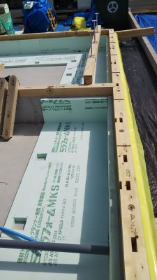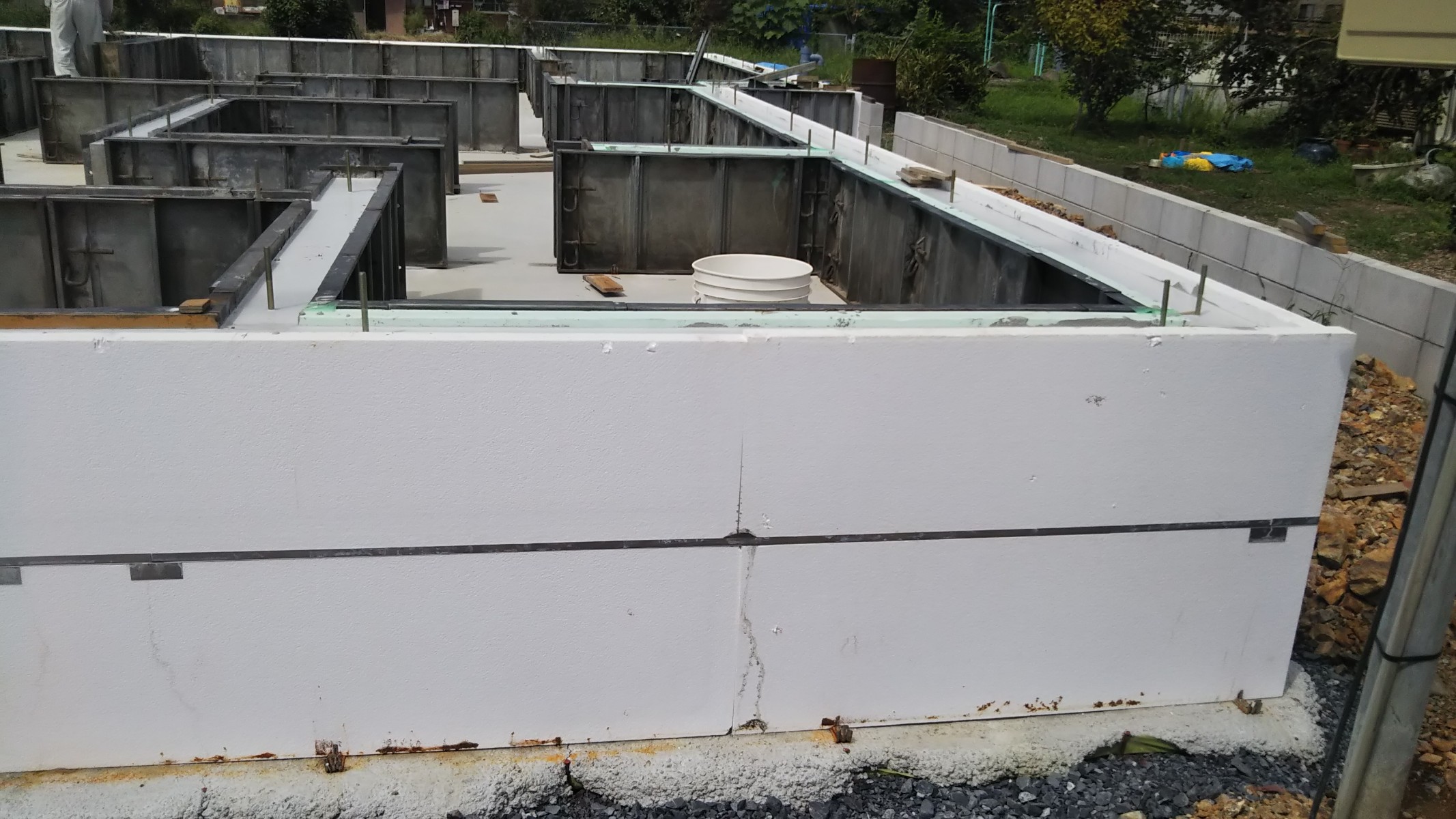 型枠取り外し風景。この後外周部1m以内の平面部(基礎の底)にも断熱を施工します。