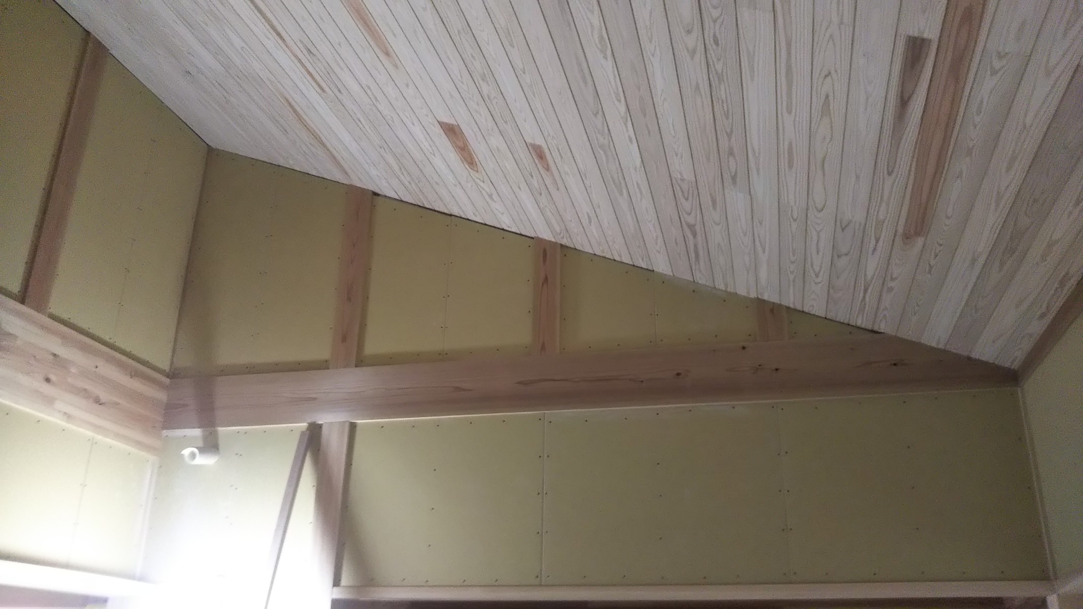 壁には調湿気密シートを貼り、室内の気密性を高めます。