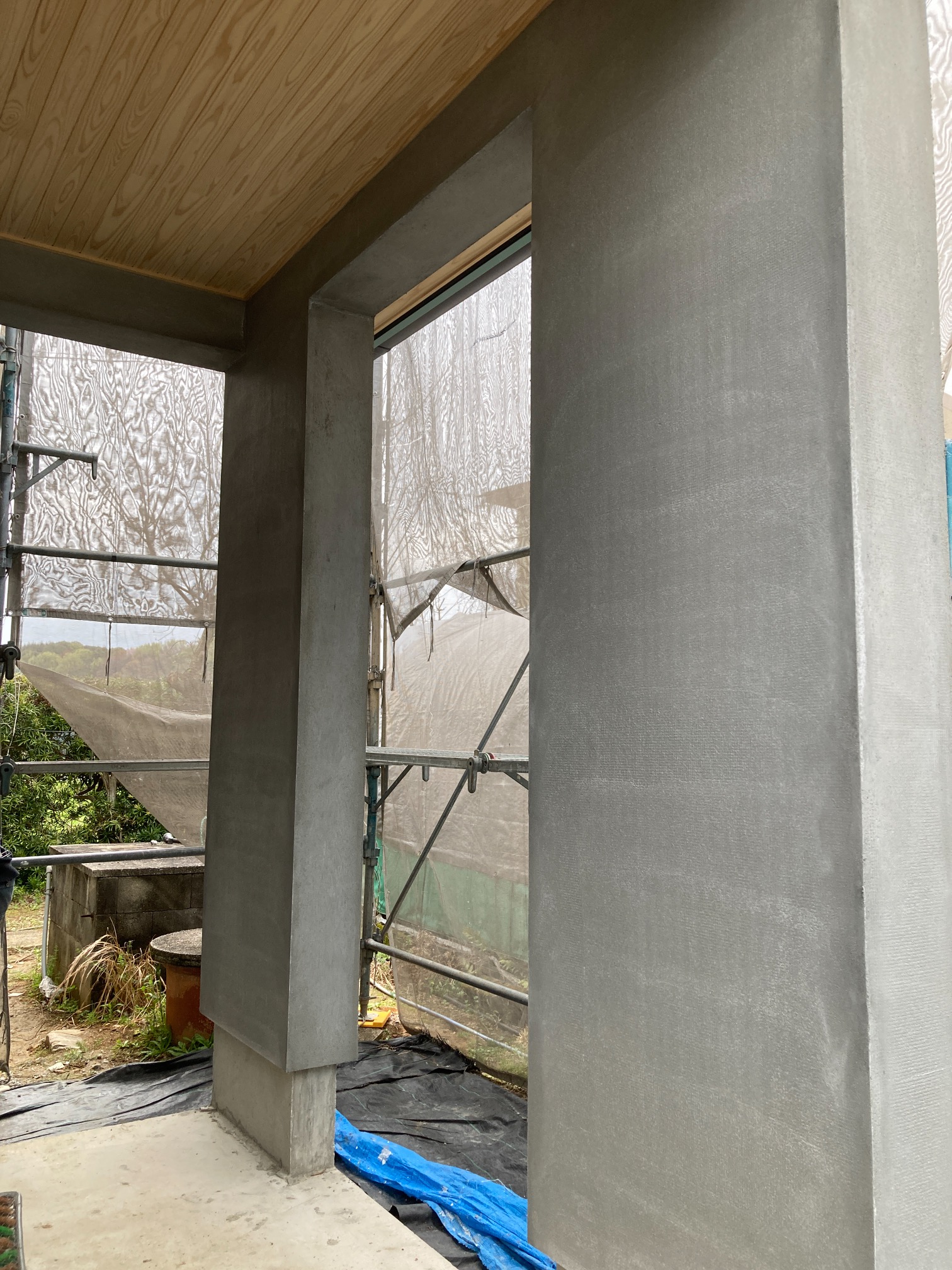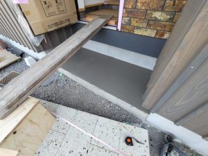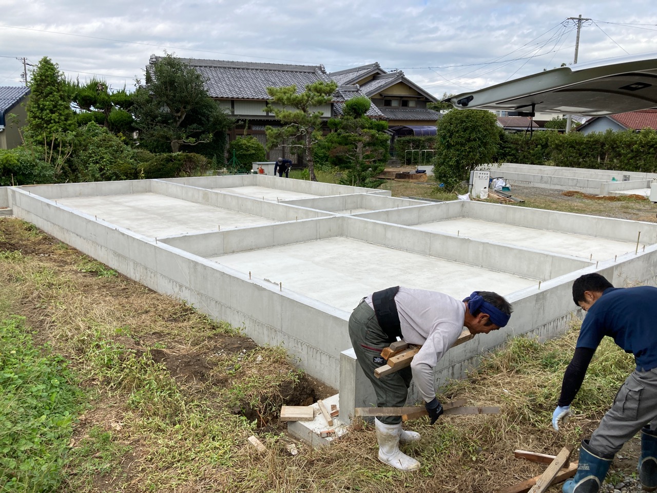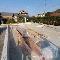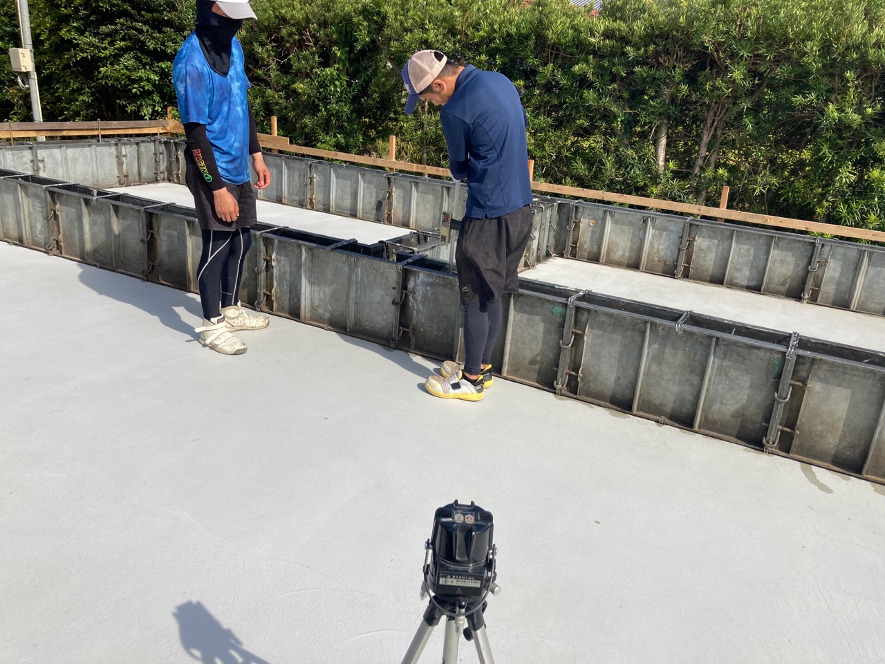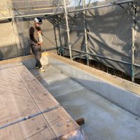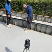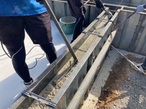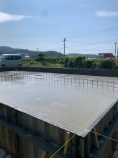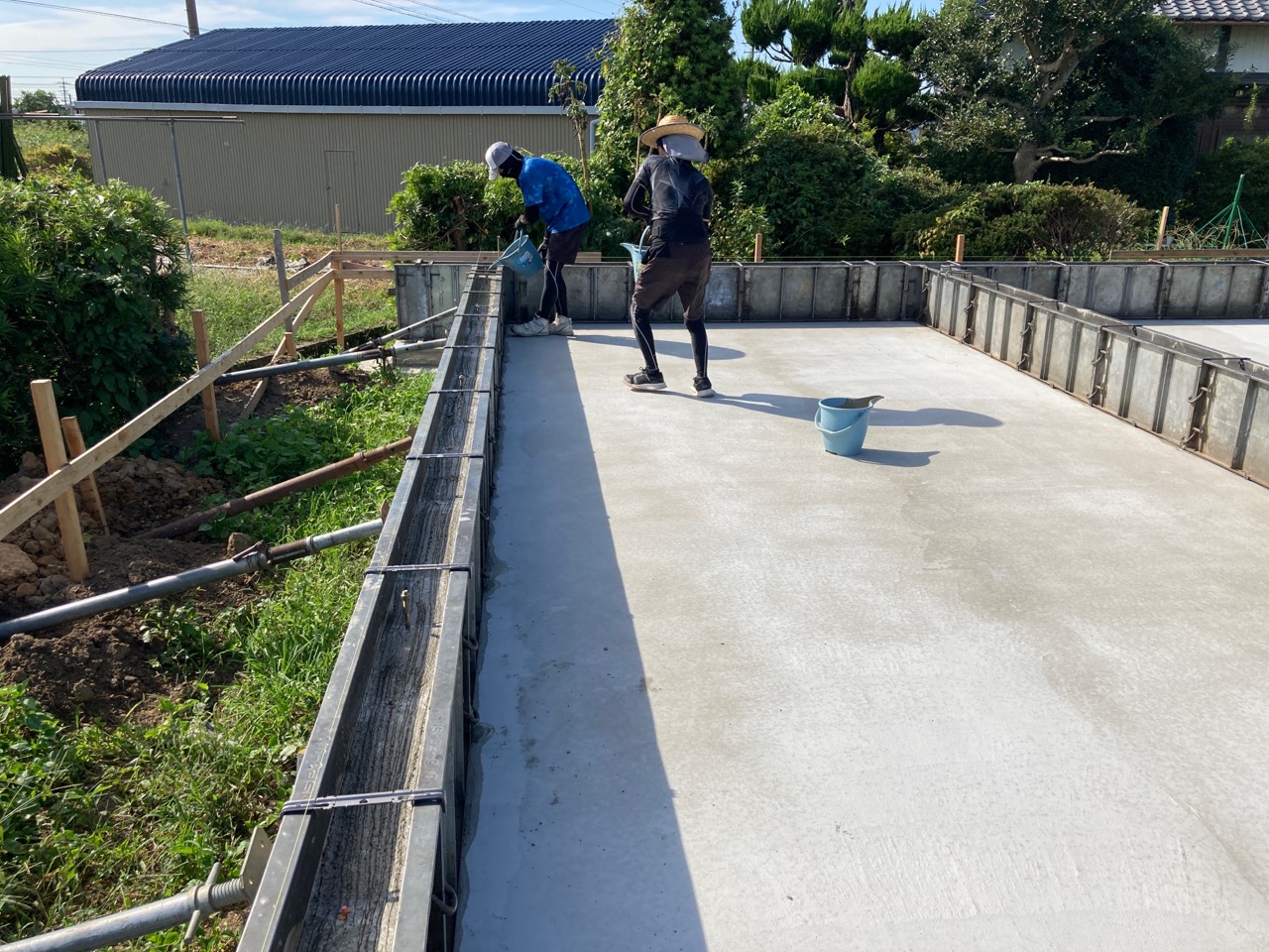 南北世帯とも無事にレベラーまで流し終え、後はコンクリートの型枠存置養生期間を経て型枠の解体を行えばできあがりです。