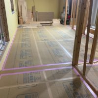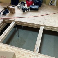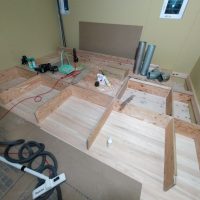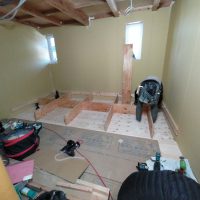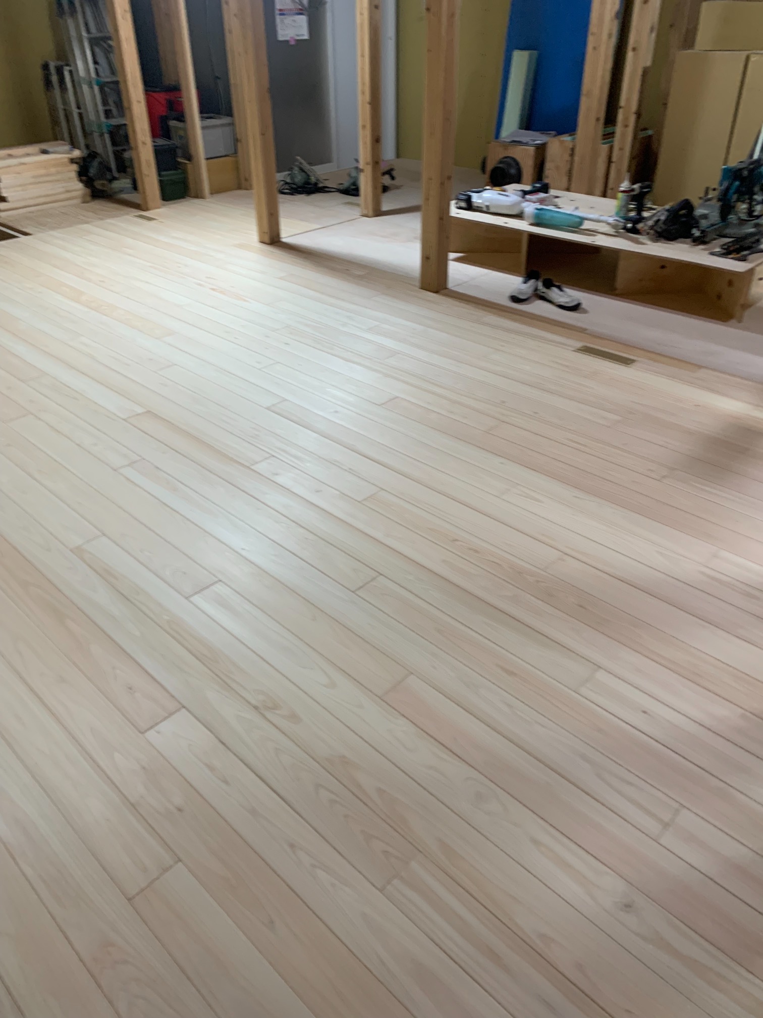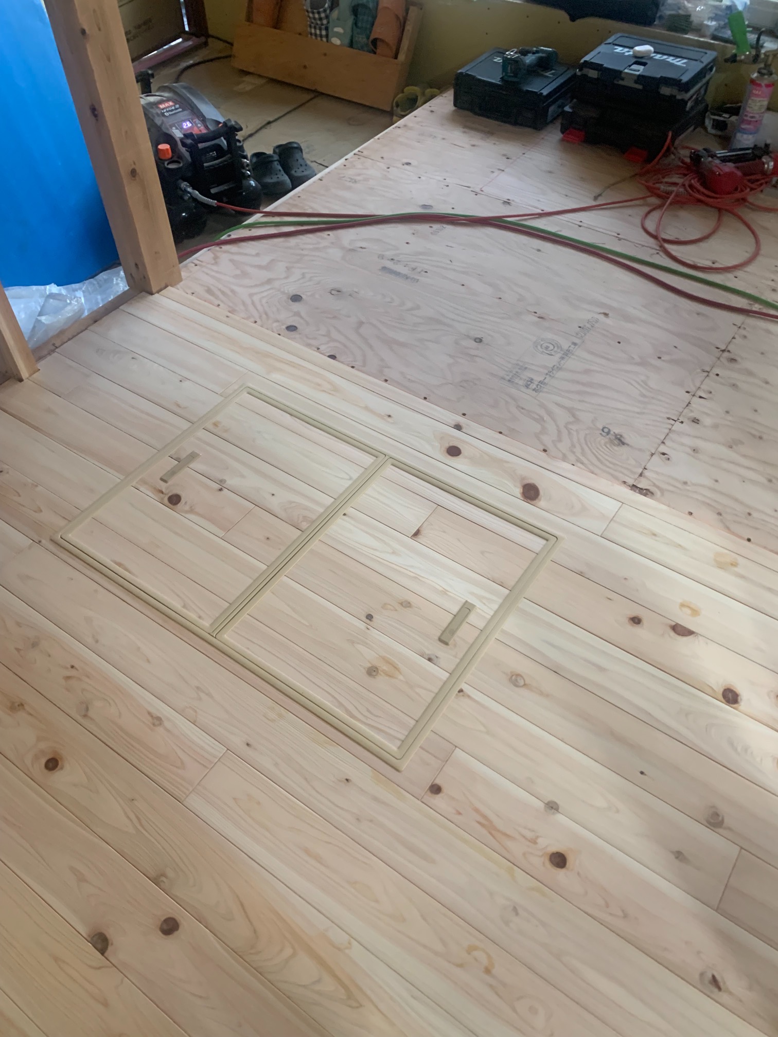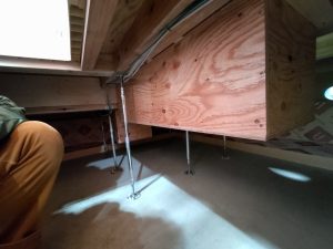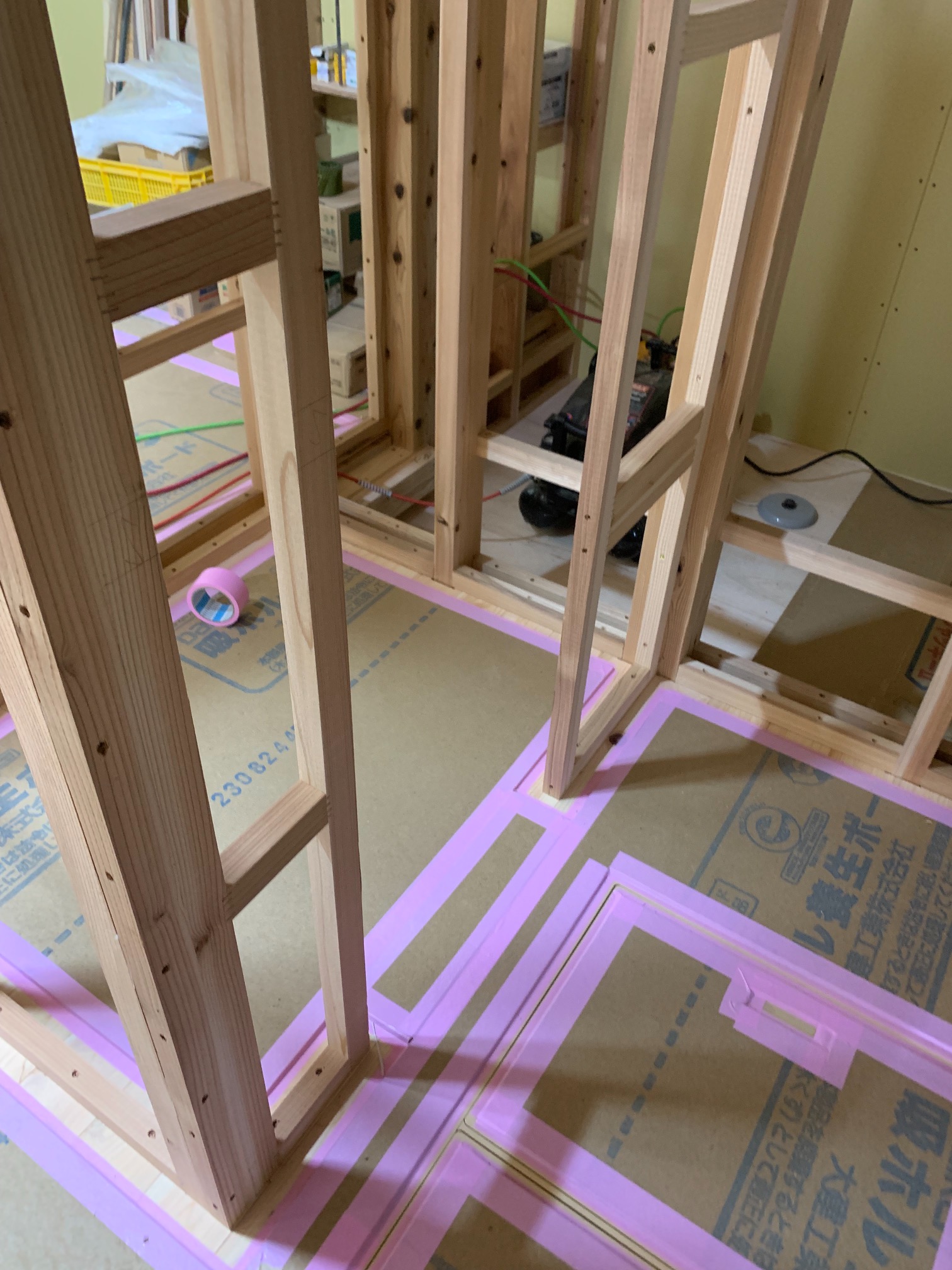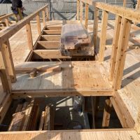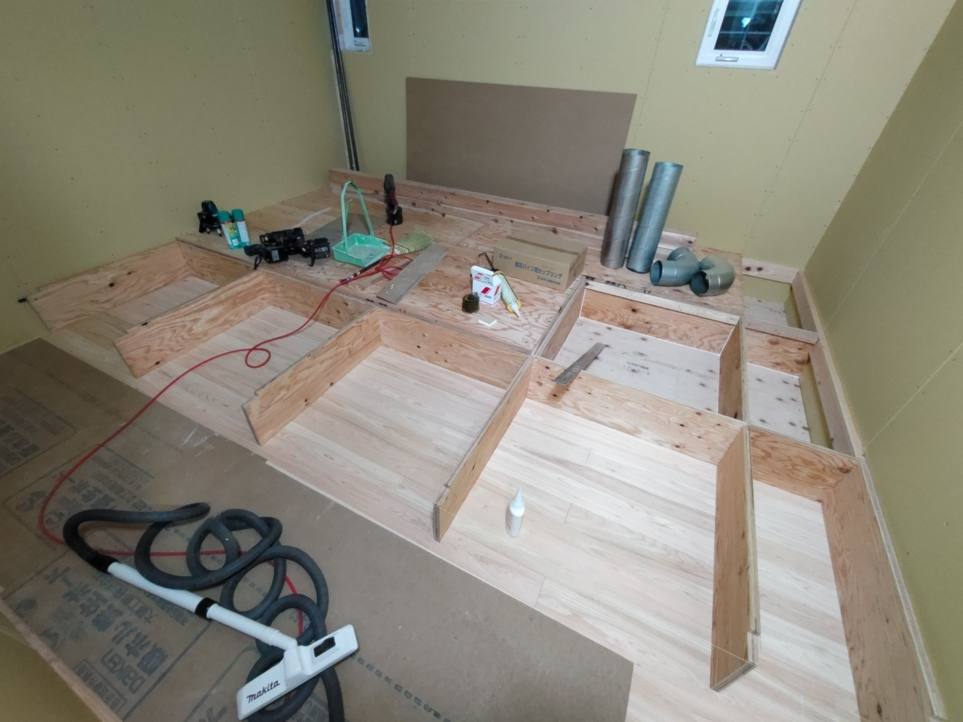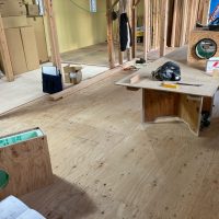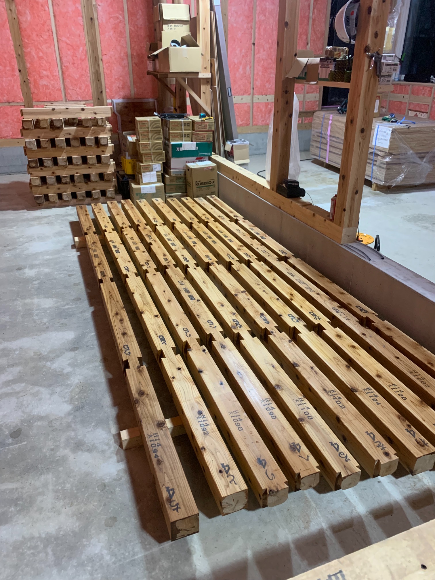 k長先生の提唱する仕様により、1階の床を土台から少し上げて床下空間を高めにとる構造のため、床下地の合板を敷設するのは、上棟後内部がある程度捜索で来てからとなります。