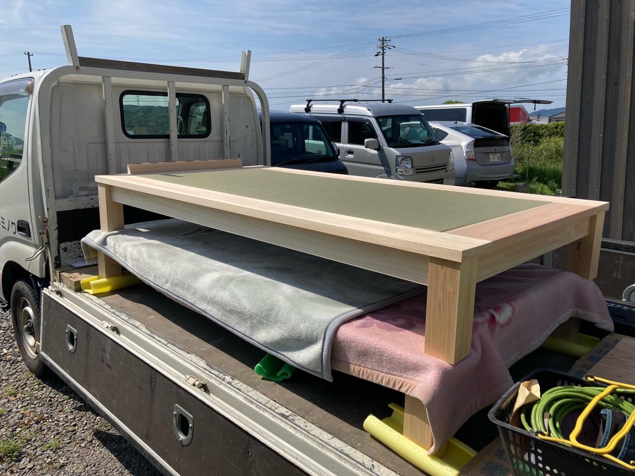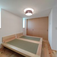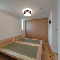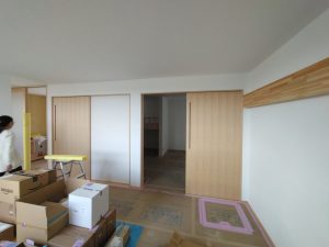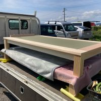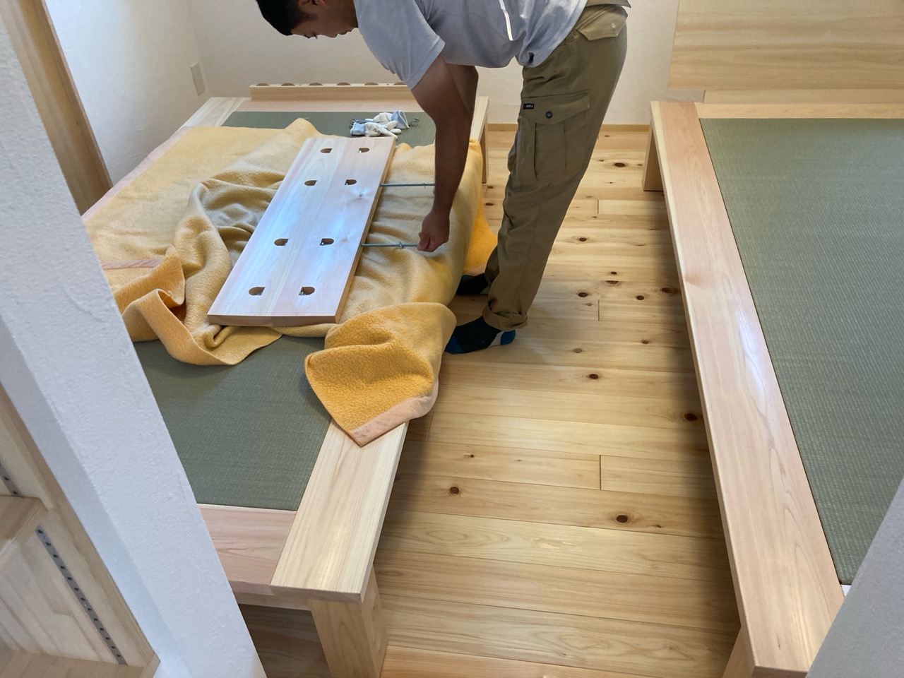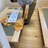 そして北世帯にはお父様念願の畳ベッドを搬入据付しました。k保木棟梁が倉庫で汗水たらして桧を加工していたのはここに据えるためのベッドを造っていたんですね。これからは桧の良い香りの中で眠れそうです。