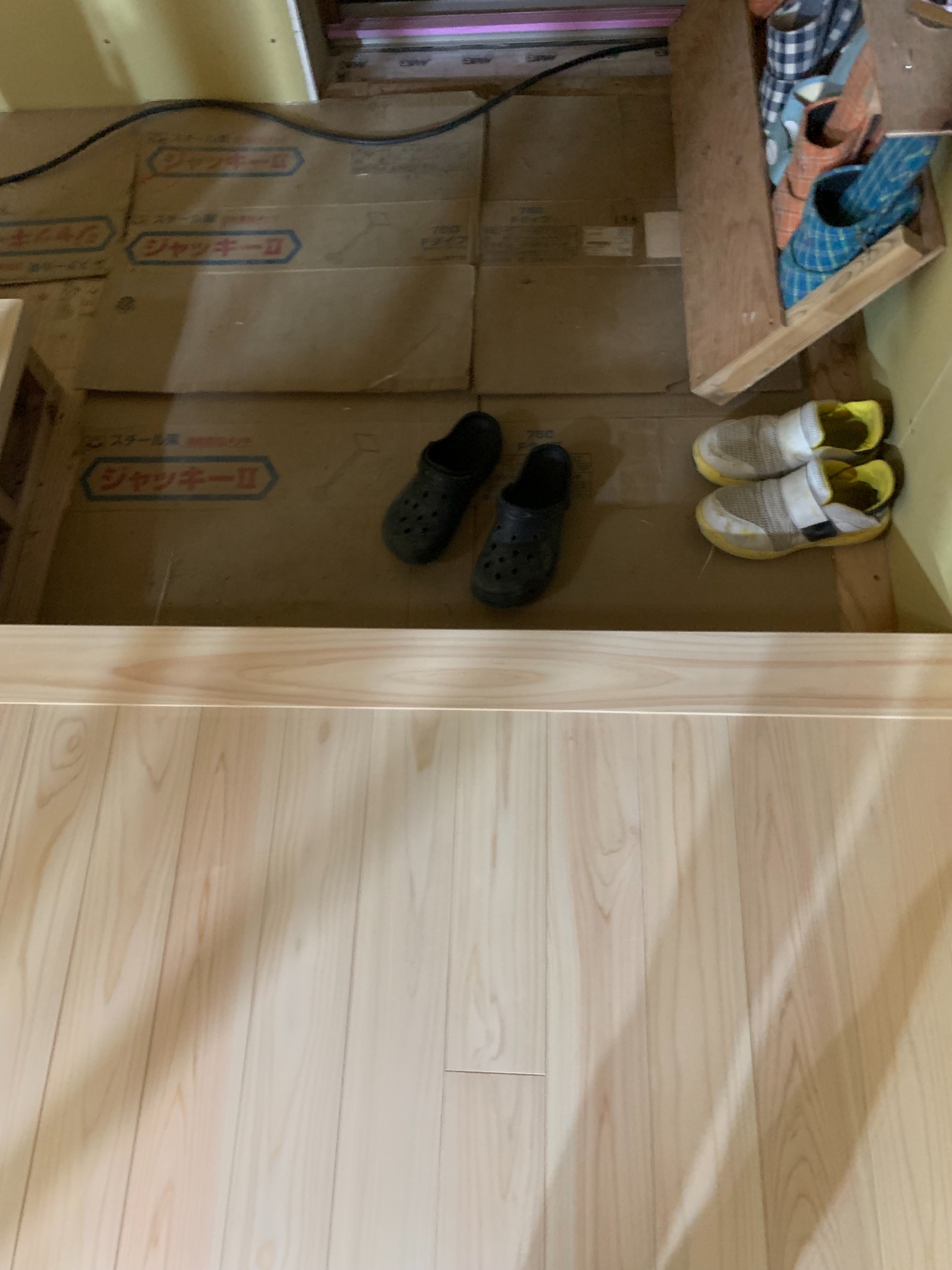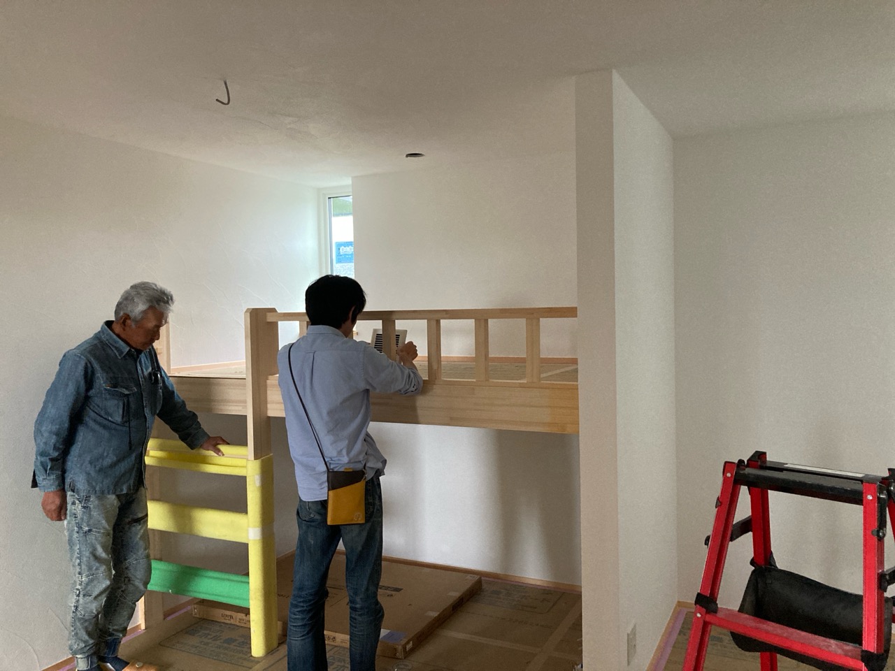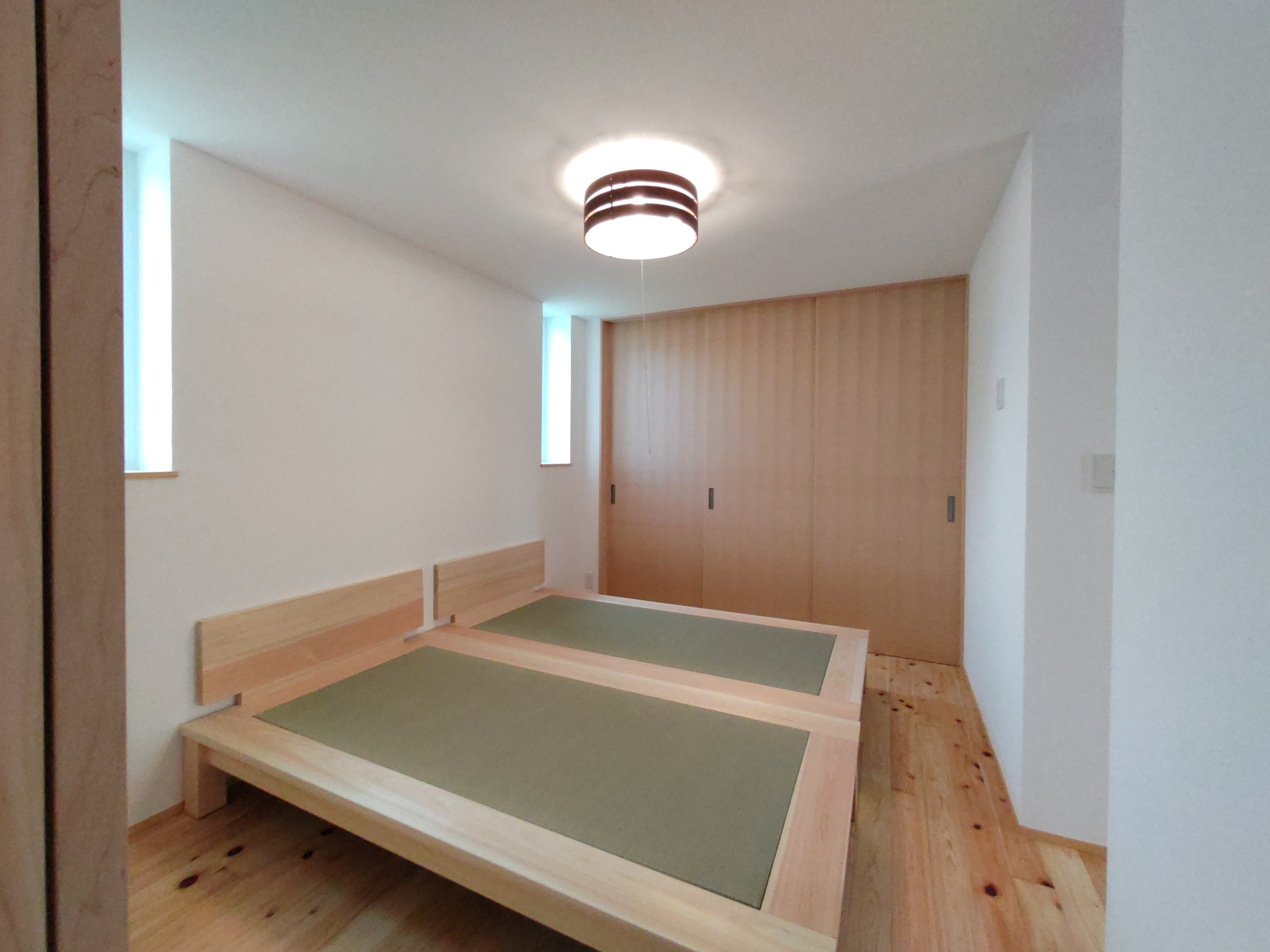 そして北世帯にはお父様念願の畳ベッドを搬入据付しました。k保木棟梁が倉庫で汗水たらして桧を加工していたのはここに据えるためのベッドを造っていたんですね。これからは桧の良い香りの中で眠れそうです。