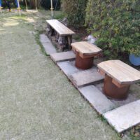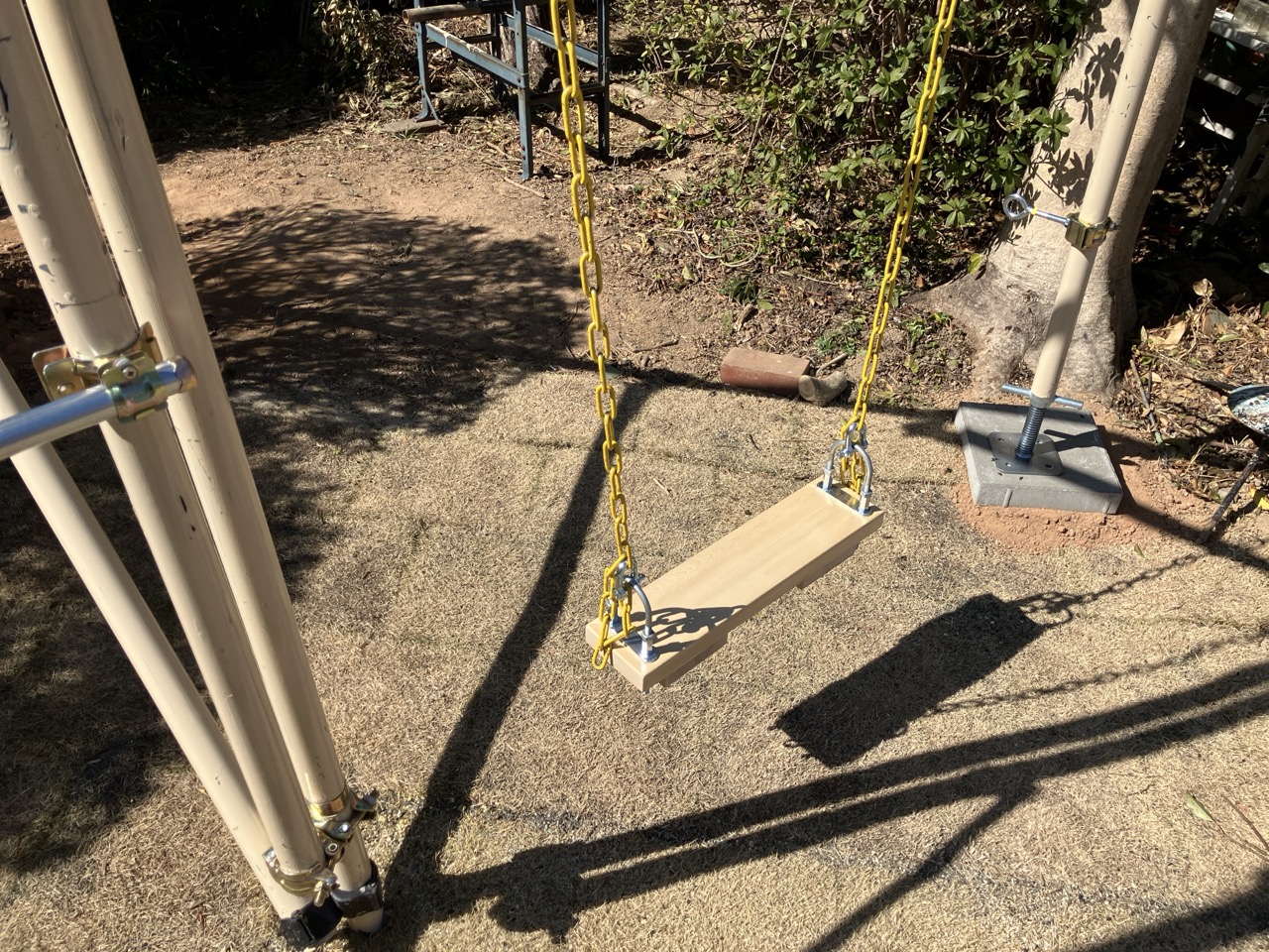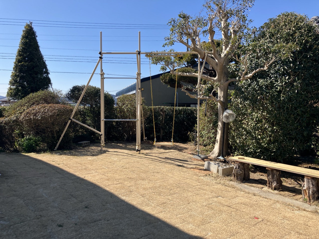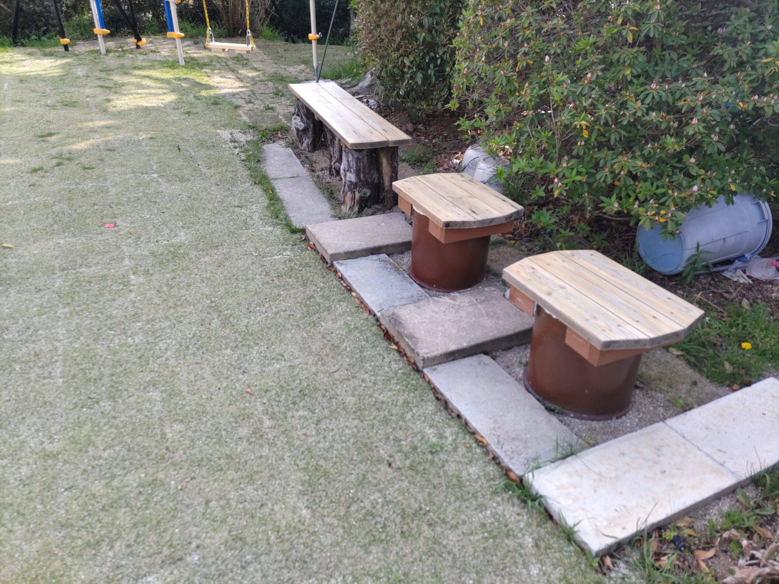 庭の遊具やベンチも知らない間にパワーアップしていました。