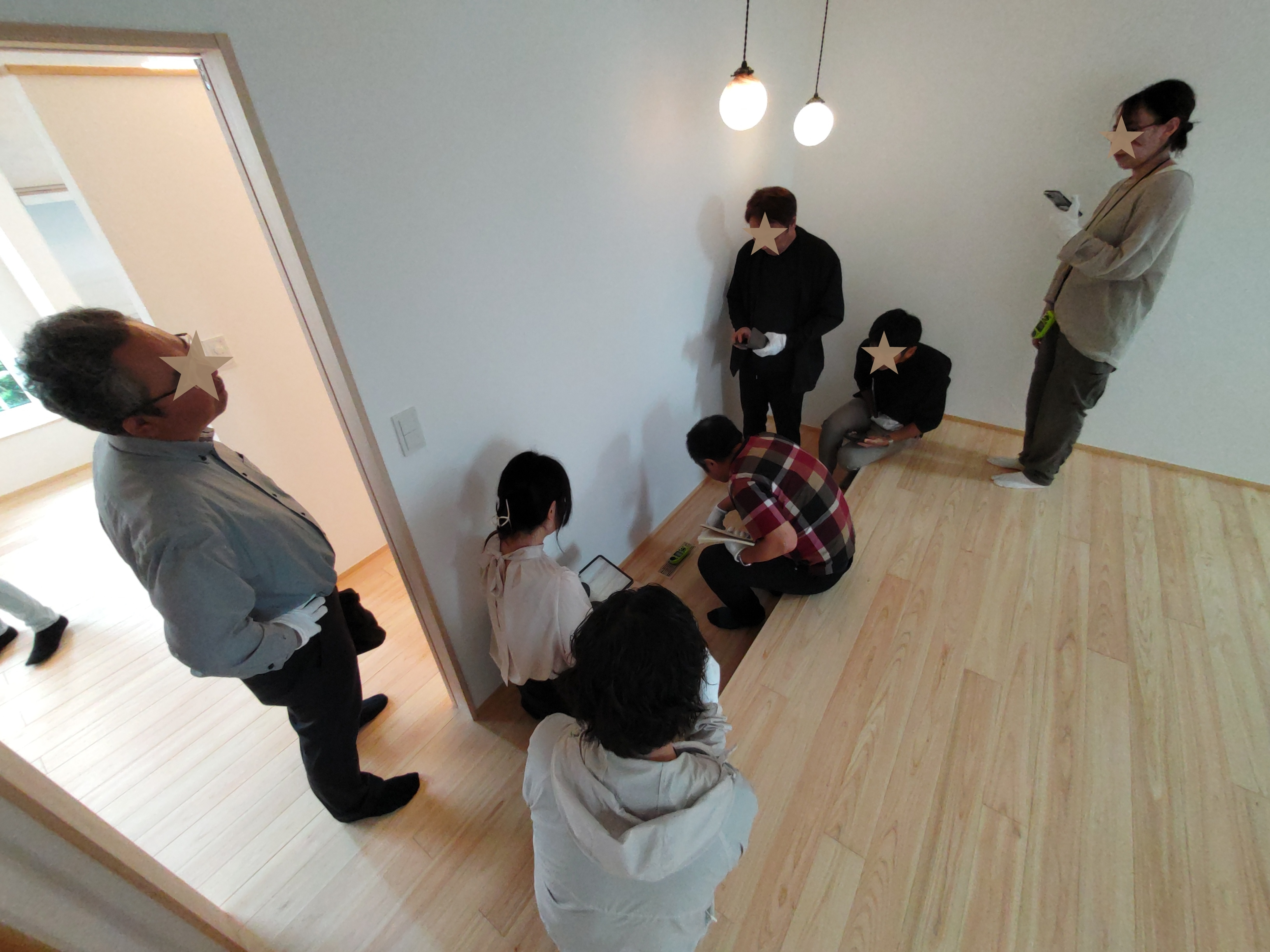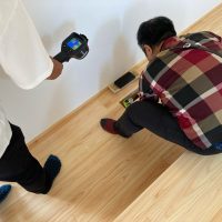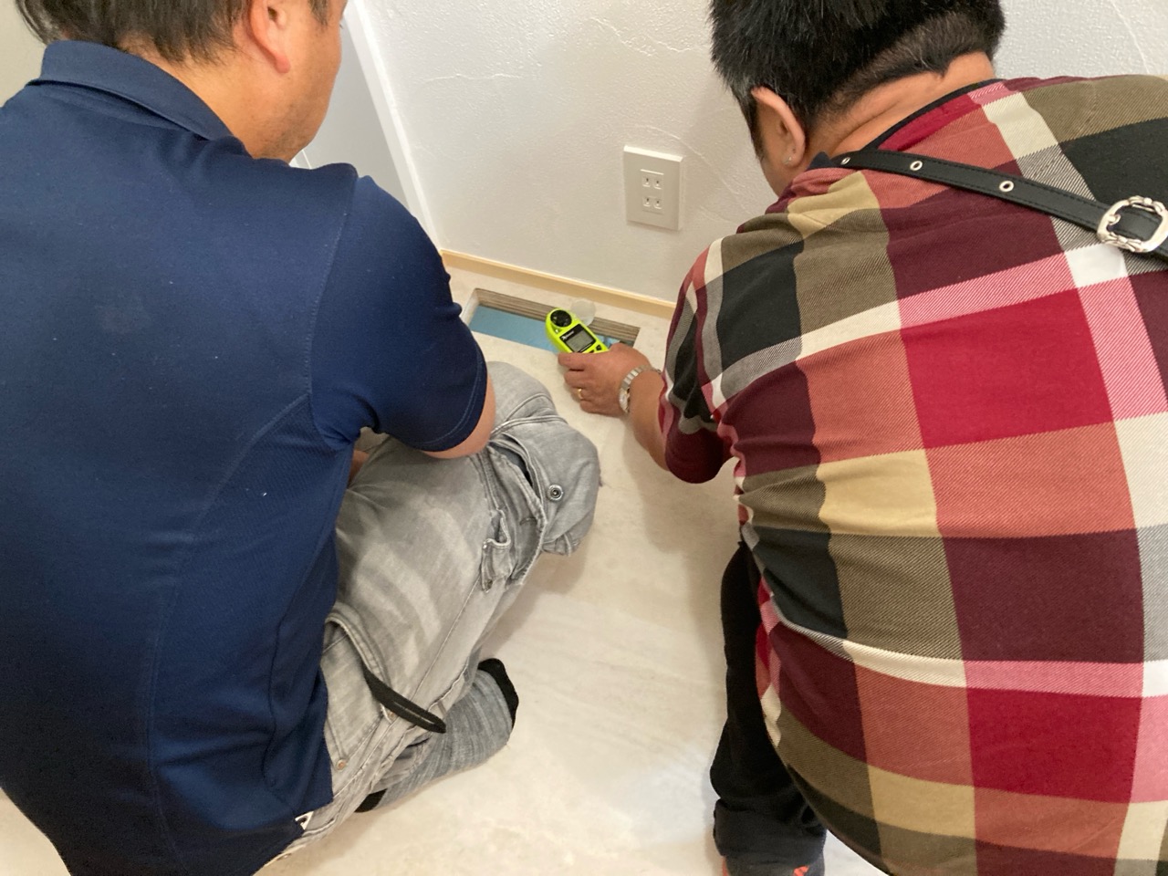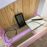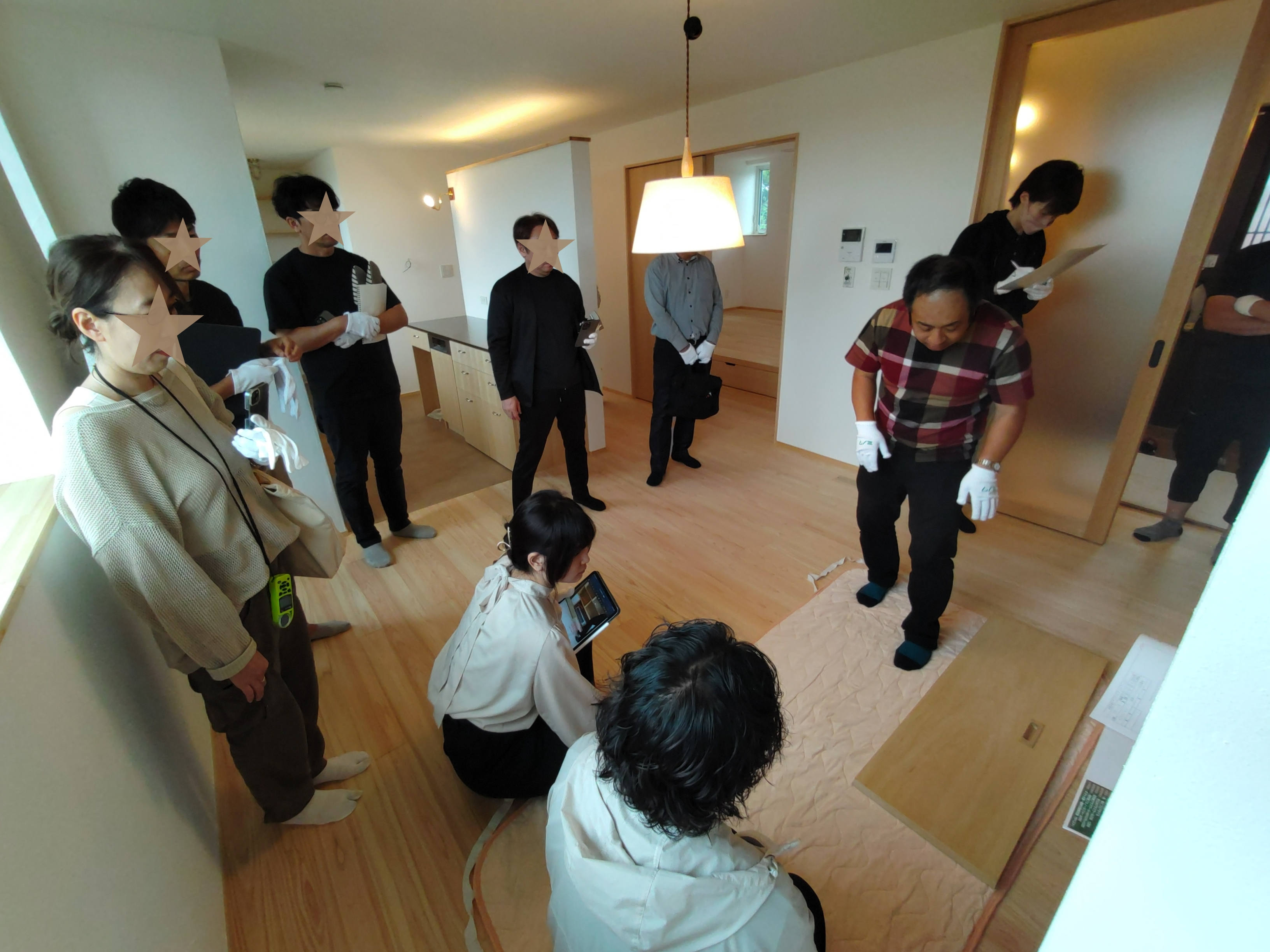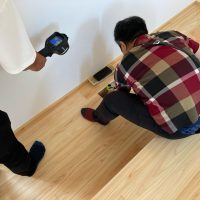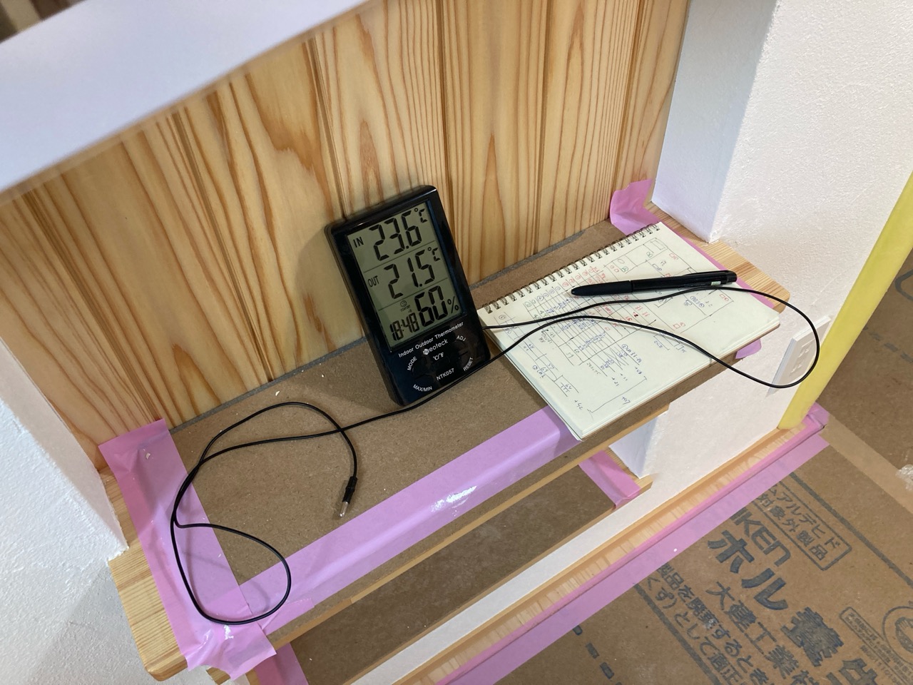 そして『室温が目に見える』温度計で各箇所を検温。大工さんも測定していましたがさすがは普段k長先生と仕事をして見える方々で、測定器の扱いも手慣れたものです。各部分の温度も安定しているようです。
