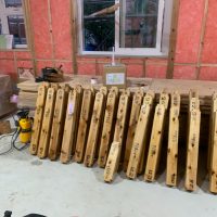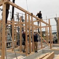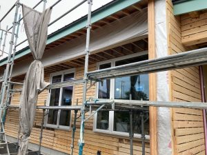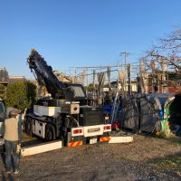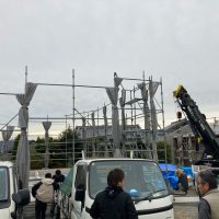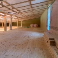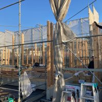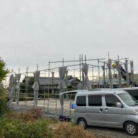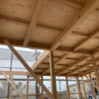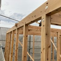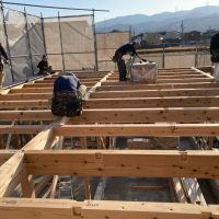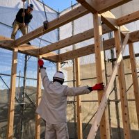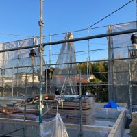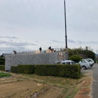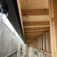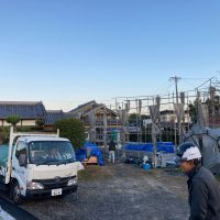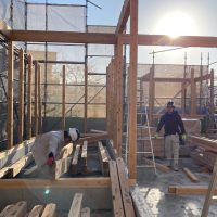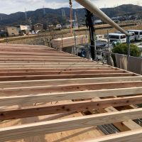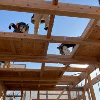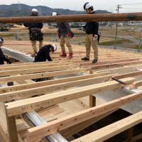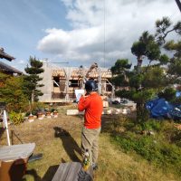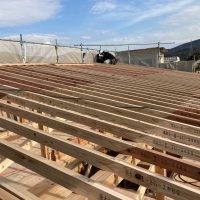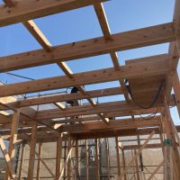 平屋建ての一世帯の建物につき午前の段階で垂木までできました。断熱材も後施工の仕様のため木工事の進み具合は非常に早いです。