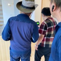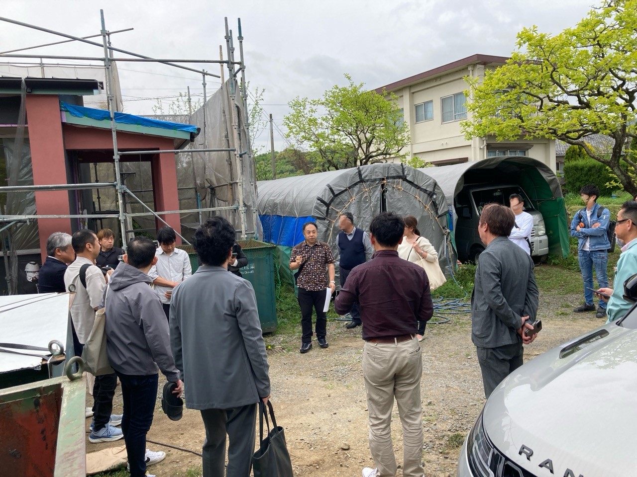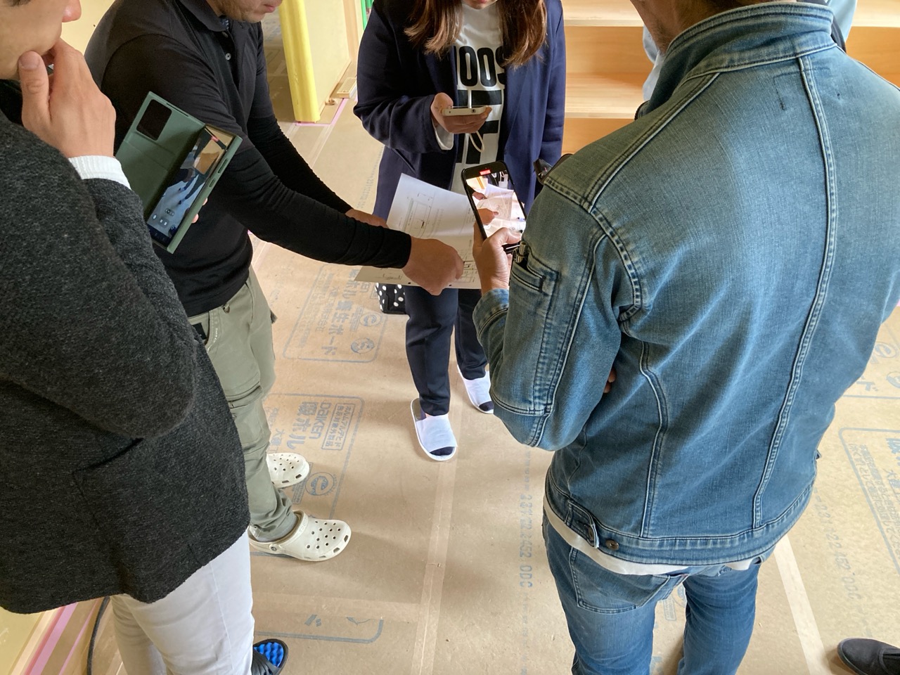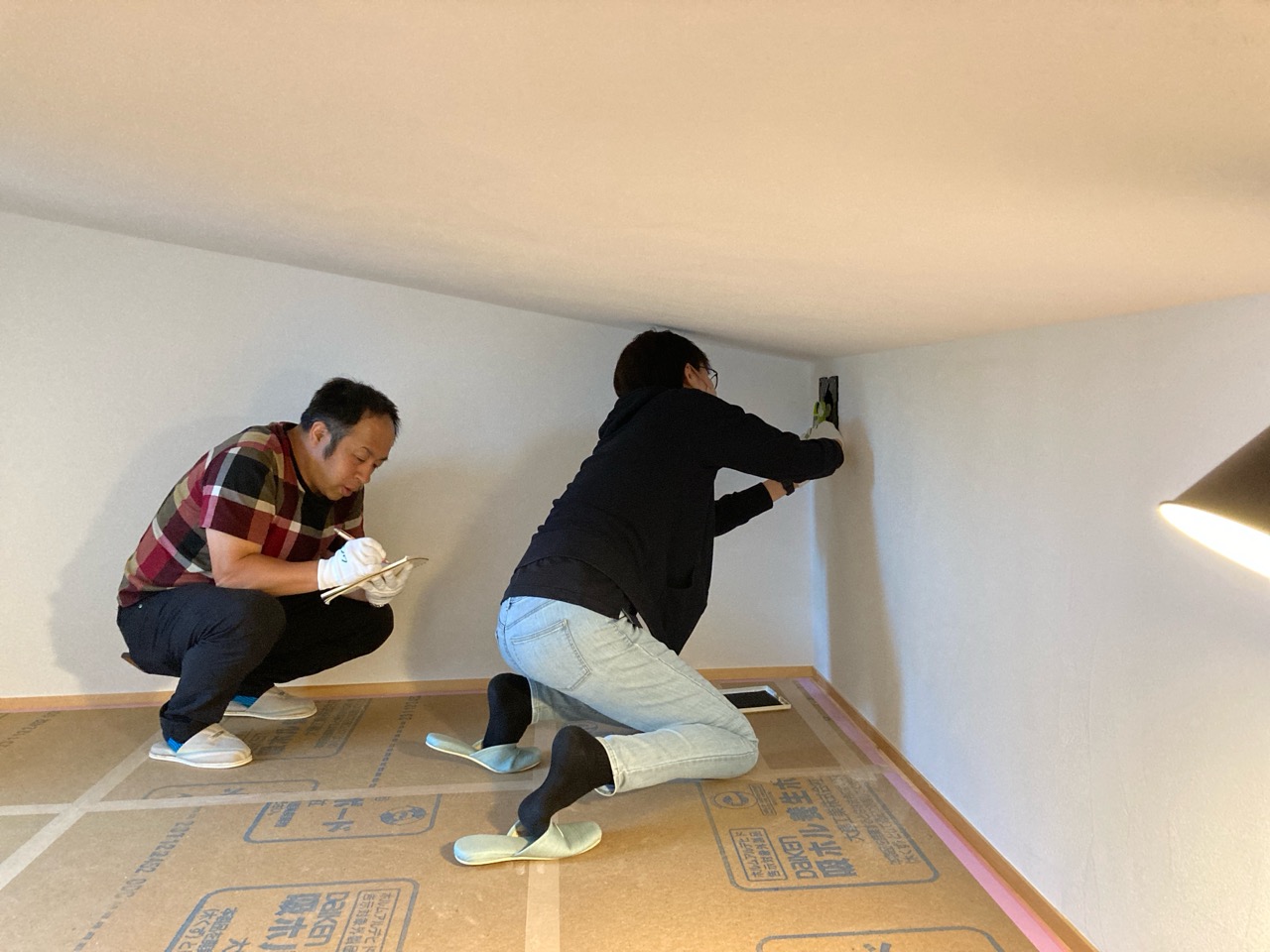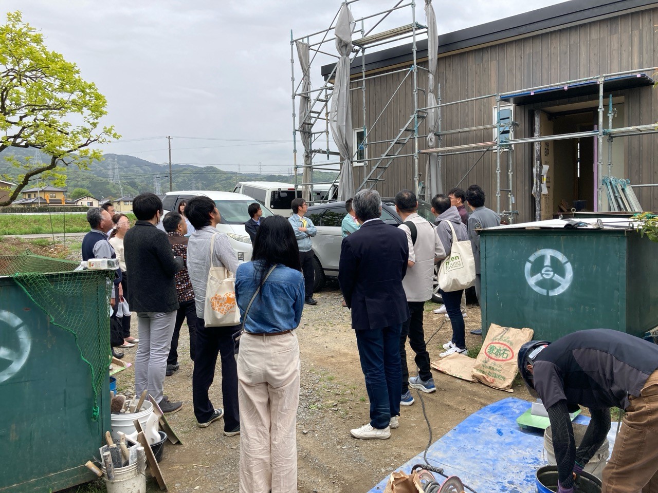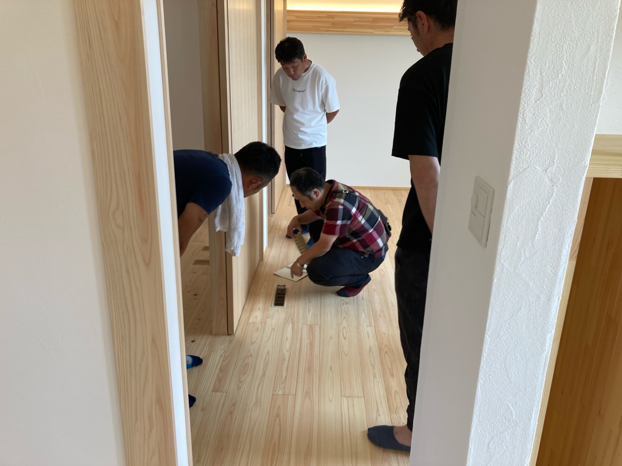 また本日はできあがったシステムのチェックのためにk長先生が普段宇都宮市で一緒に仕事をされている大工さん3名と現場に来場されました。今回のシステムは通常施工されている仕様とは少しマイナーチェンジをされているそうで、大工さんたちも結果を確認するために朝4:30集合ではるばるやってきていただきました。・・・毎度のことながら遠路ご苦労様です。