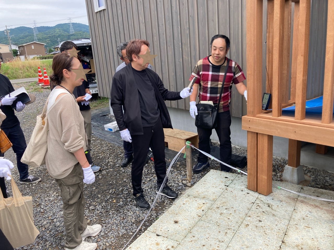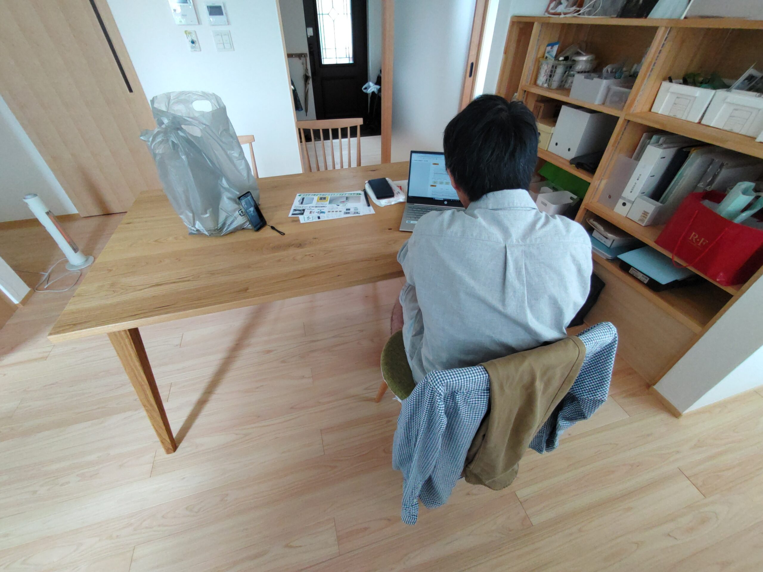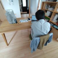 お引渡しから1か月後、後発で発行される書類をお届けにうかがいました。せっかくやってきたので生活して1か月の室内の温熱環境についてk長先生とビデオ通話で打合せを行いました。