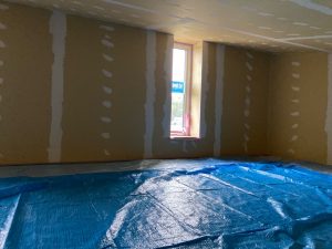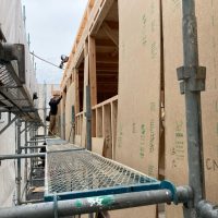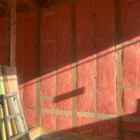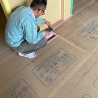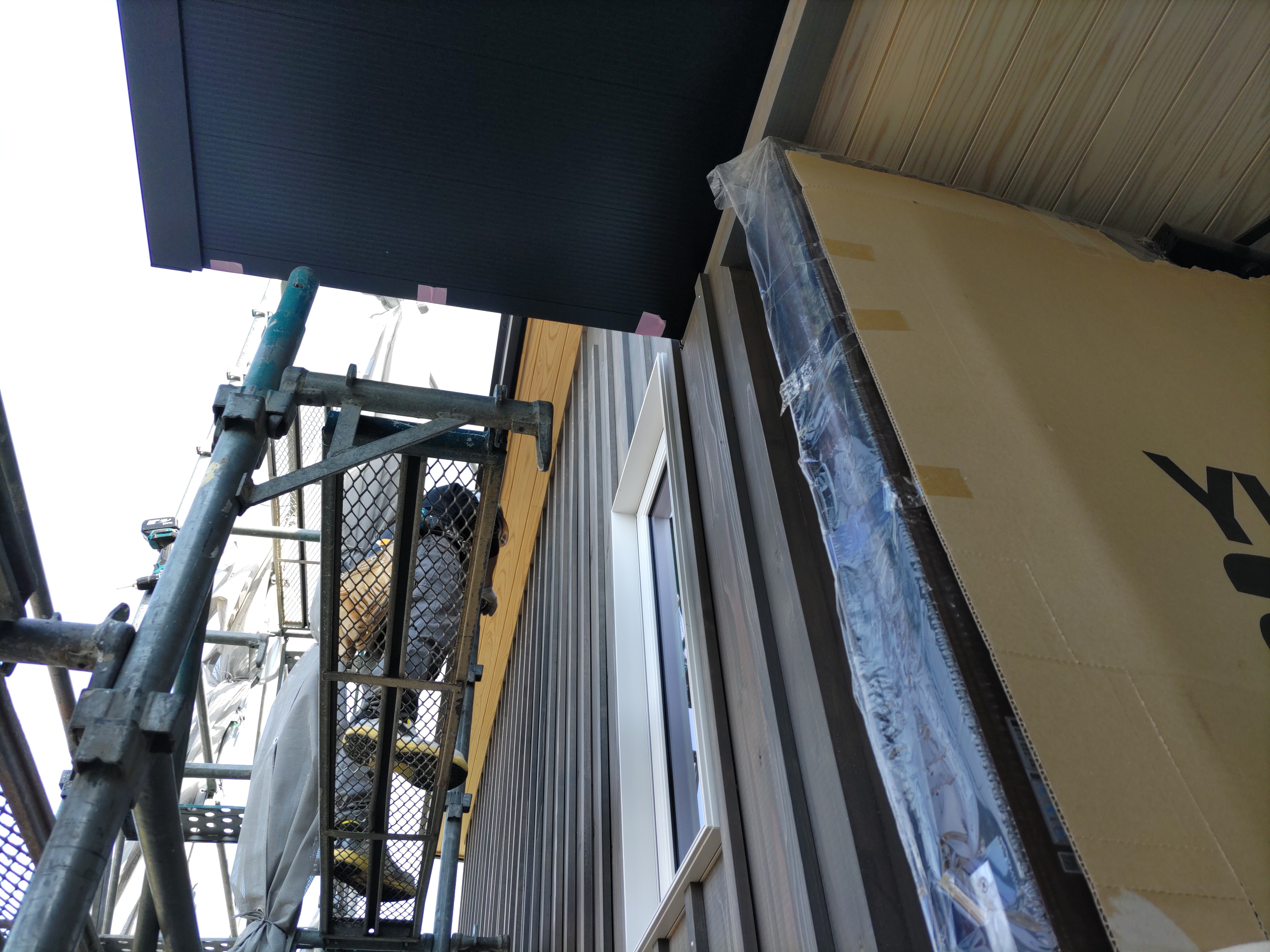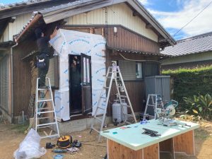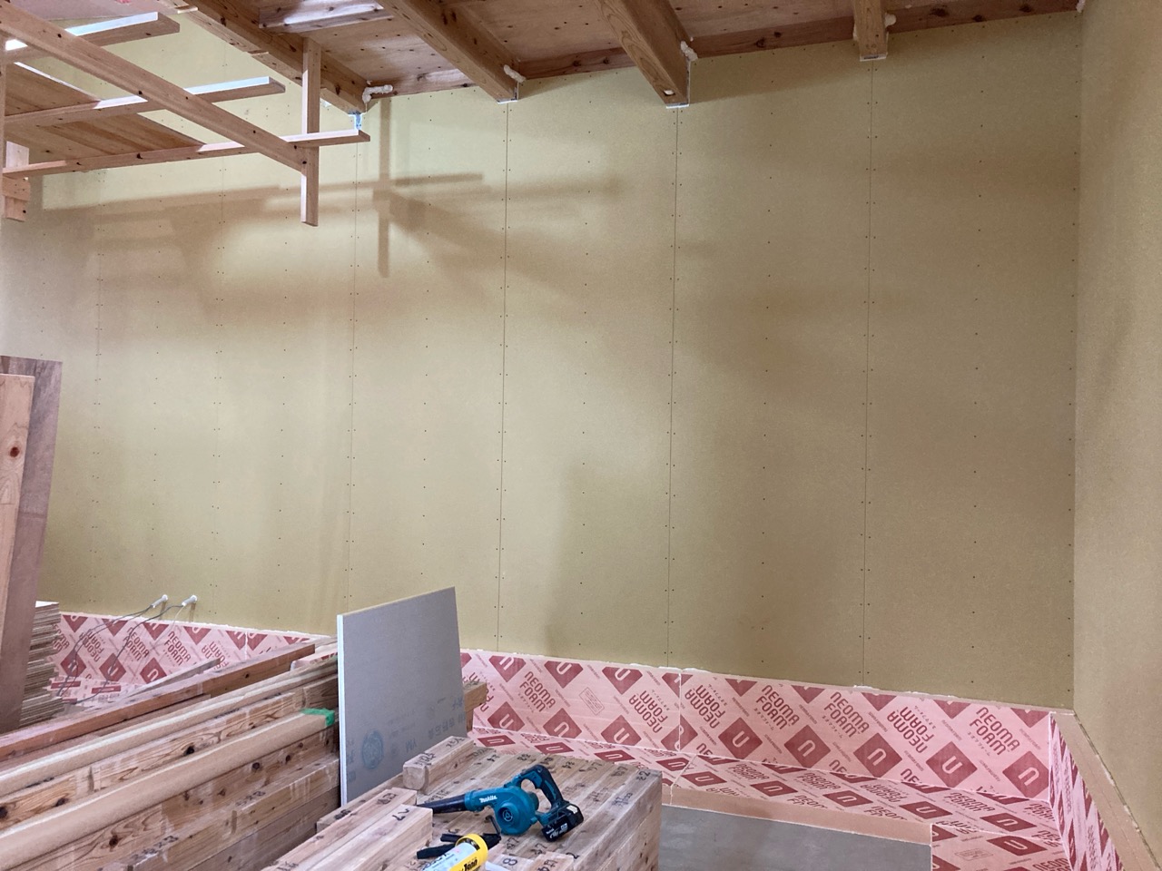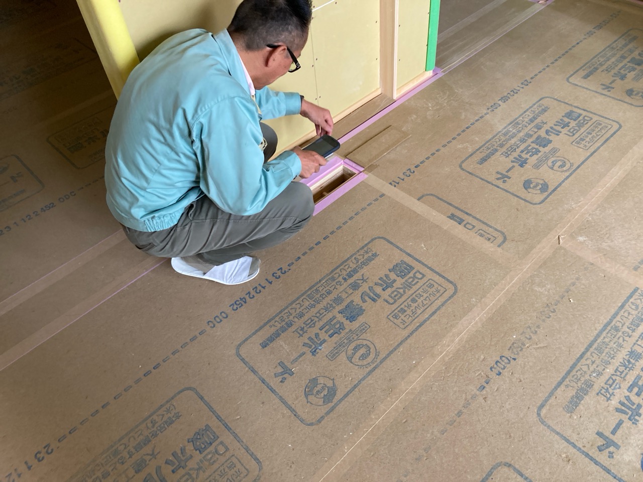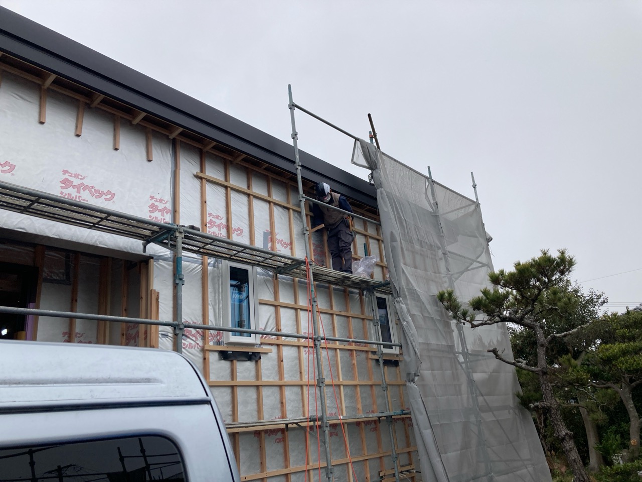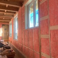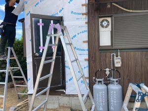 躯体の充填断熱、付加断熱の敷設と防水シートの敷設も着々と進んでいます。
