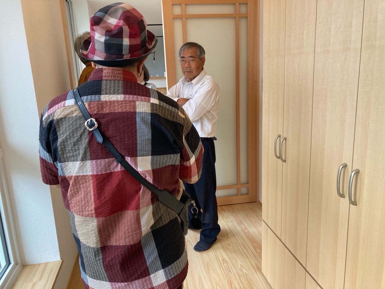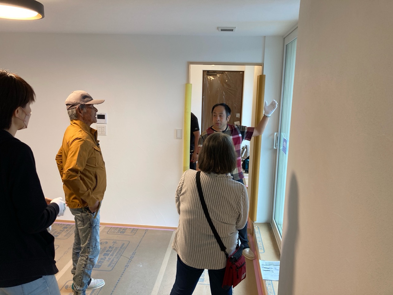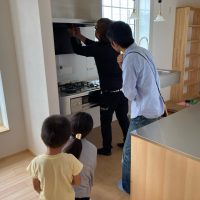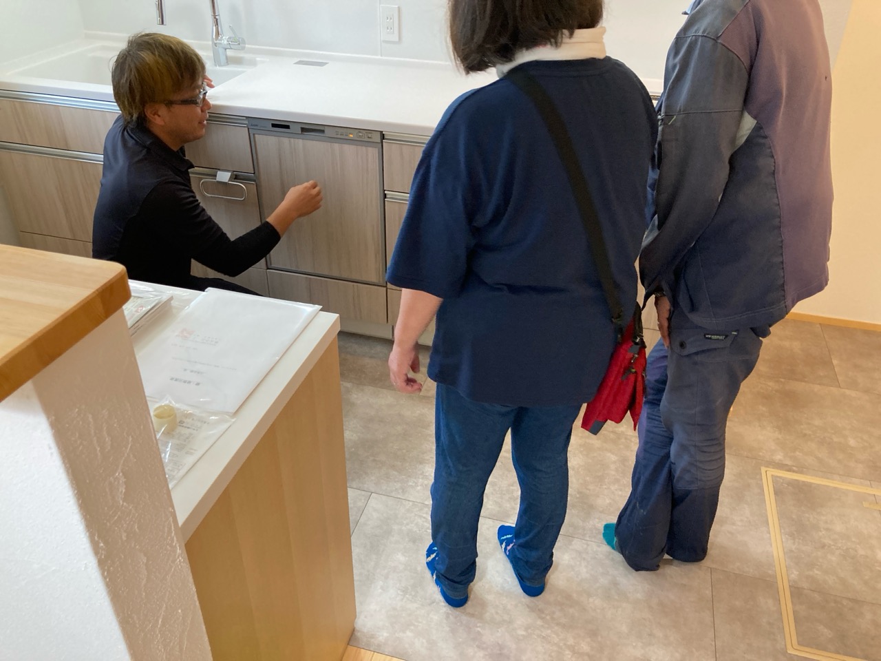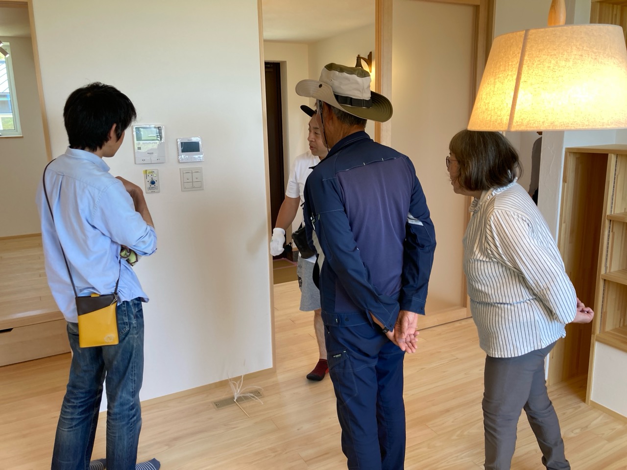 k長先生から北世帯にお住まいになるお父様とお母様への諸々の説明。これから生活する快適空間に期待も高まります。