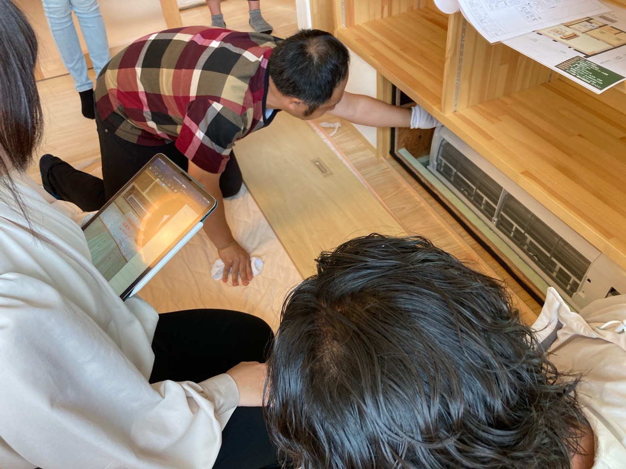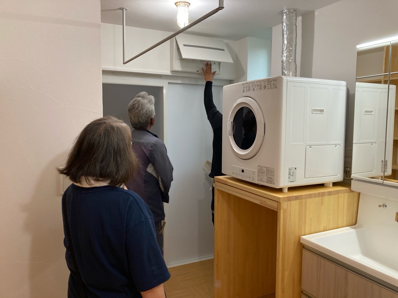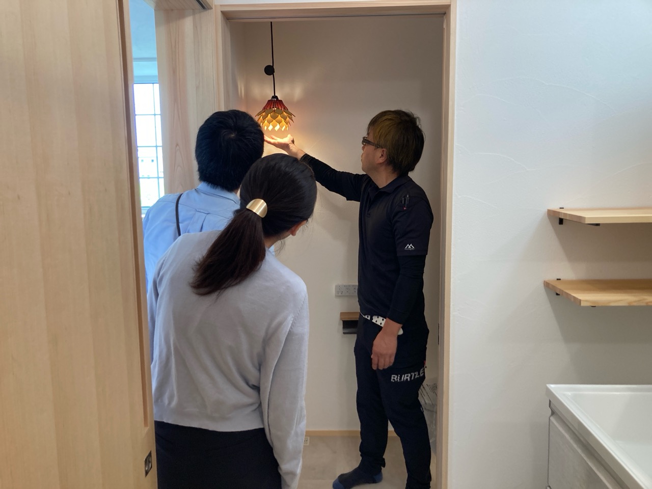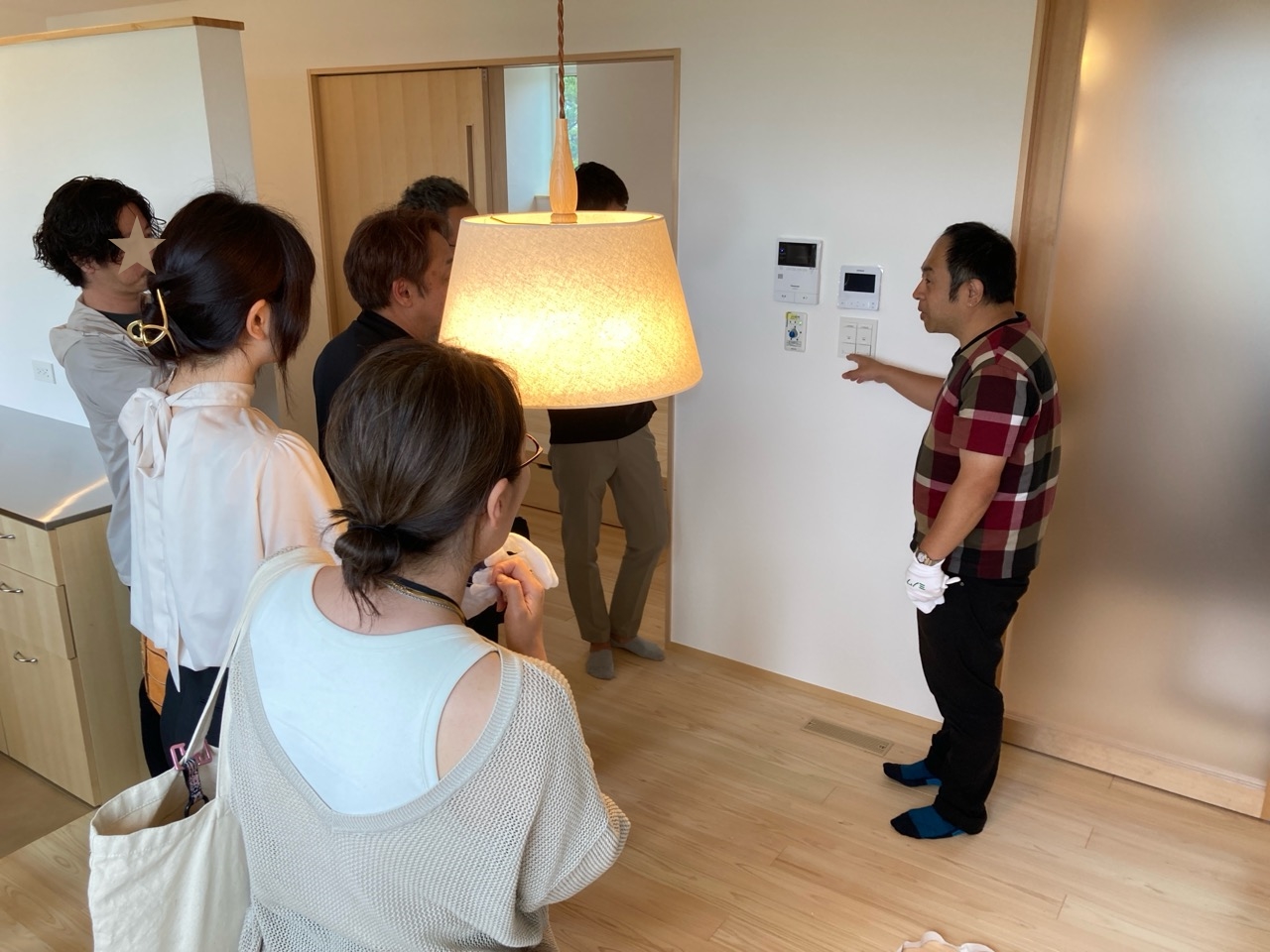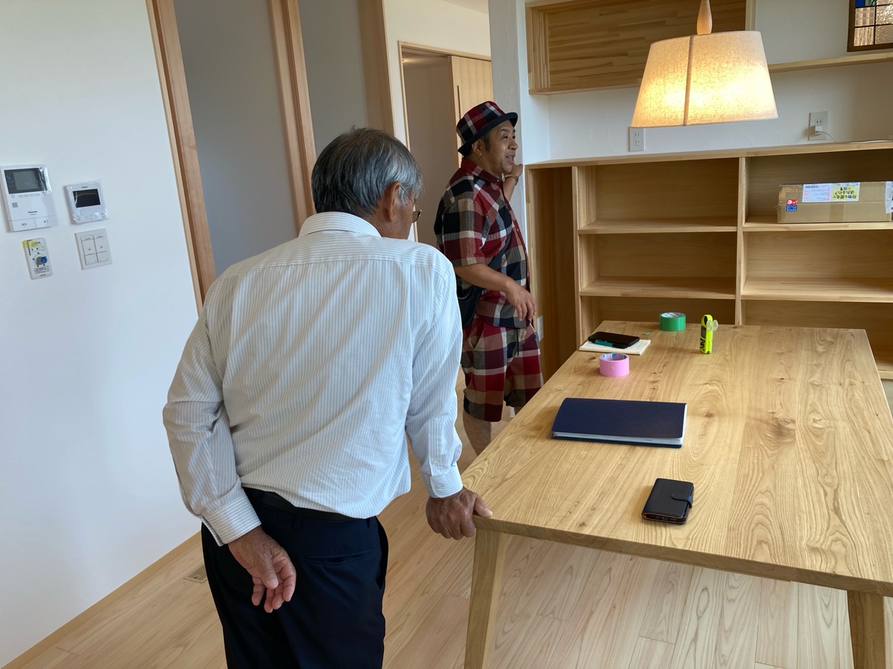 k長先生から北世帯にお住まいになるお父様とお母様への諸々の説明。これから生活する快適空間に期待も高まります。