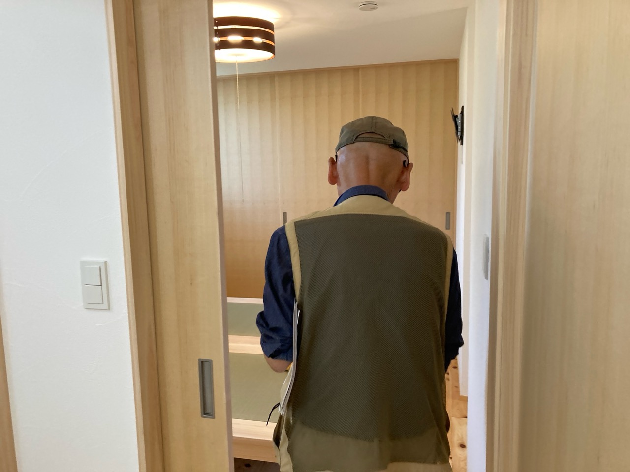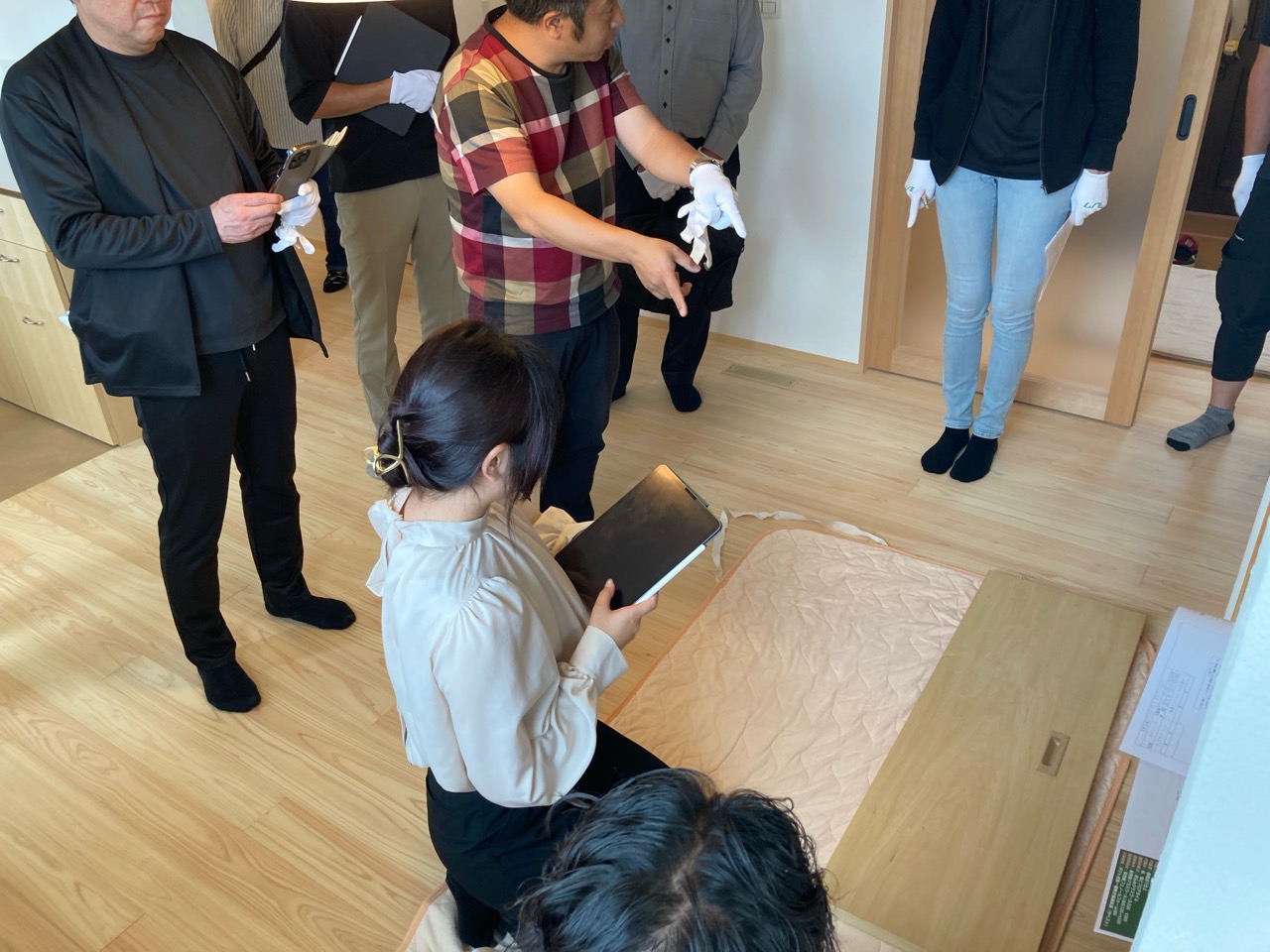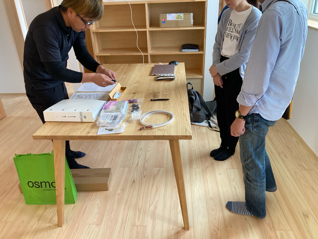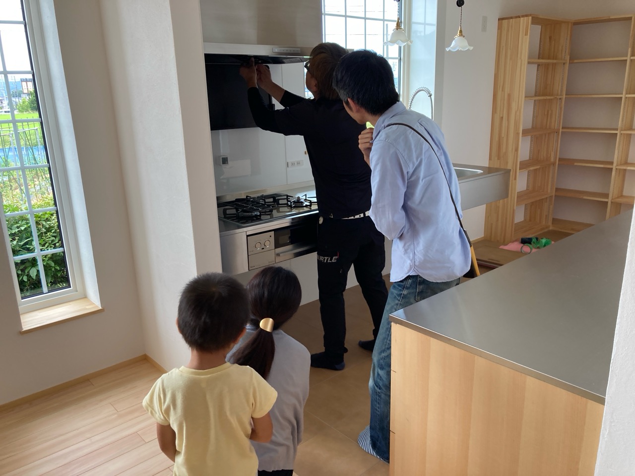 k長先生から北世帯にお住まいになるお父様とお母様への諸々の説明。これから生活する快適空間に期待も高まります。