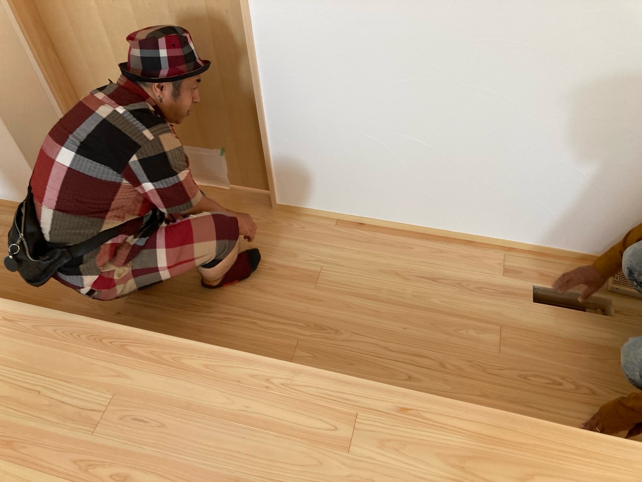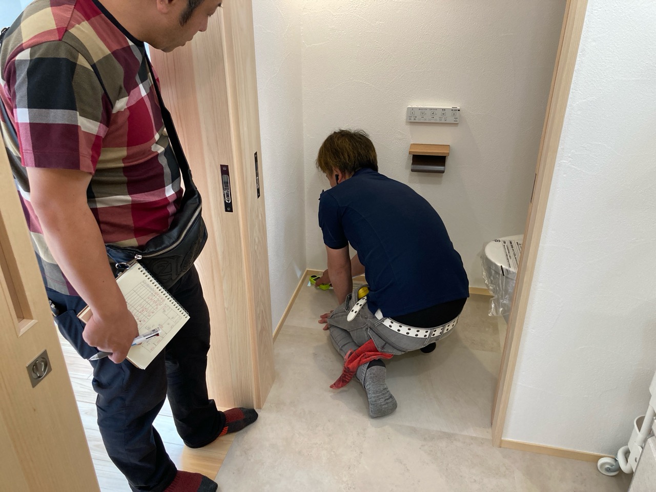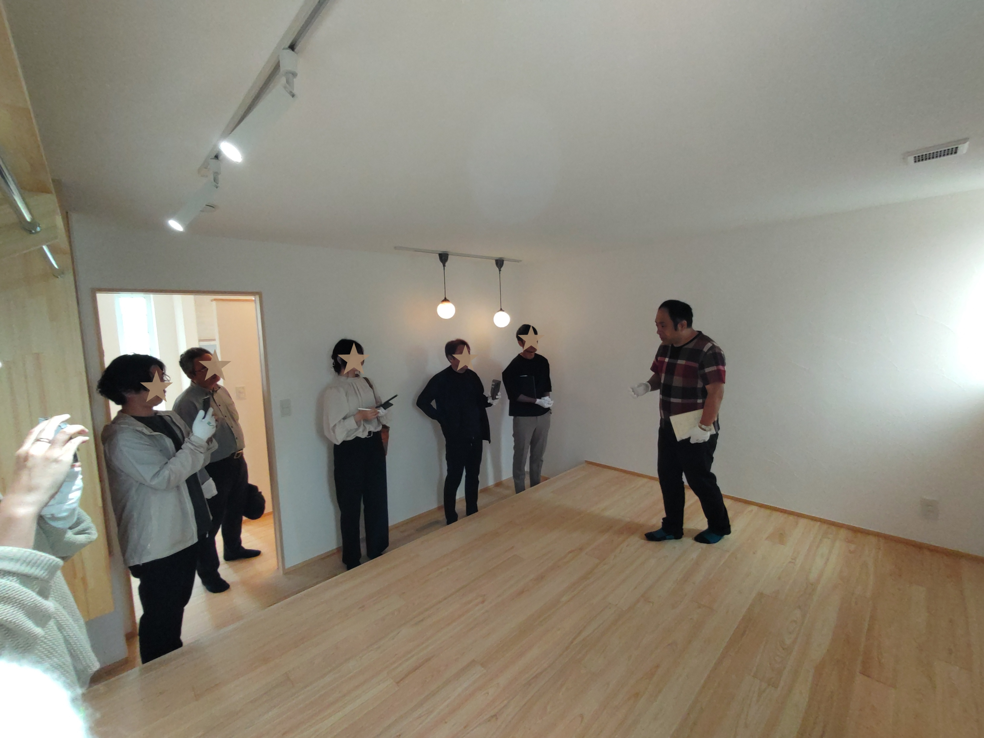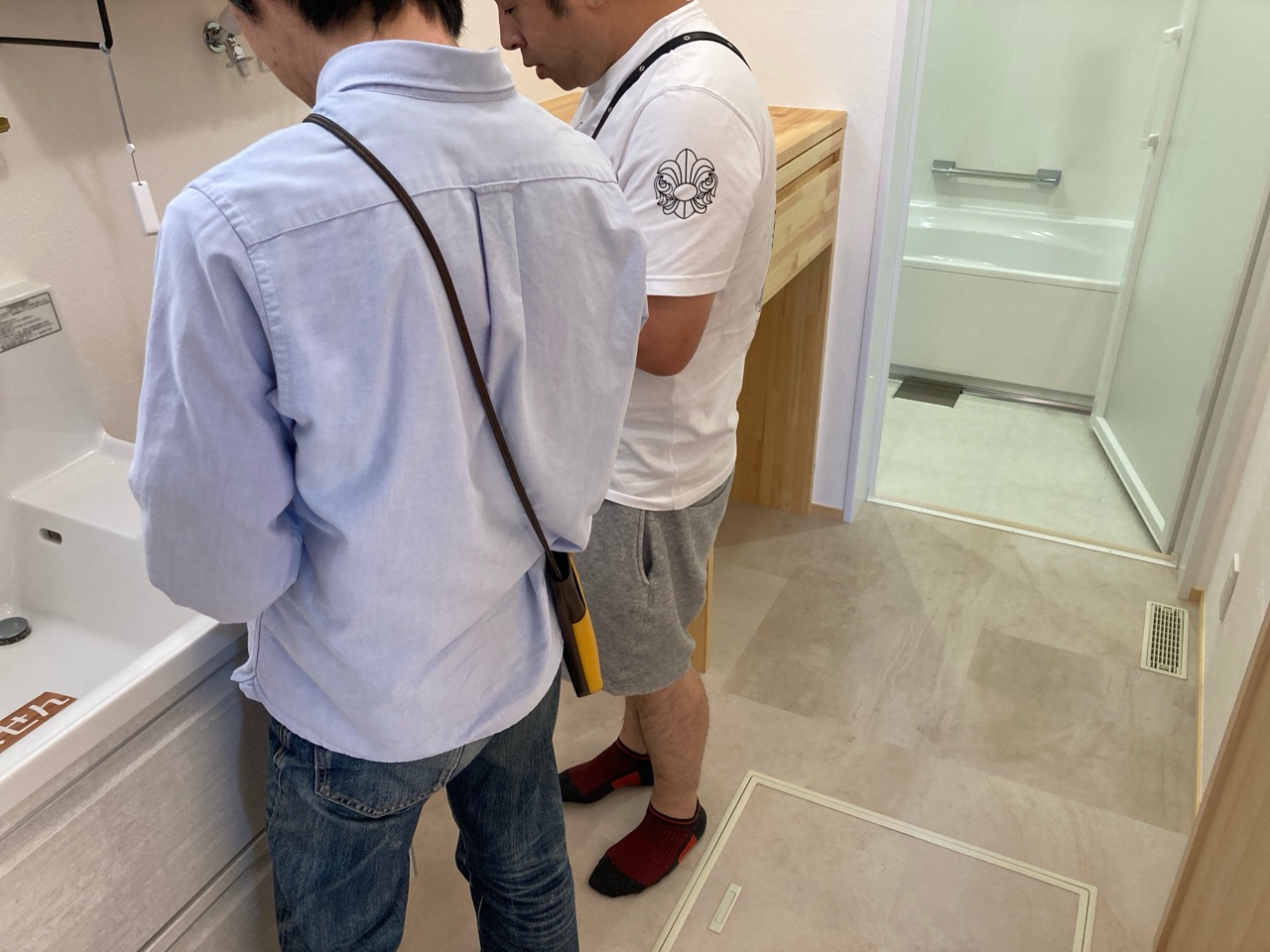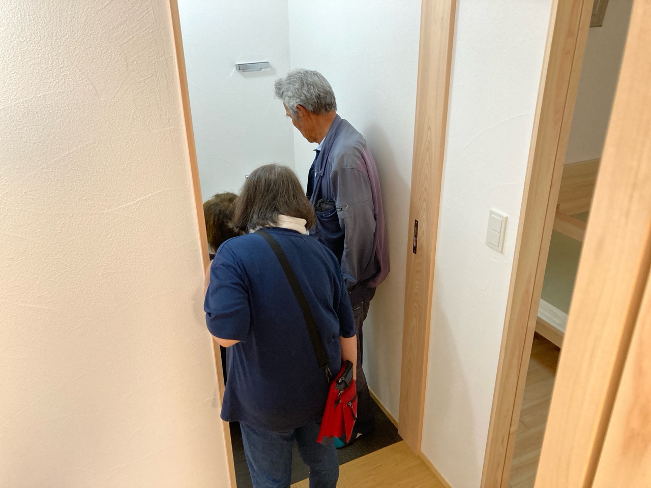 k長先生から北世帯にお住まいになるお父様とお母様への諸々の説明。これから生活する快適空間に期待も高まります。