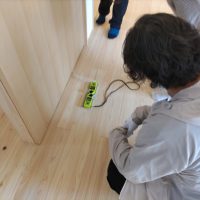 勉強会の後は前回まだ設備が稼働していなかった北世帯の各ガラリの風量測定。北世帯はロフト部分があるため、換気経路が南世帯より一部複雑ですが、まずまずはk長先生の想定内の結果が出た模様です。せっかくなのでミノワ営業のn村も風量測定を体験させていただきました。