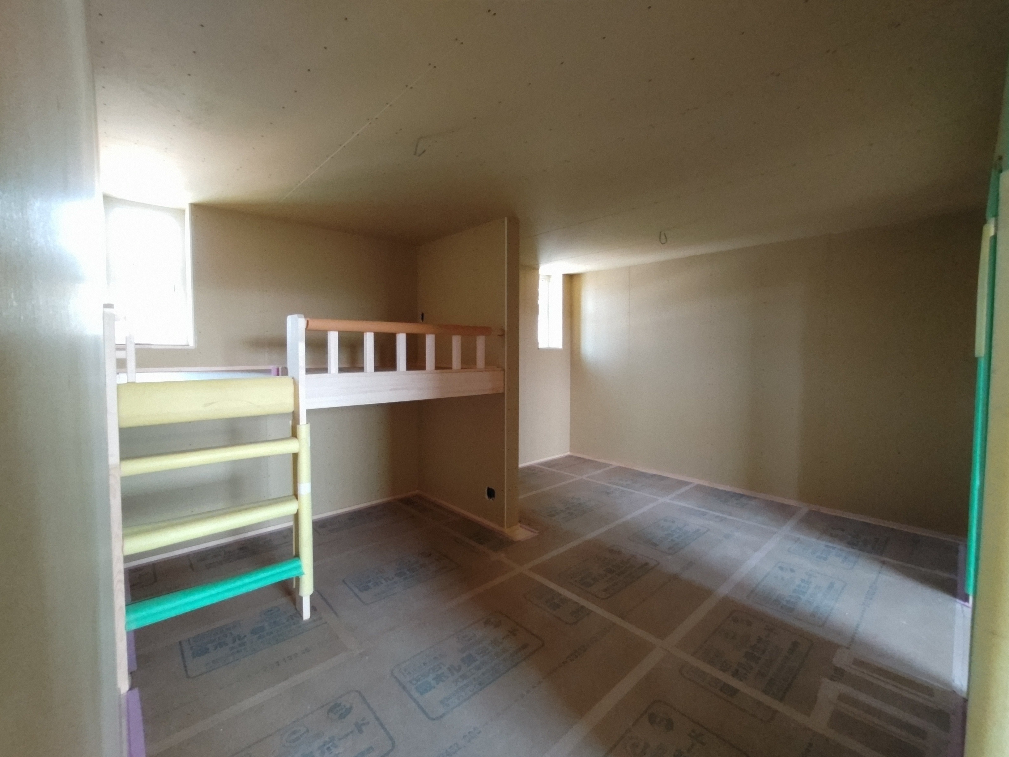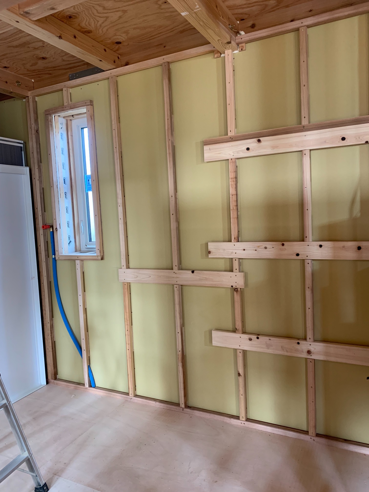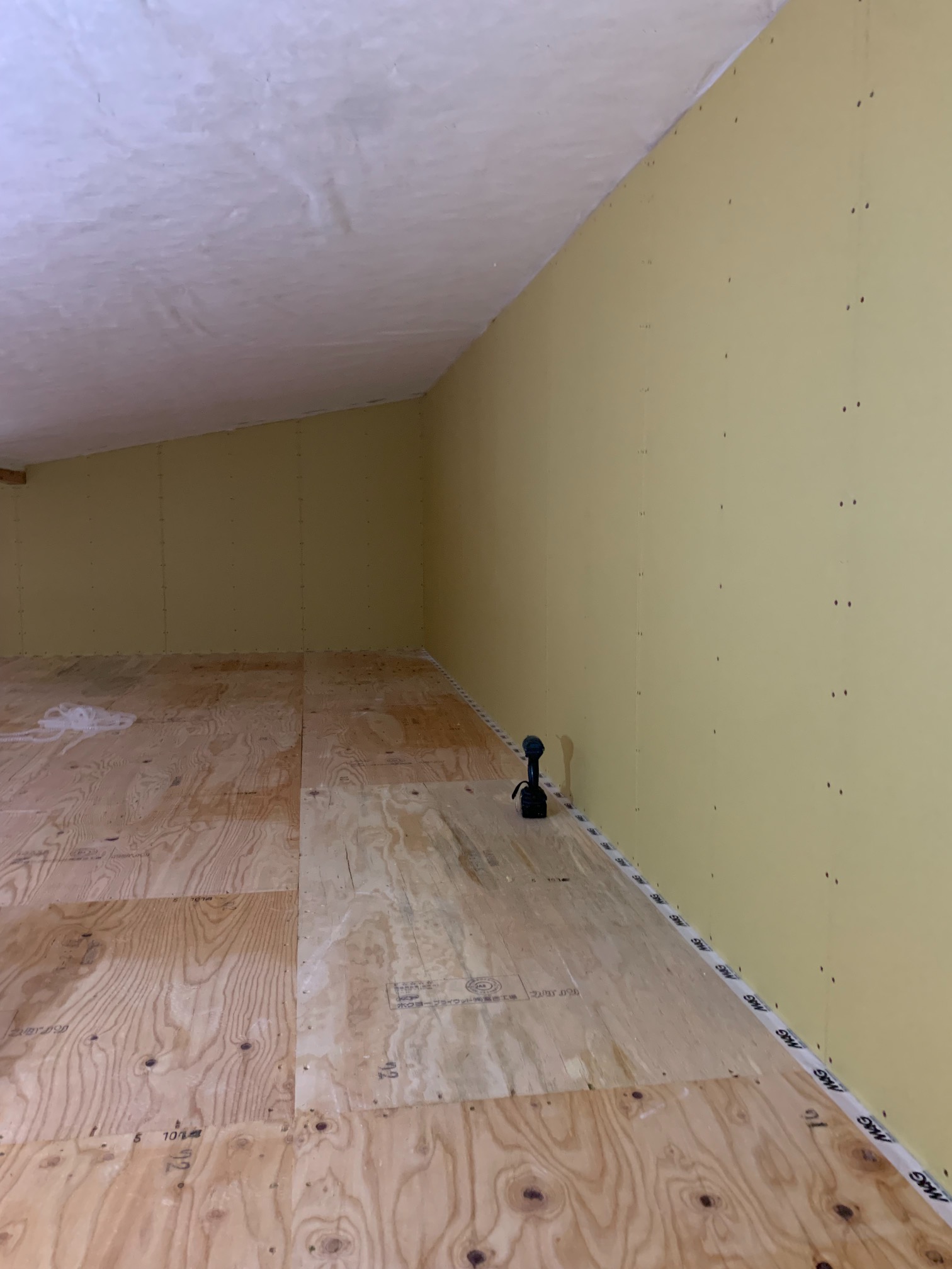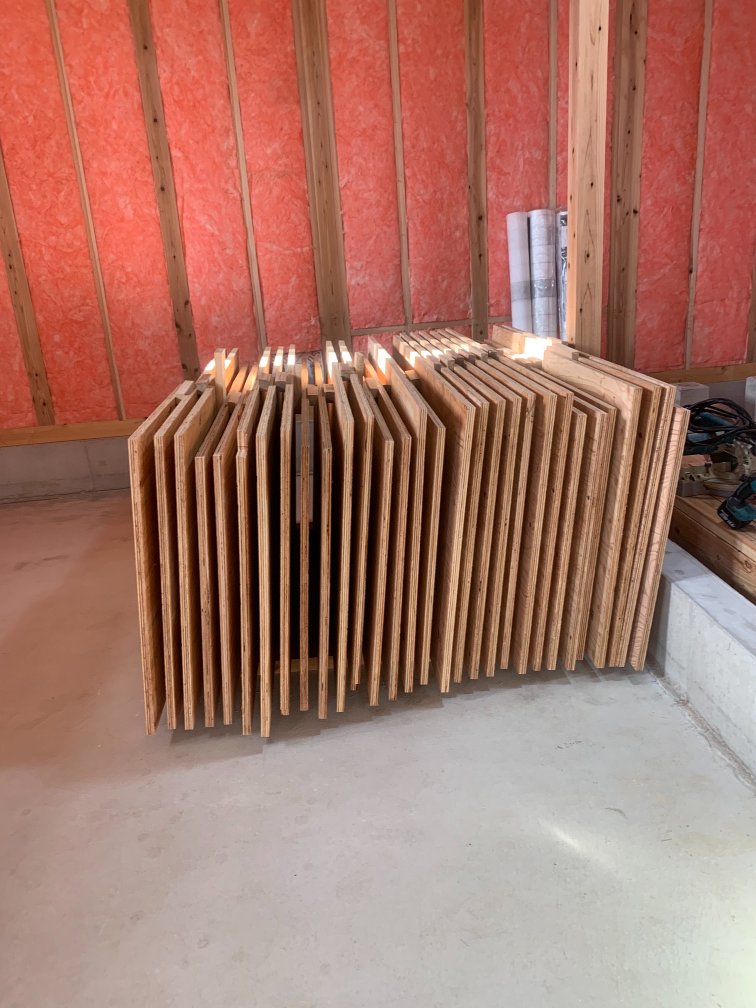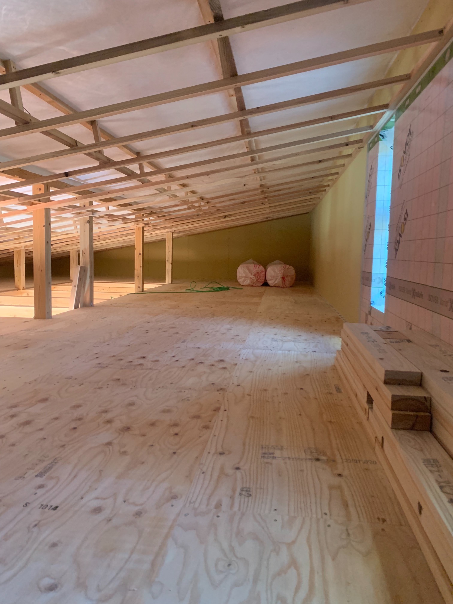 一部水平の合板を打っていない部分はk長先生の構造計算により『構面が無くても良い部分』となります。