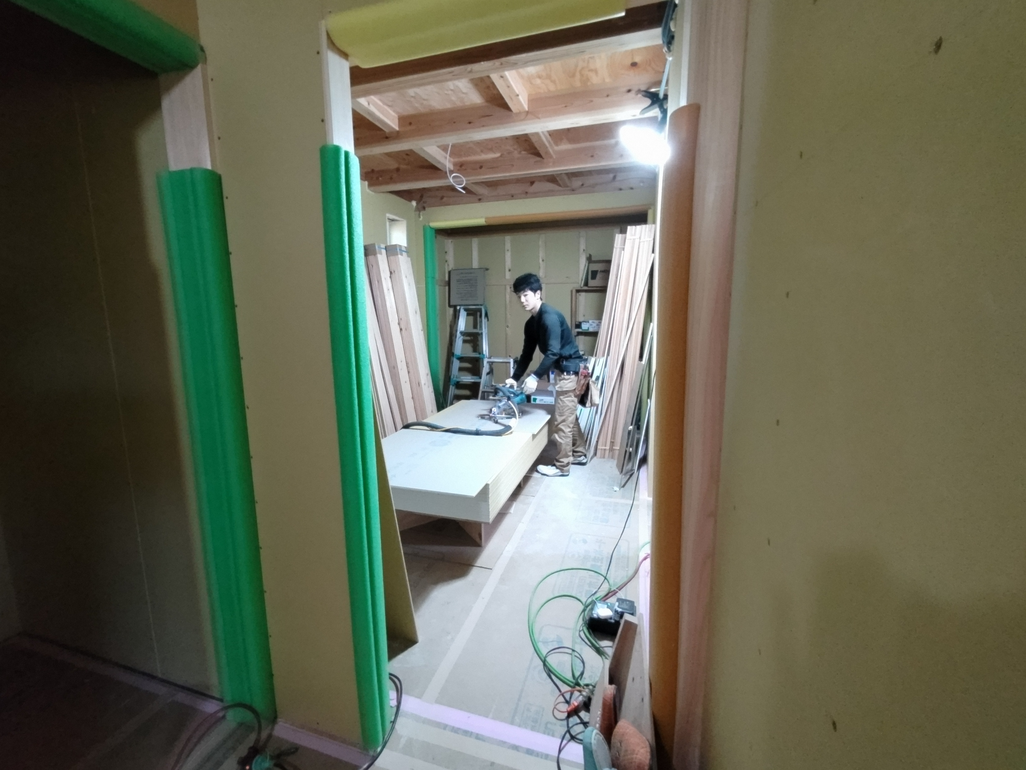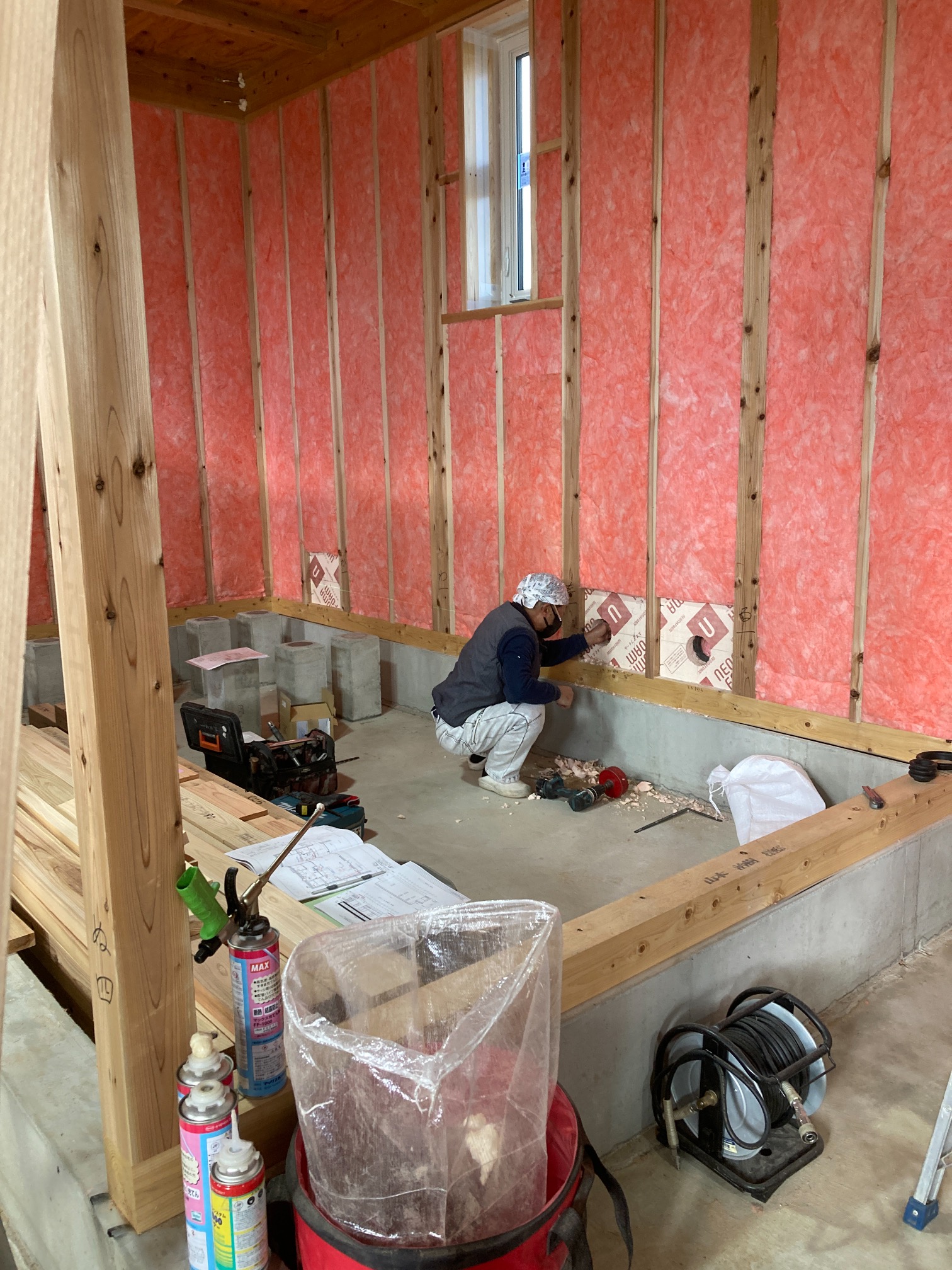 この2棟の計画が始まった頃はk長先生の理論を遠く離れた現場で正確に実現できるのか、と非常に不安でしたが、営業・積算・工事期間を経て実に様々な事を教えていただきました。まだまだ全容を網羅したとは言えませんが今ではその理論、理想とする温熱環境の一端を理解できたような気がします。いよいよ工事も終わってしまうと思うと名残惜しいですが、いろいろとお世話になりありがとうございました。