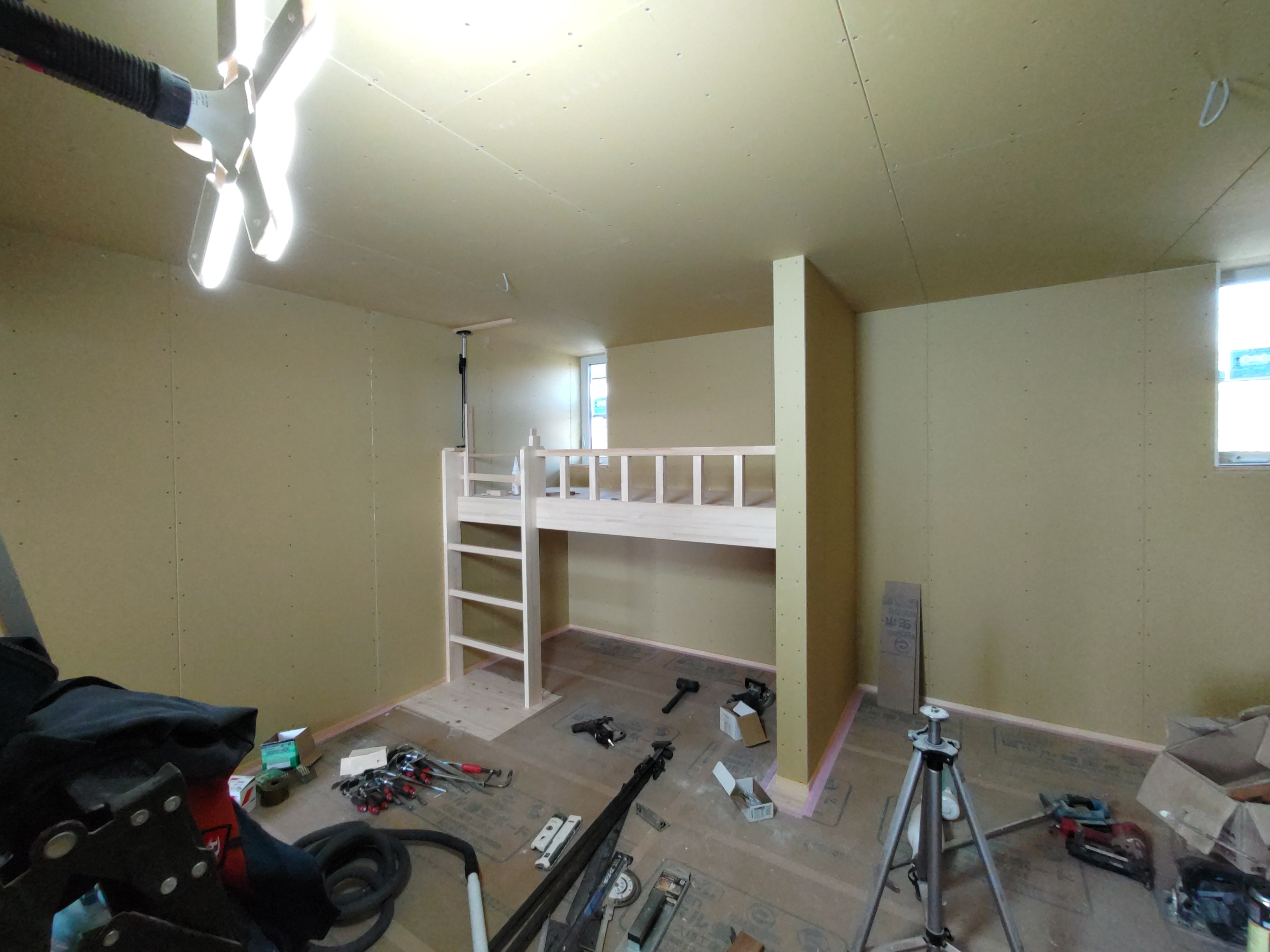 計画時からご希望され、k長先生に依頼されていたロフト空間はお父様の手によって魔改造され、何とも居心地の良い空間に変わっていました。ここにテレビ、マットを持ち込んで映画を見たりと十二分に満喫されている様子です。